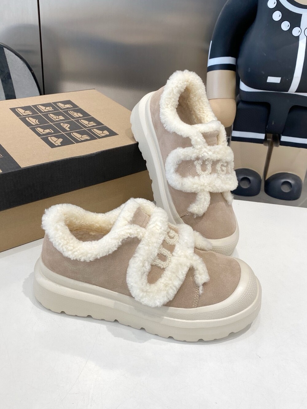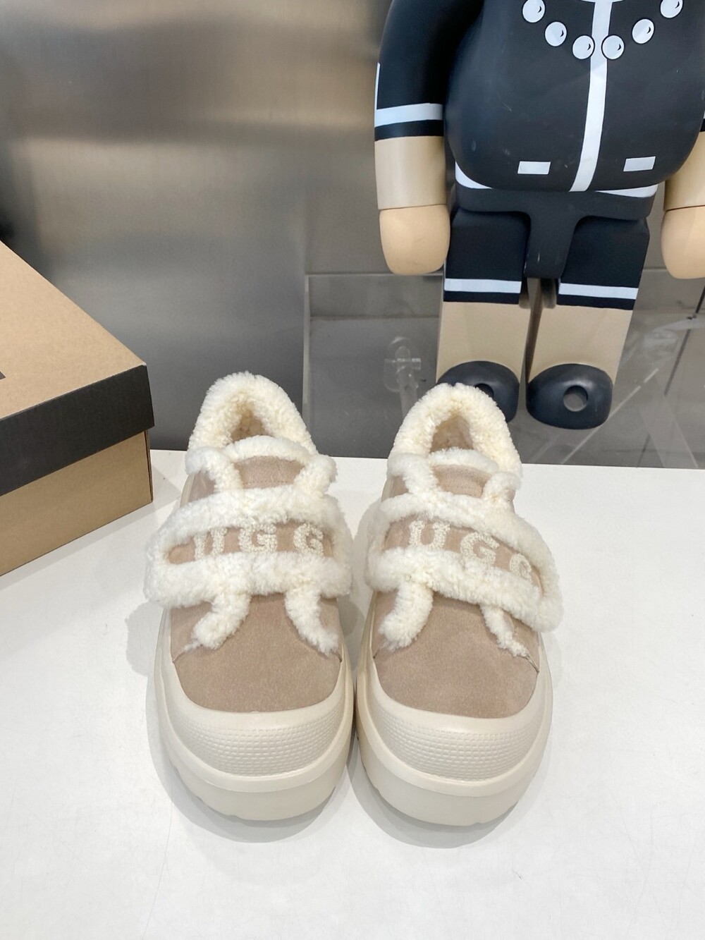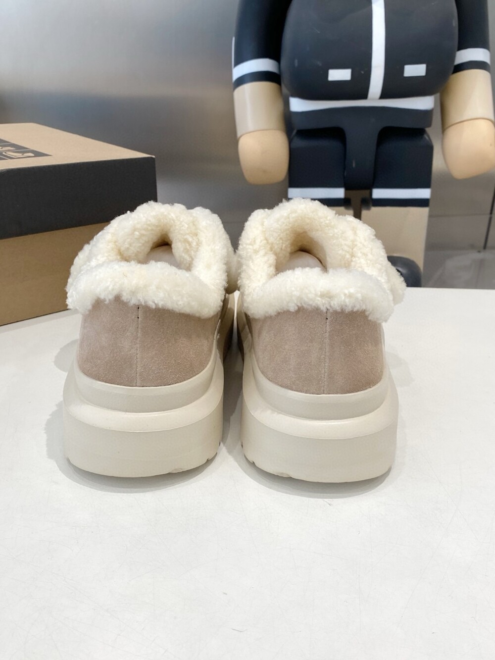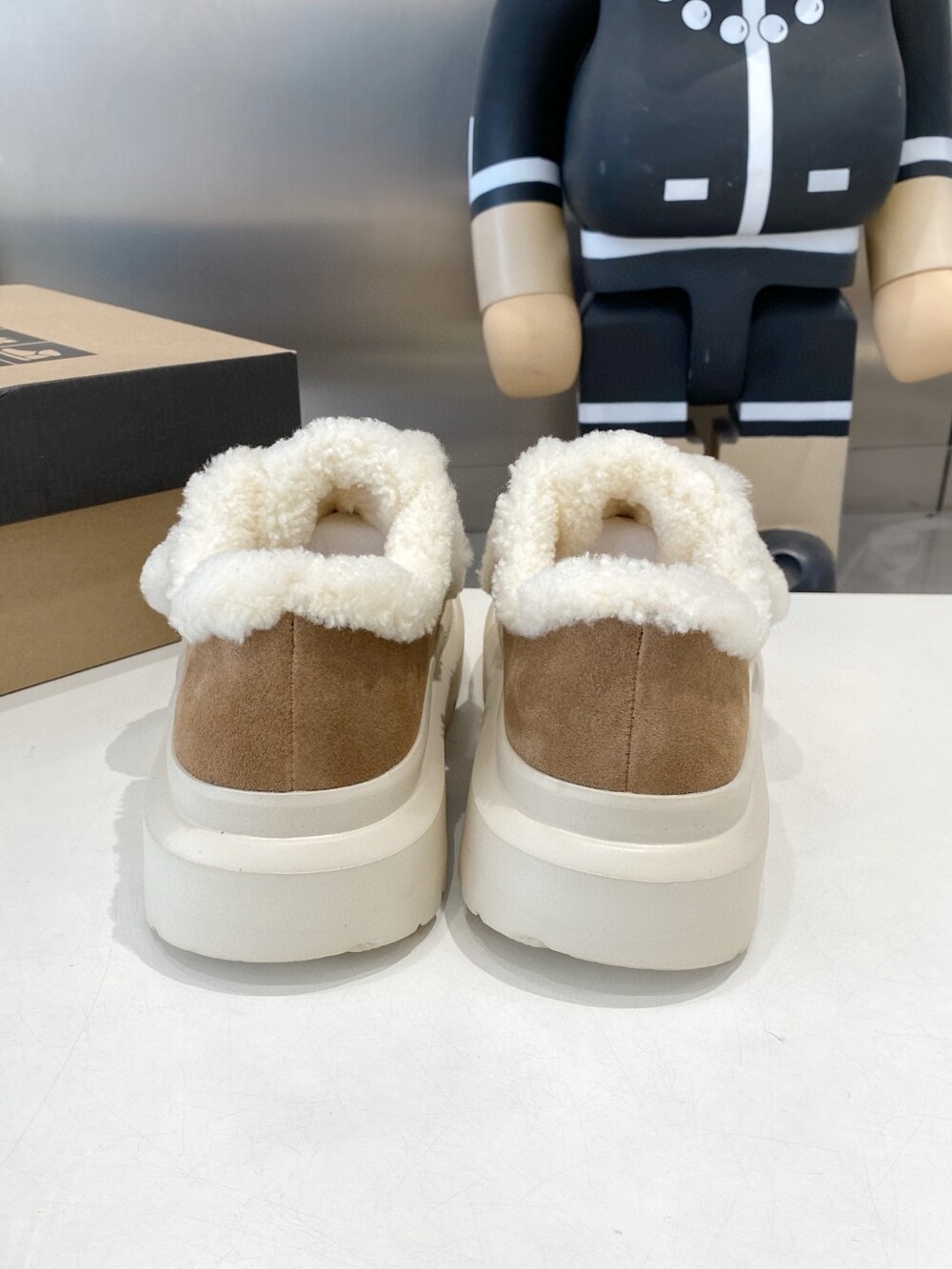 따뜻하게 신을 수 있는 UGG 로고 플랫폼 뮬이에요.