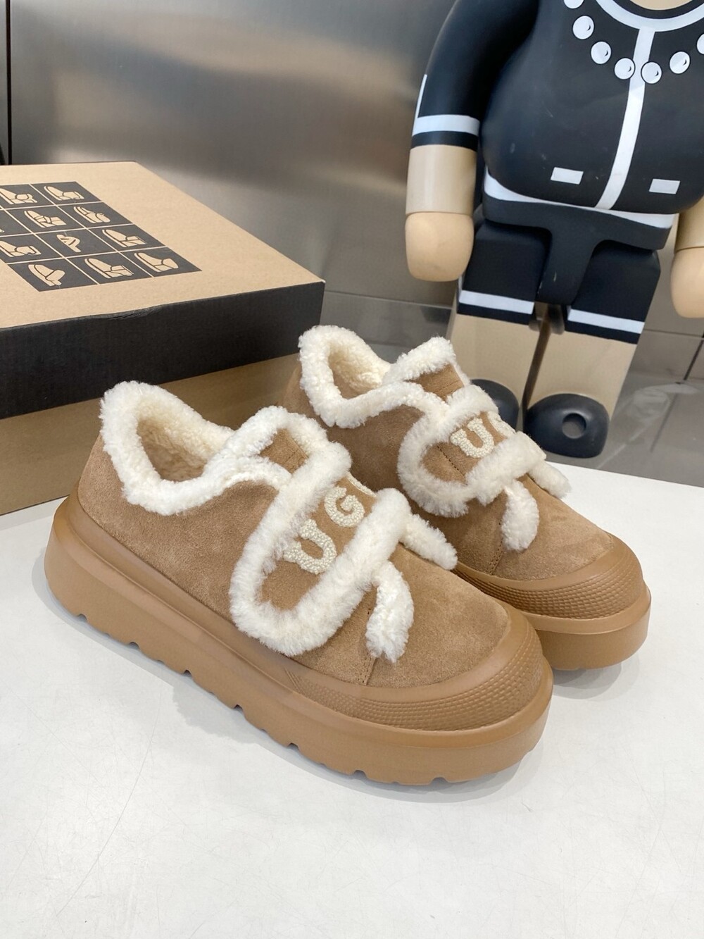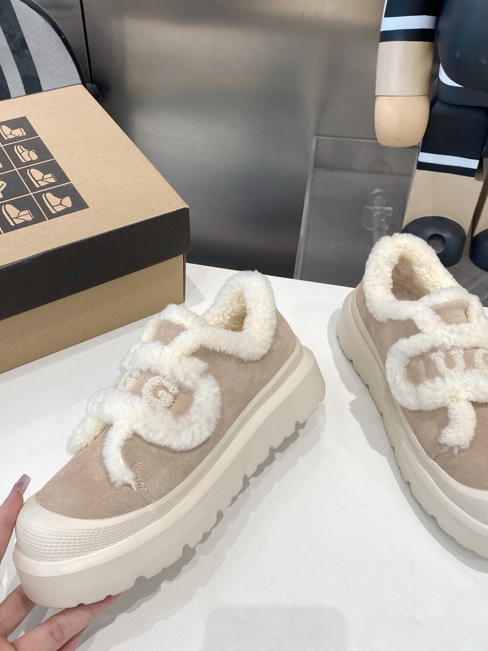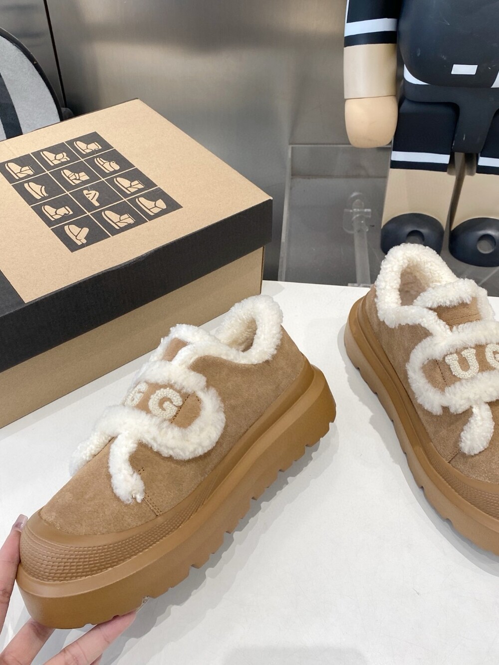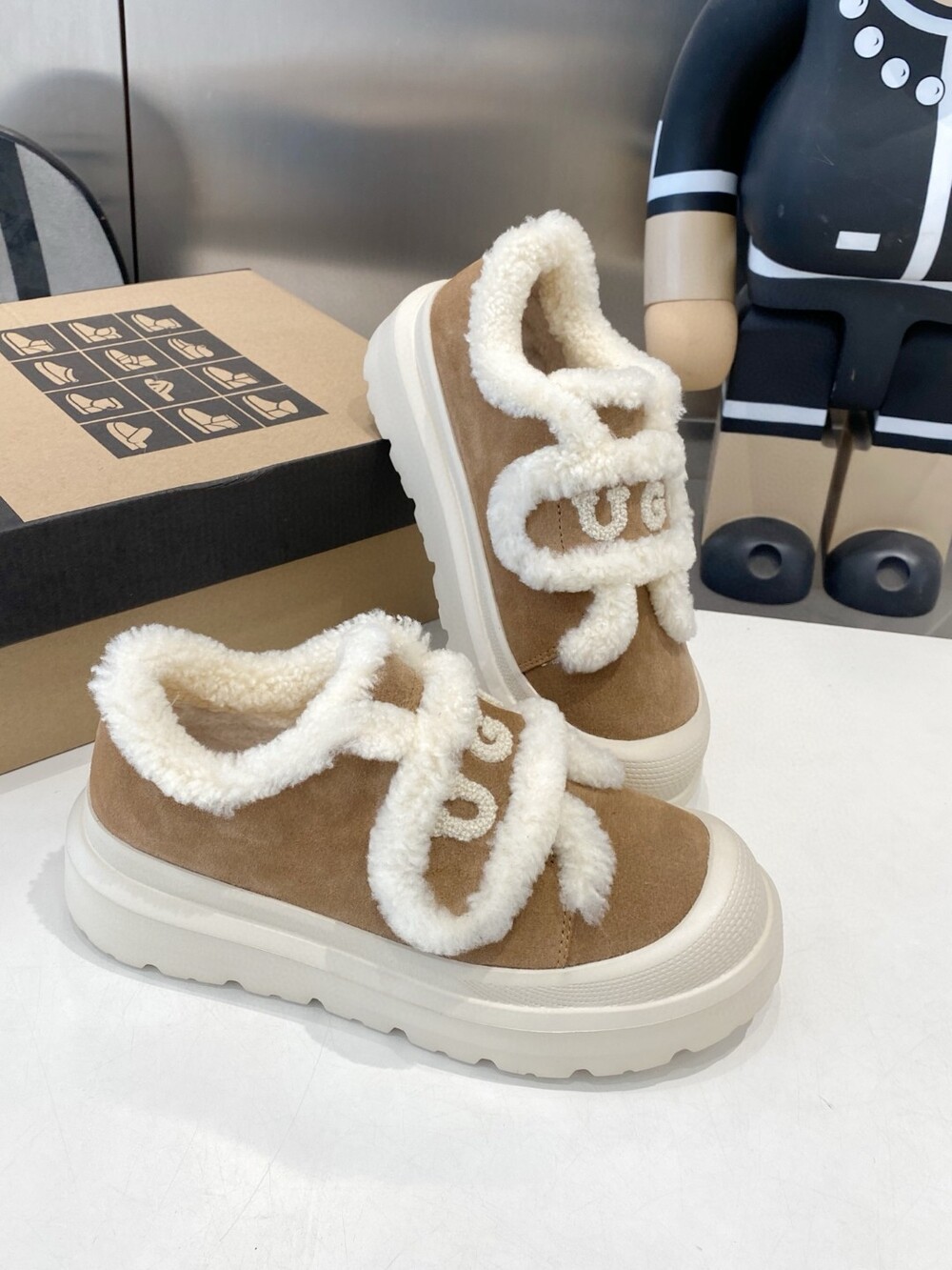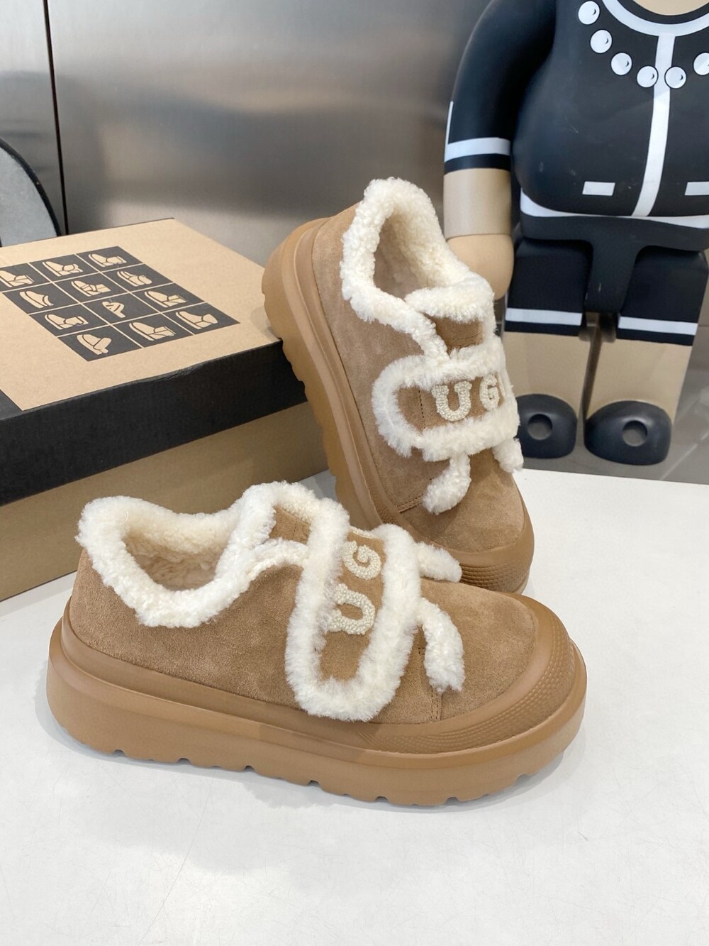 따뜻하게 신을 수 있는 UGG 로고 플랫폼 뮬이에요.