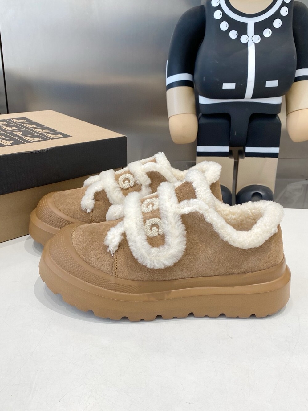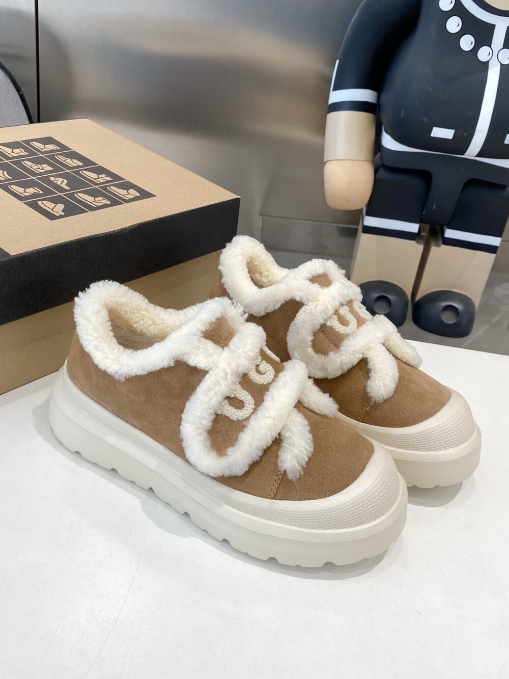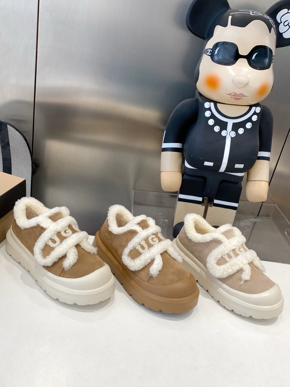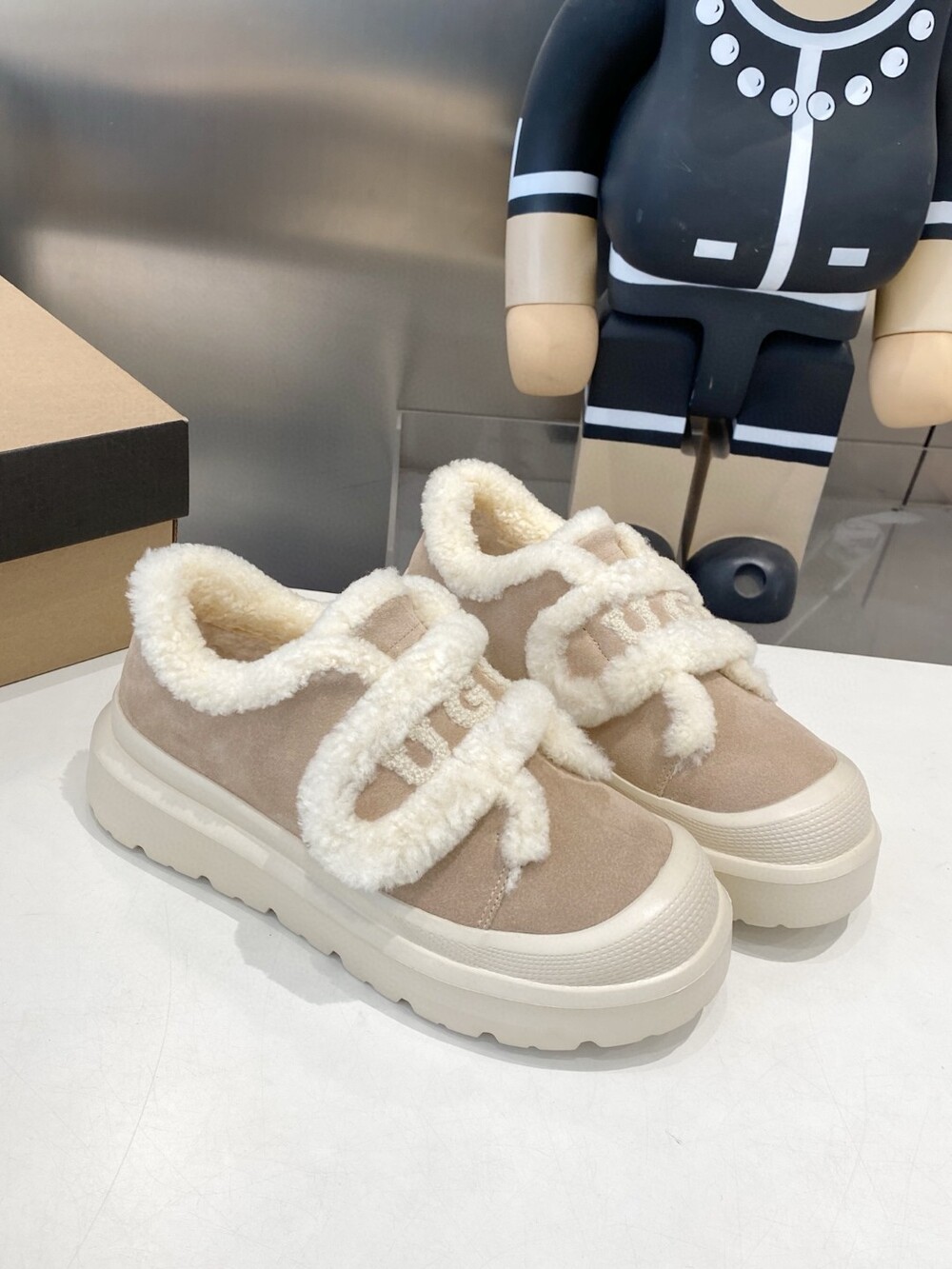 따뜻하게 신을 수 있는 UGG 로고 플랫폼 뮬이에요.