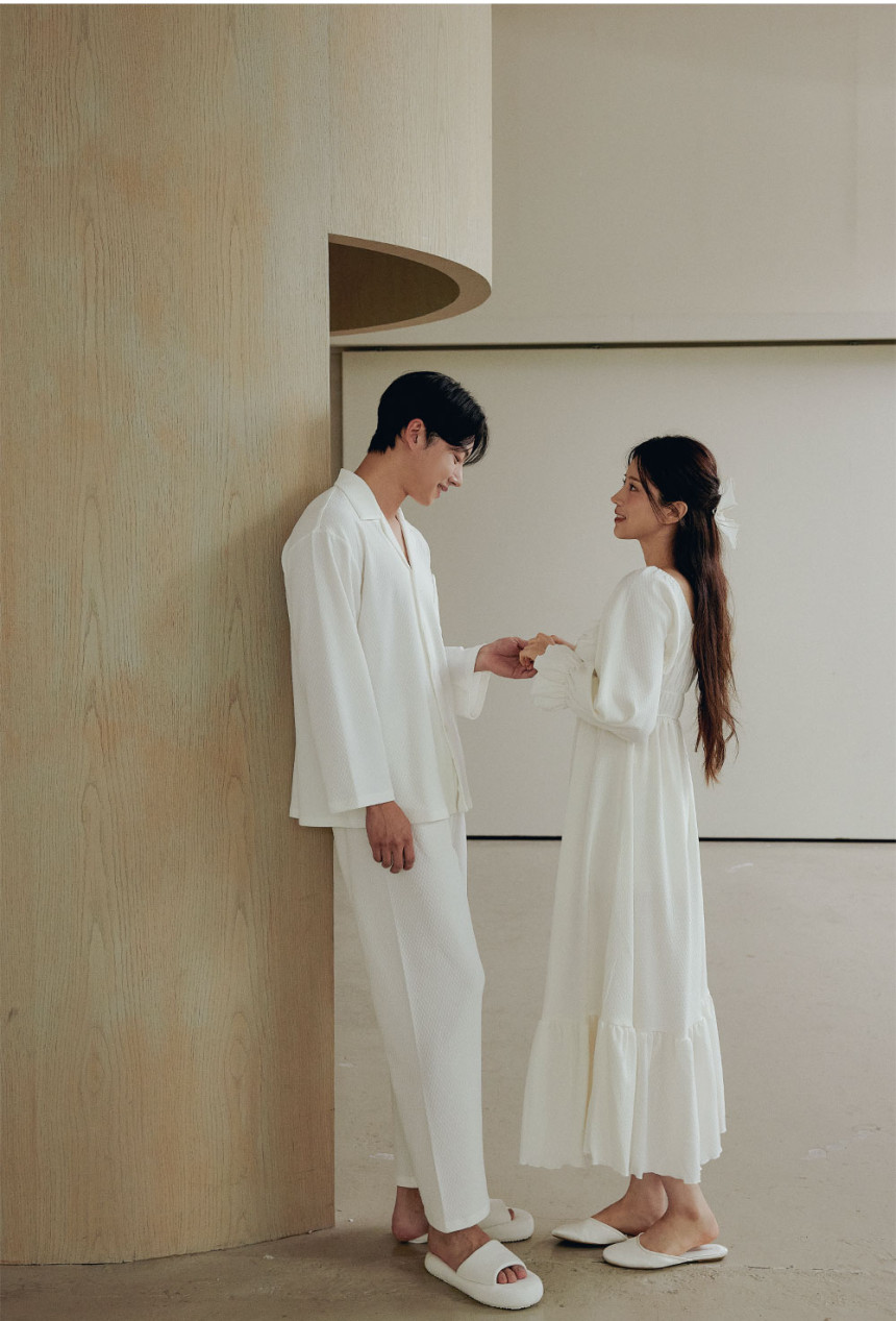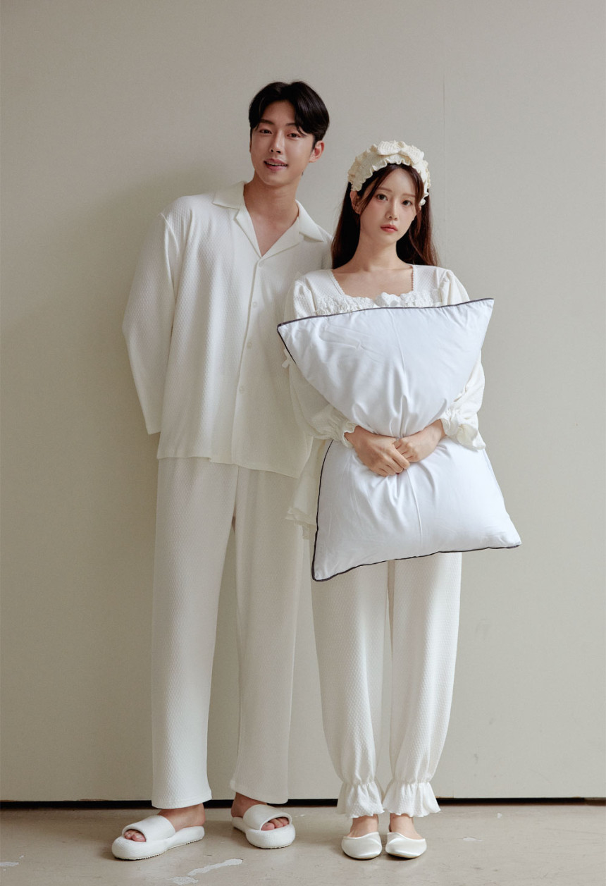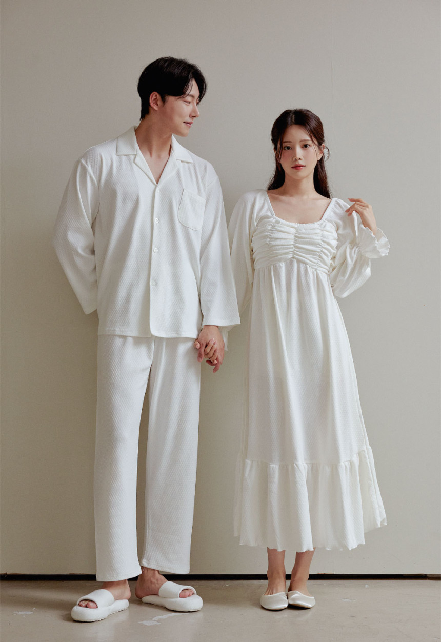 여성 남성 커플 몽블 스판 스퀘어넥 원피스 투피스 잠옷