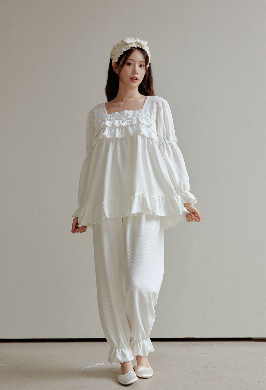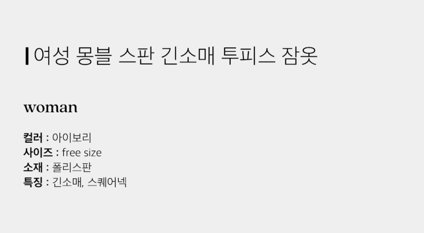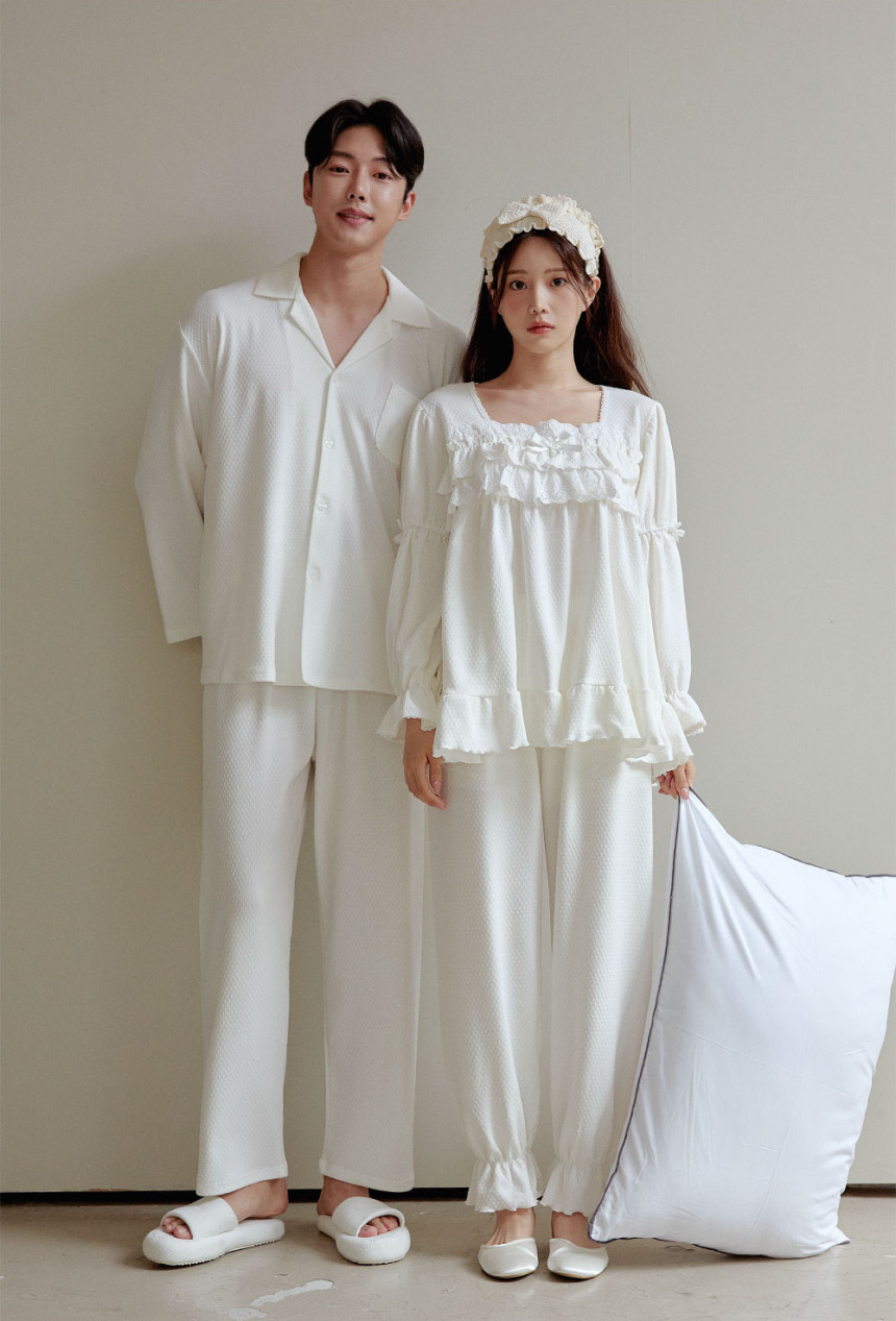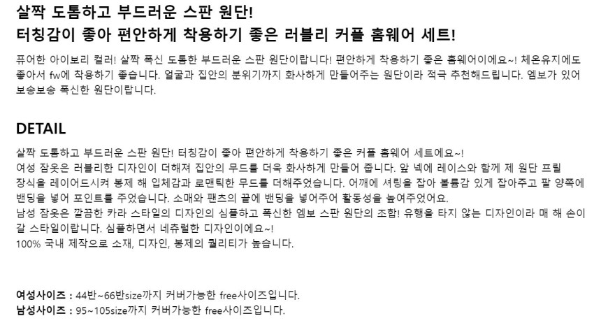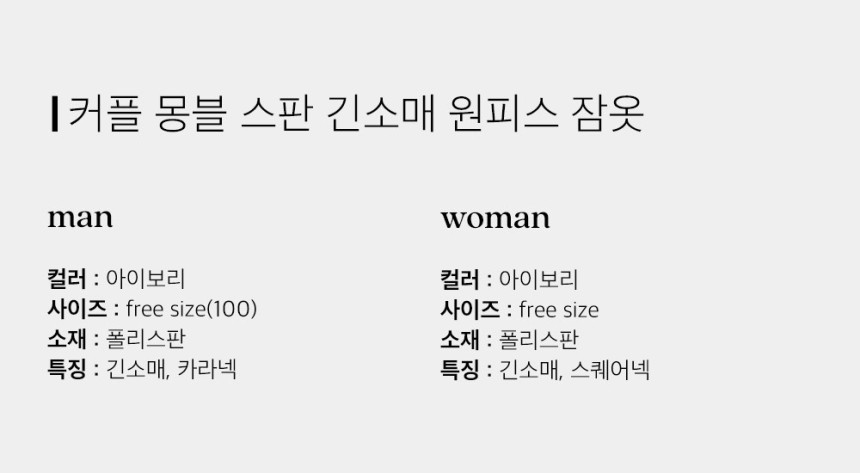 여성 남성 커플 몽블 스판 스퀘어넥 원피스 투피스 잠옷