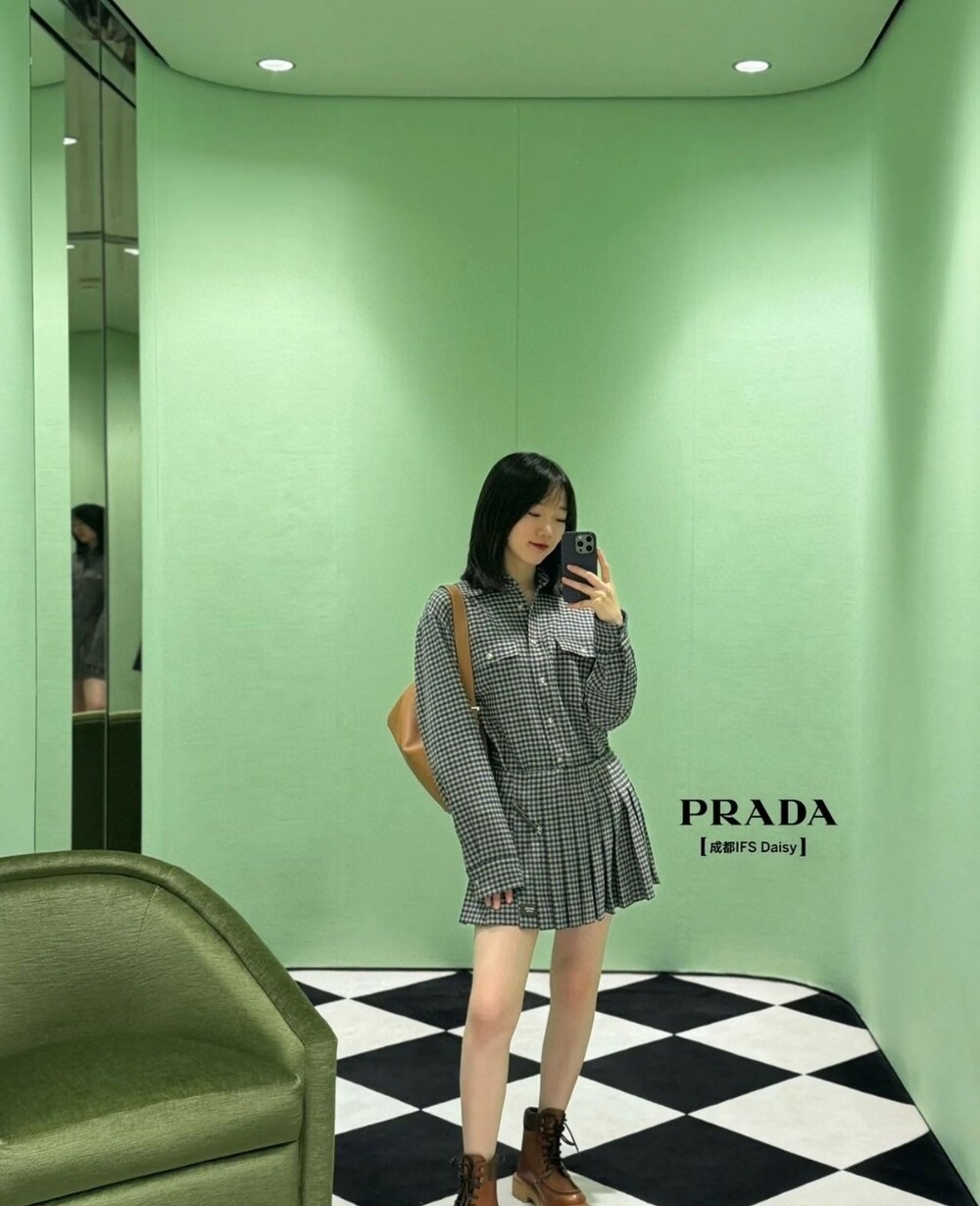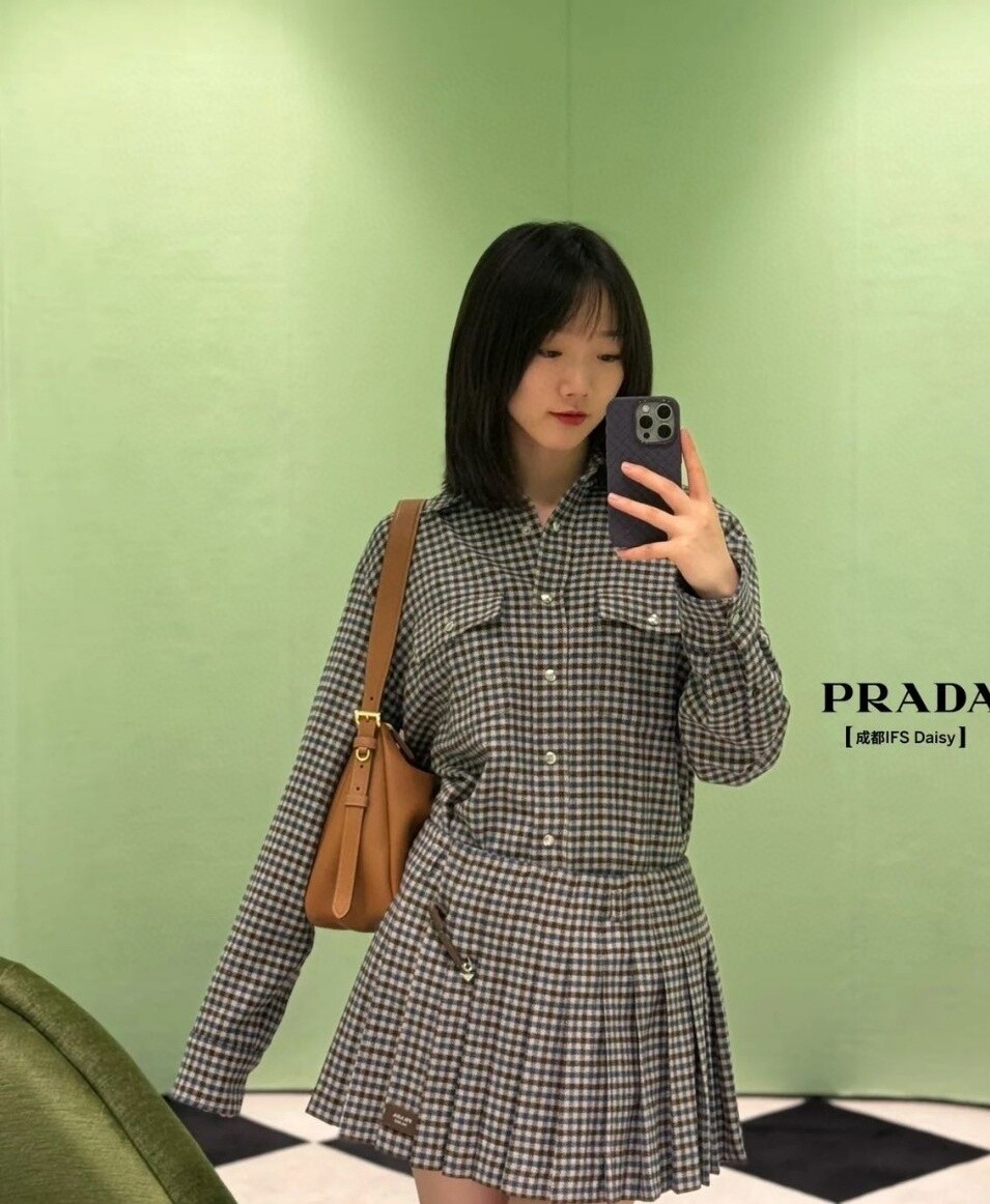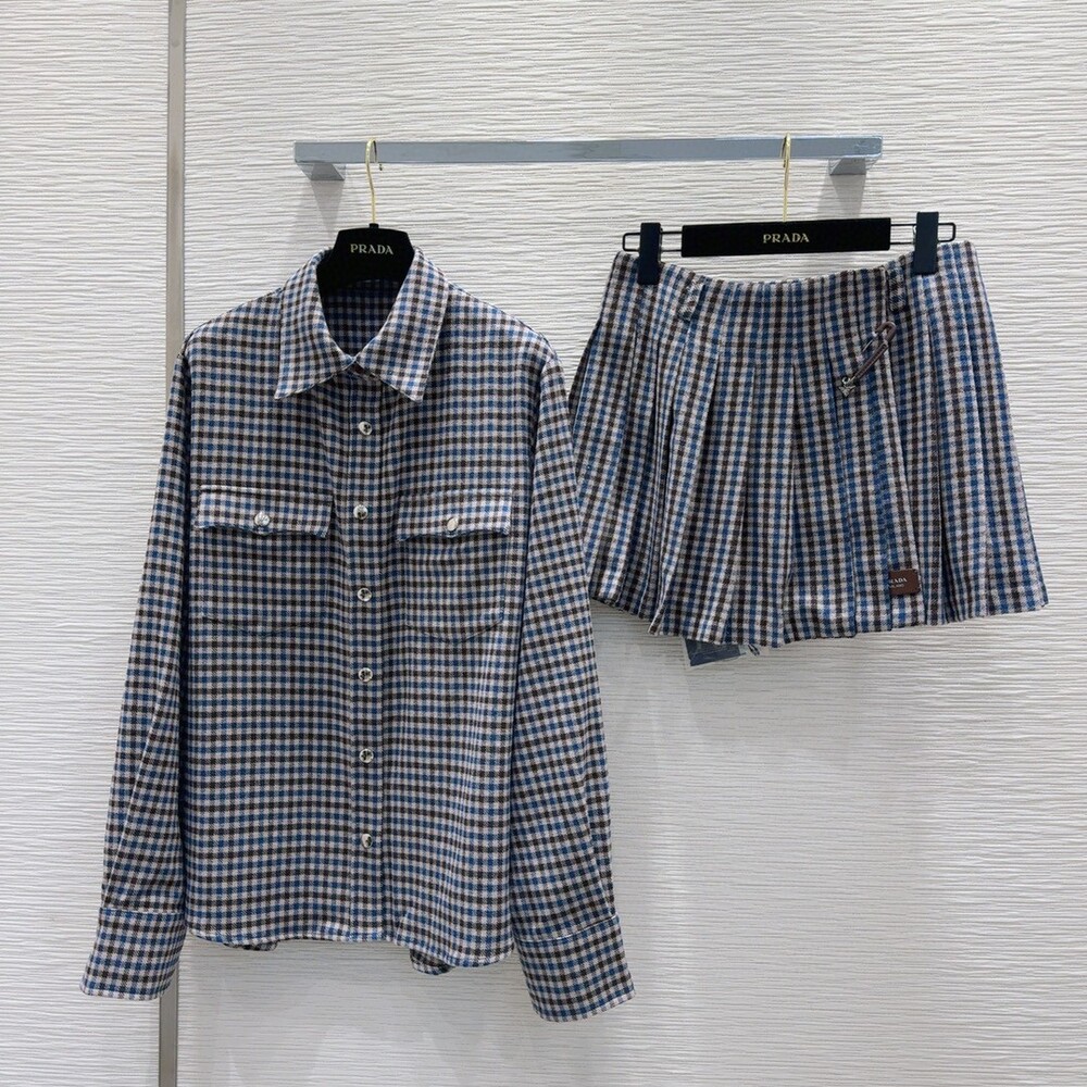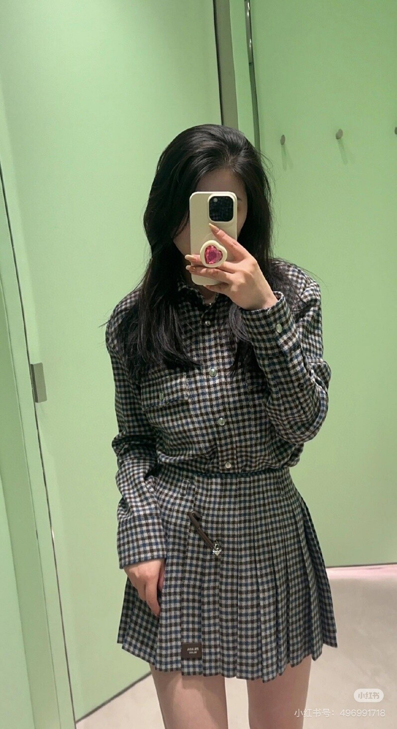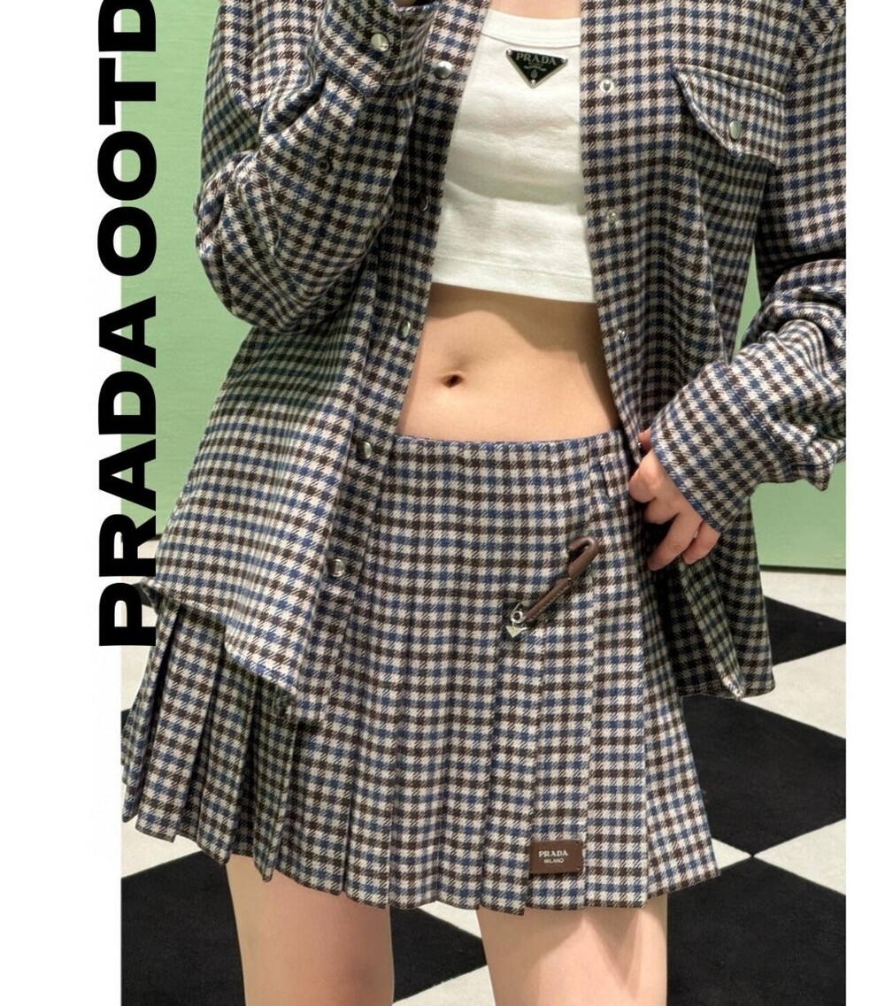 스커트는 랩 디자인이지만 플리츠스커트처럼 보이고