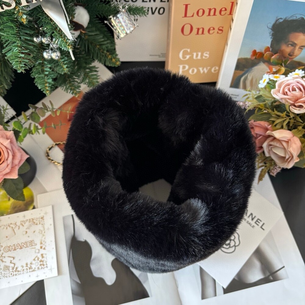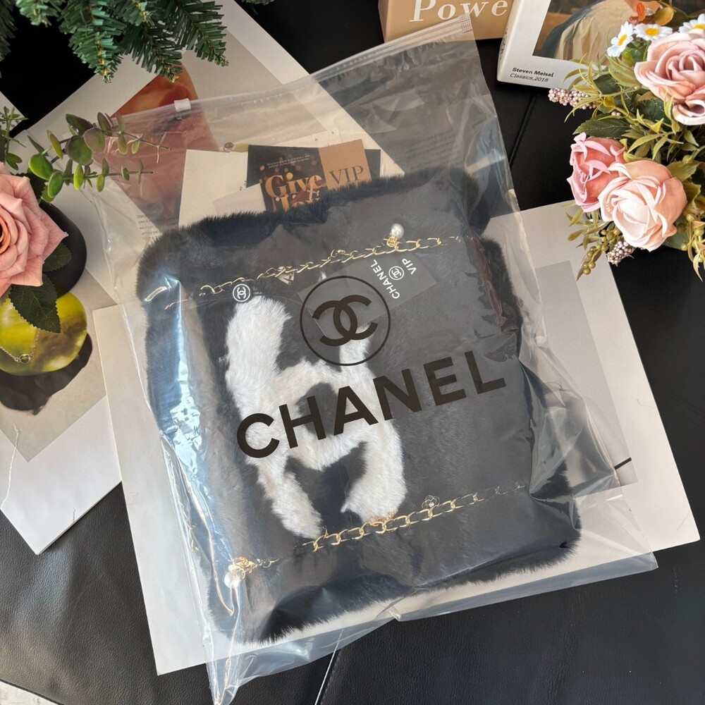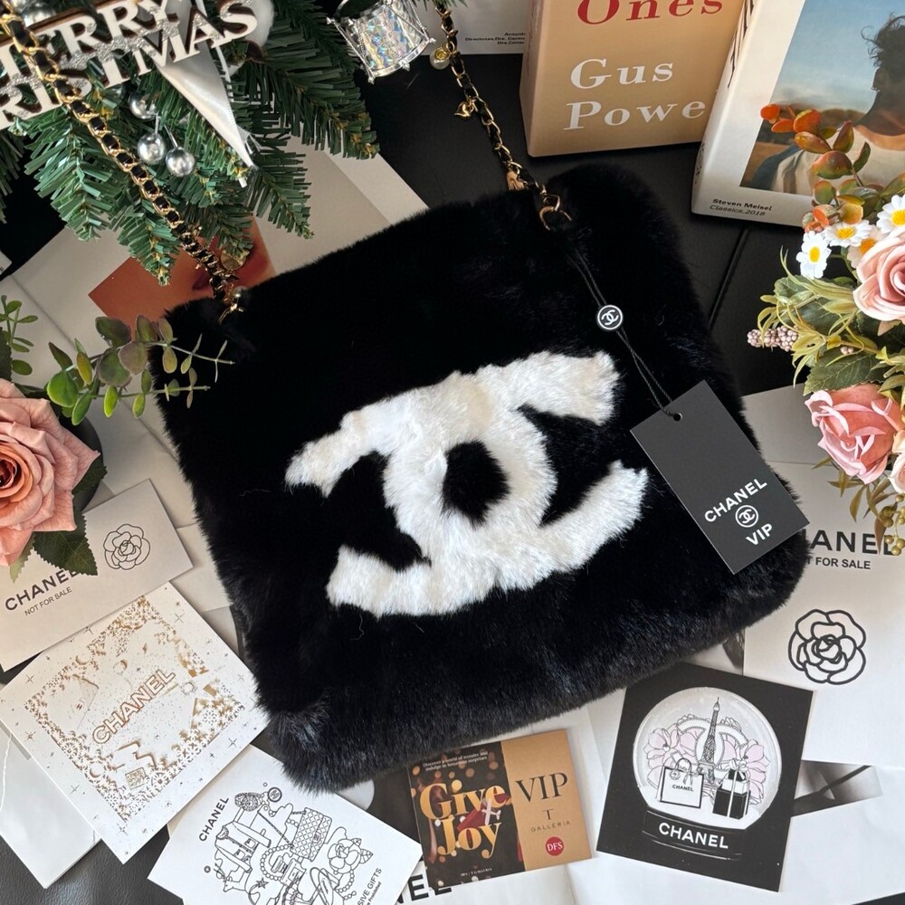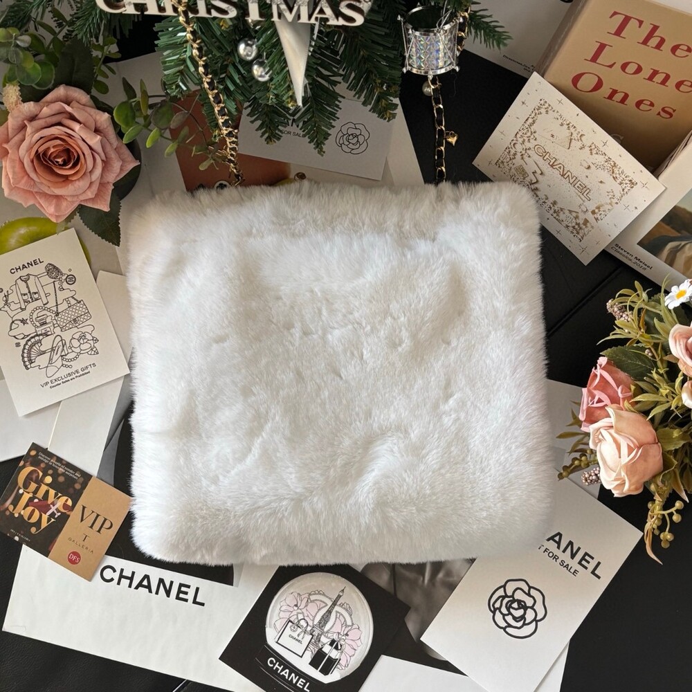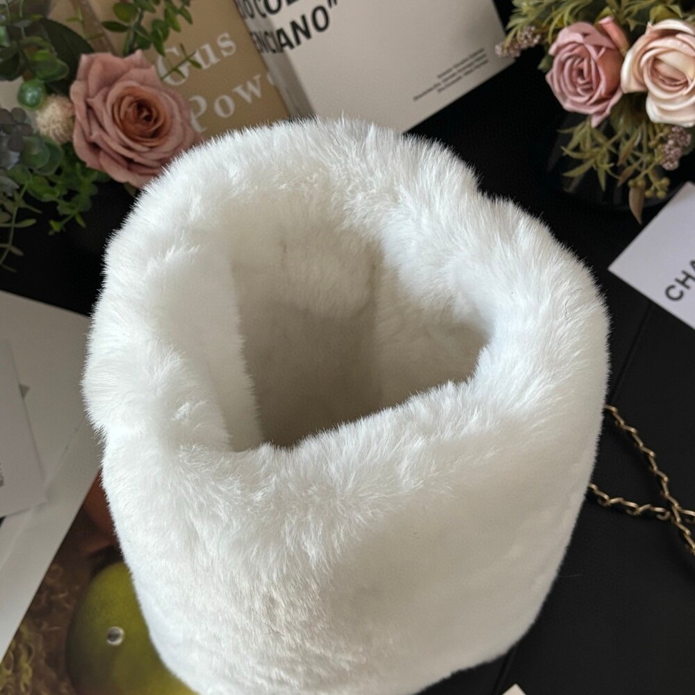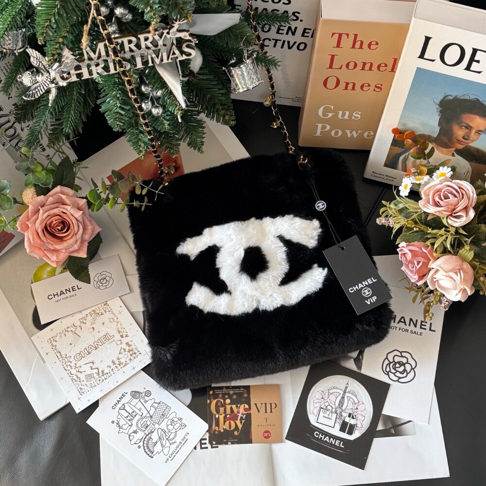 A luxurious faux fur chain pouch inspired by CHANEL’s iconic aesthetic.