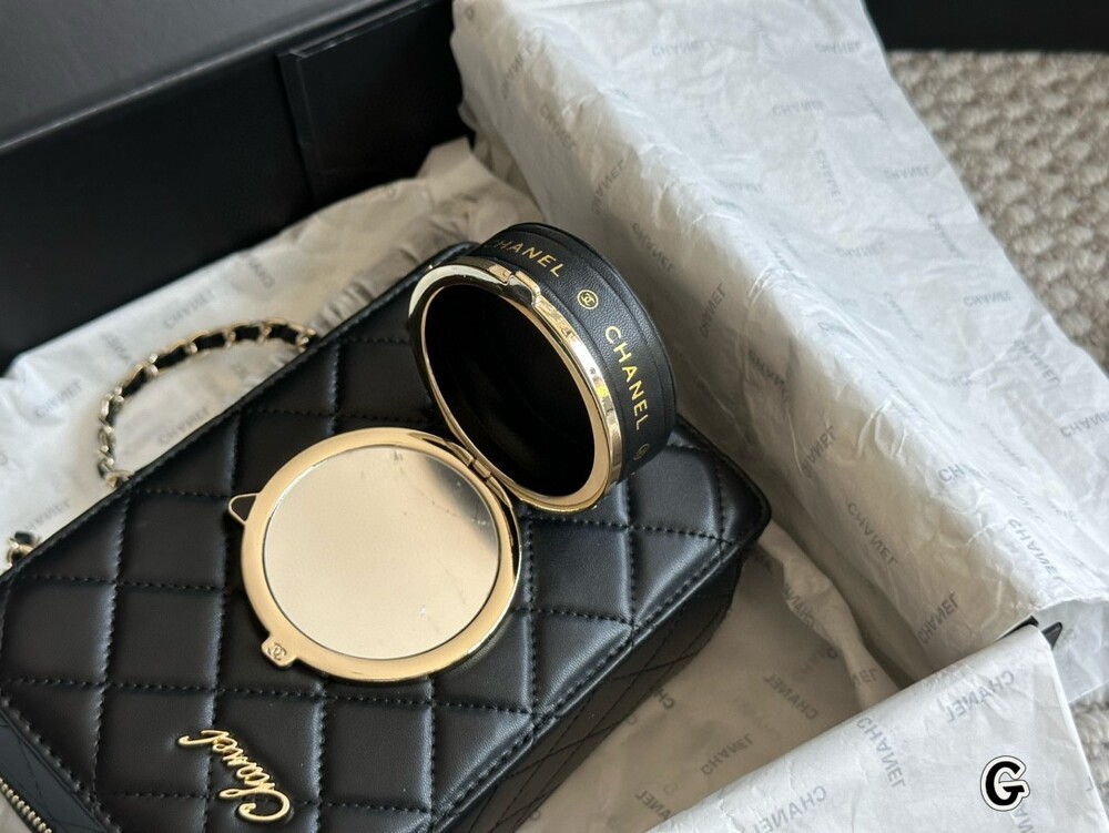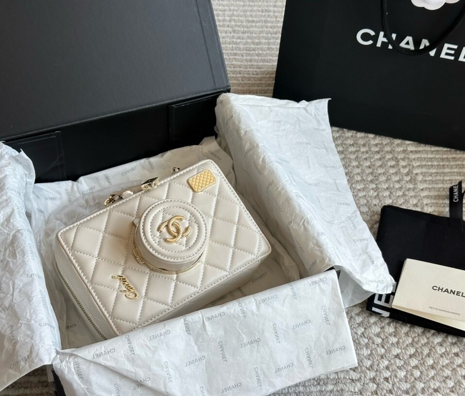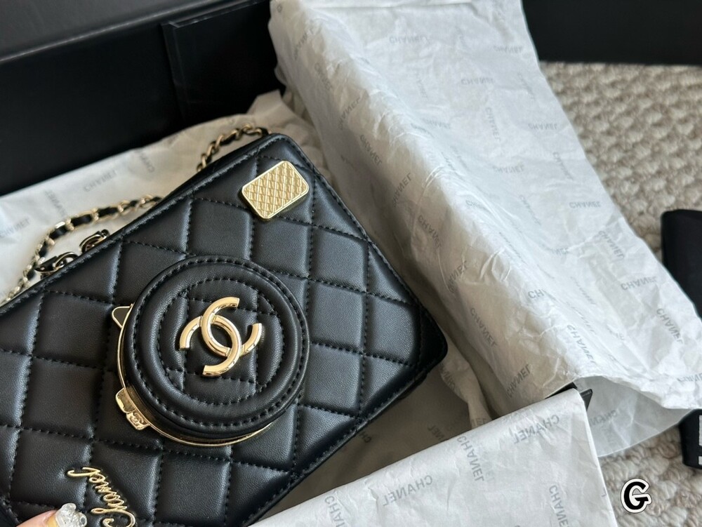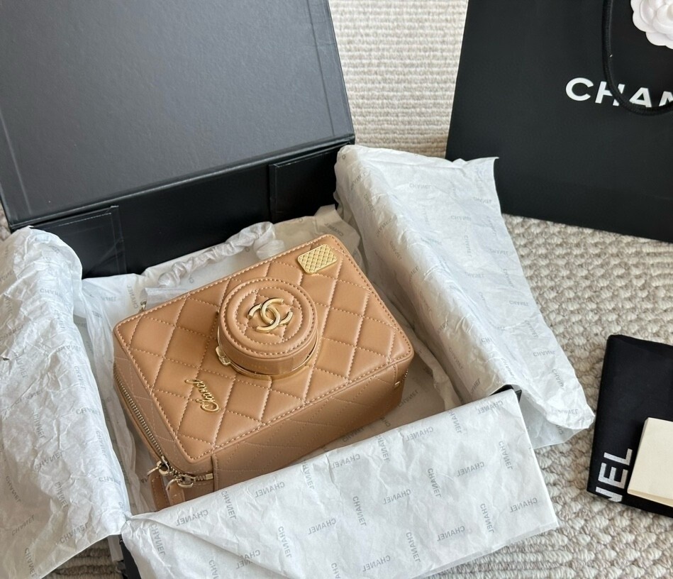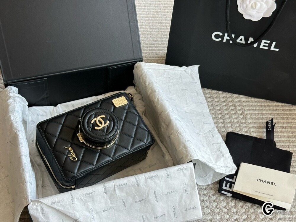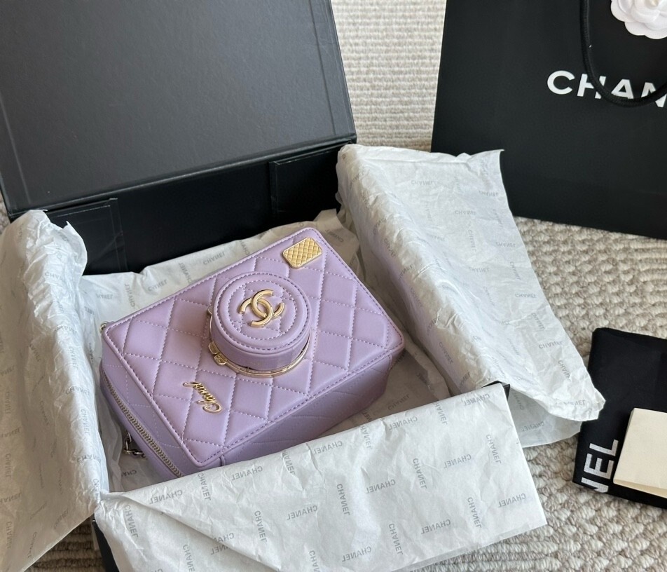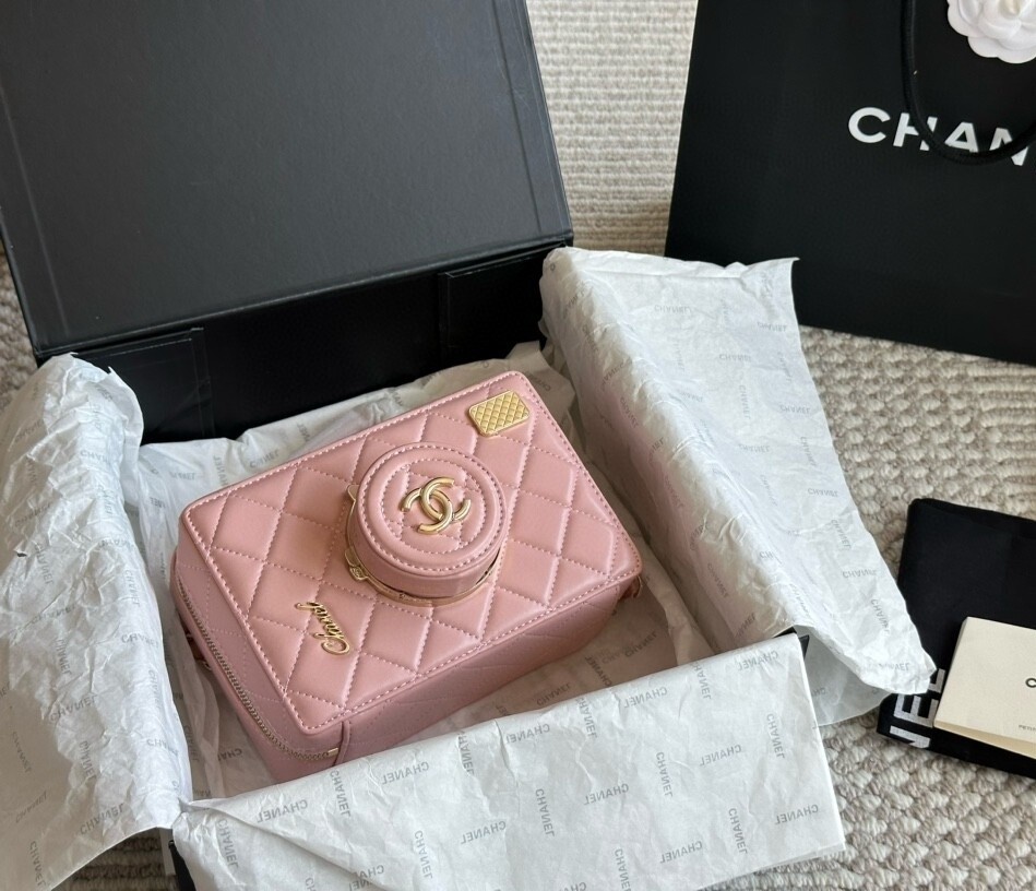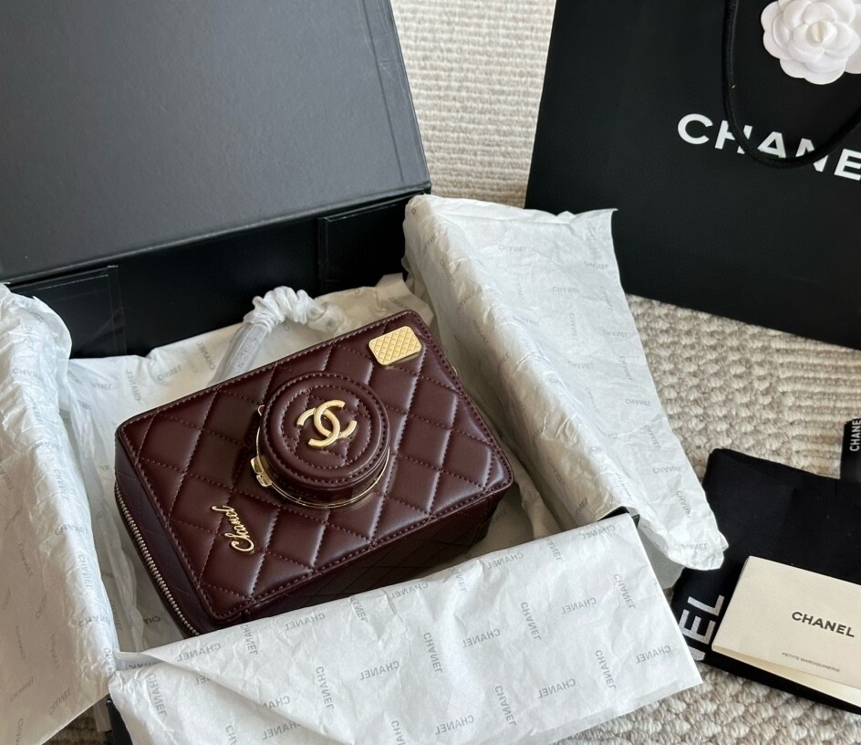 카메라를 샤넬 다이아몬드 퀼팅과 적절한 로고 위치