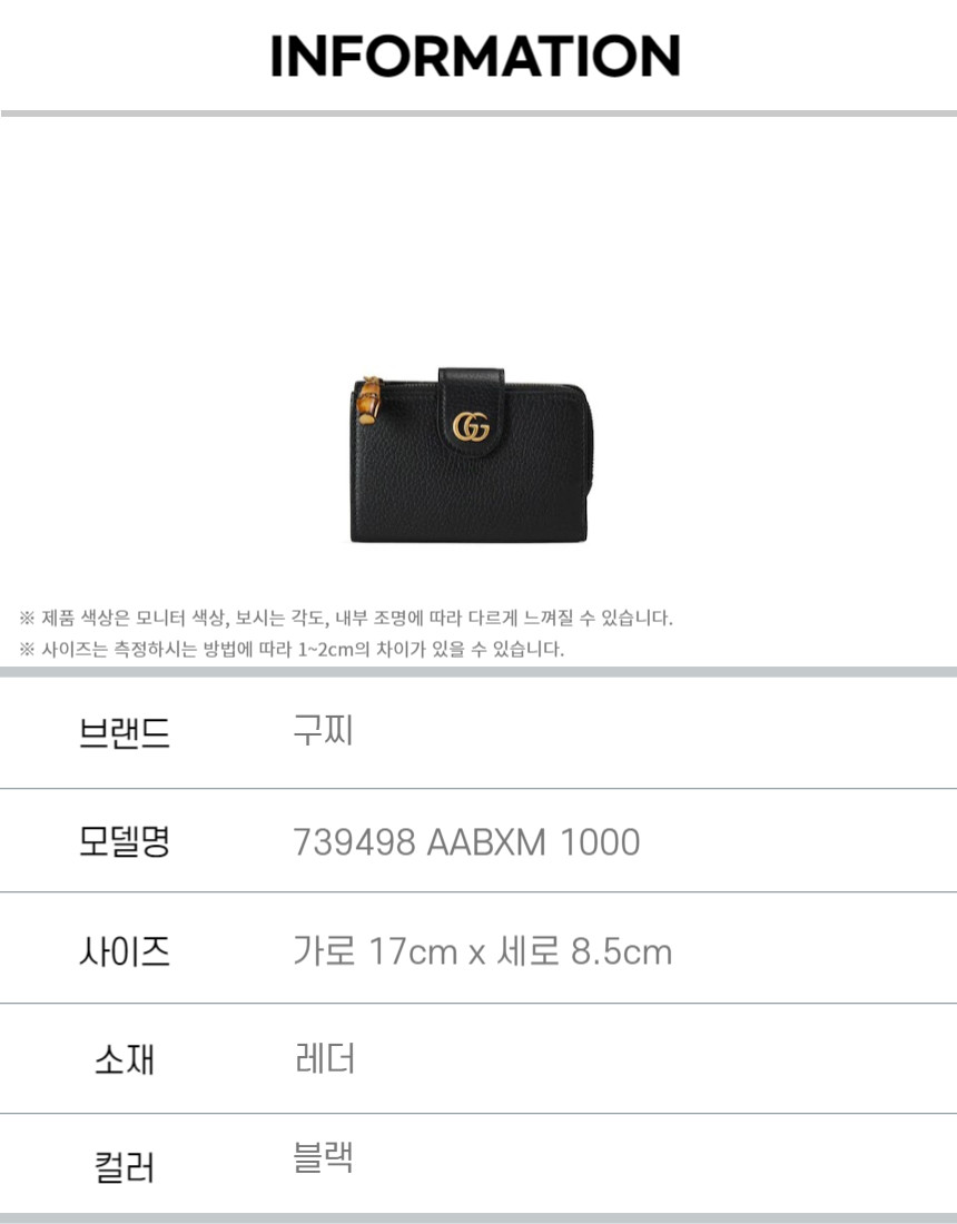 구찌 뱀부 미디엄 더블 G 지갑[BLACK] 739498 AABXM 1000