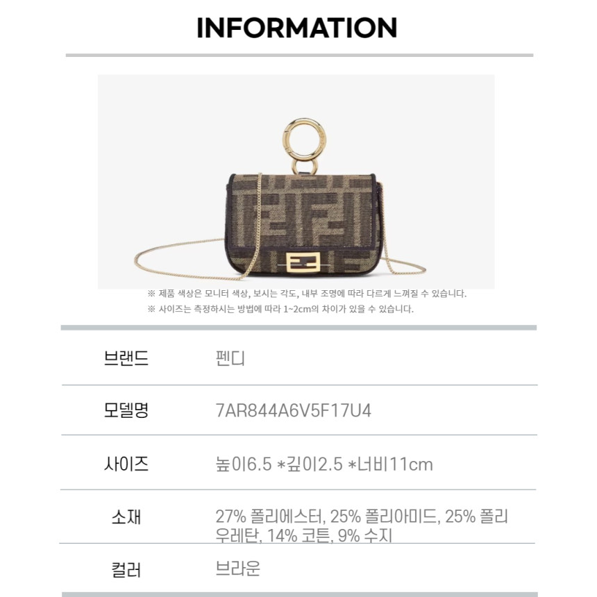 상품명펜디 나노 바게트 백[BROWN] 7AR844A6V5F17U4