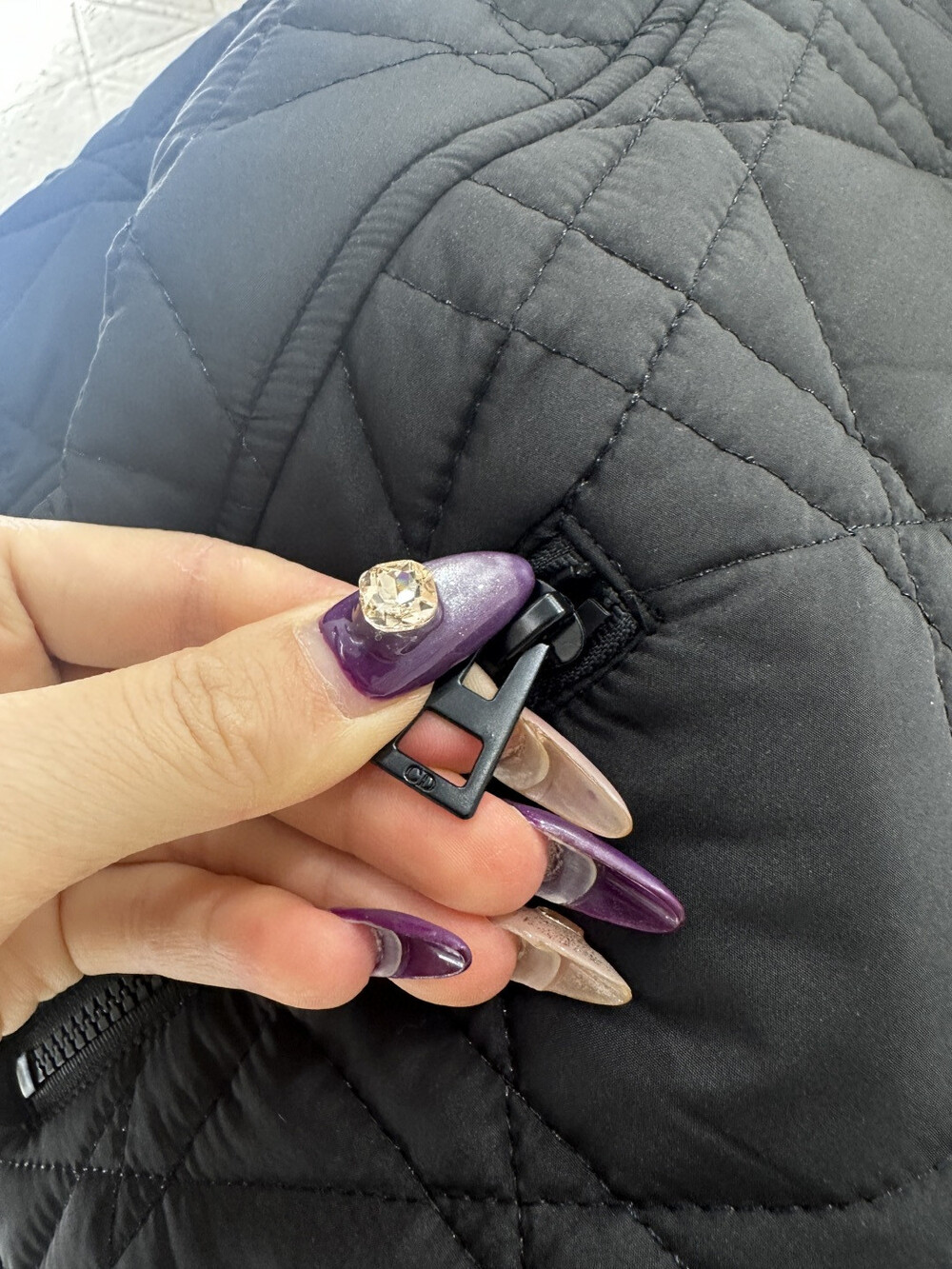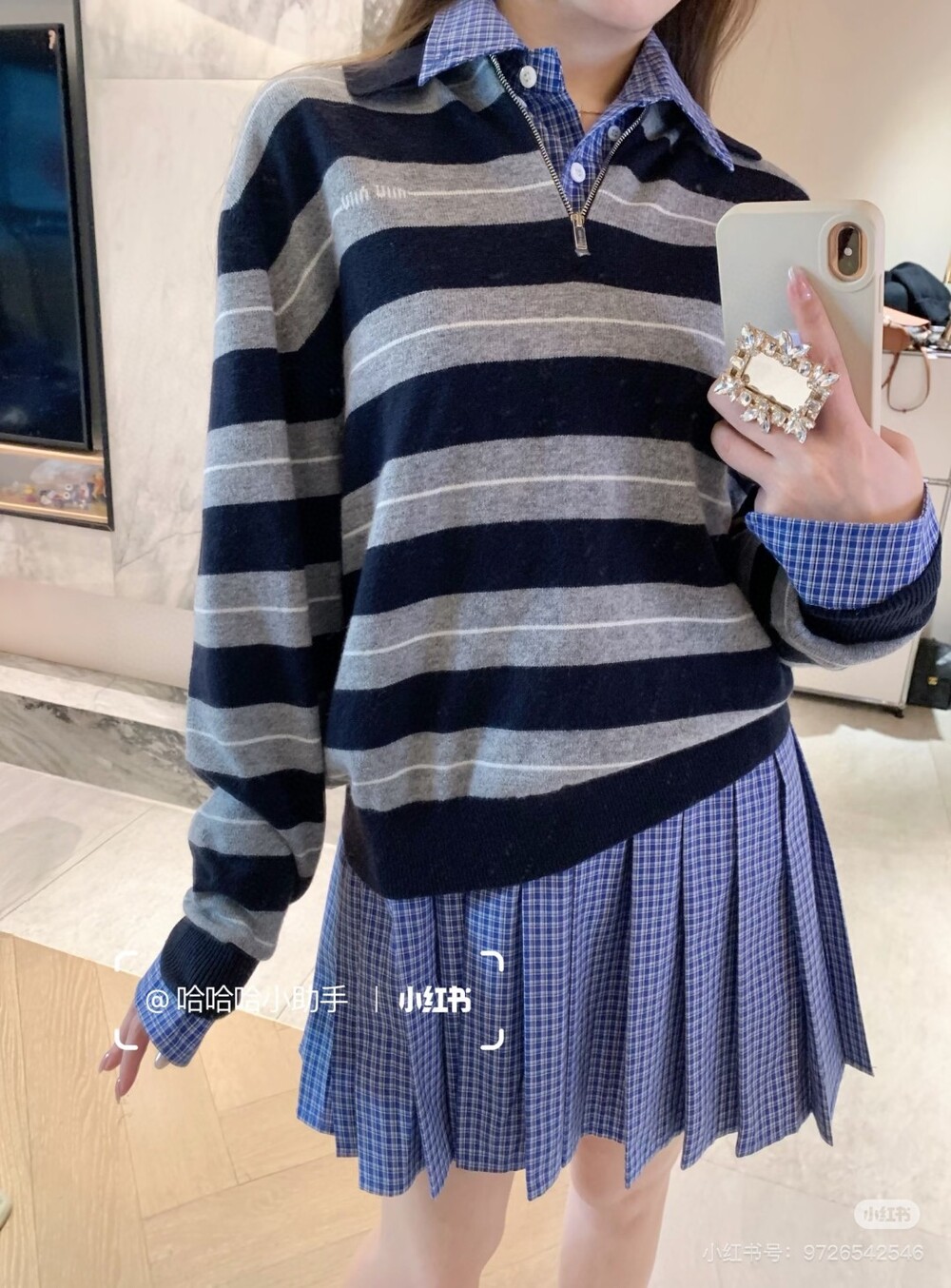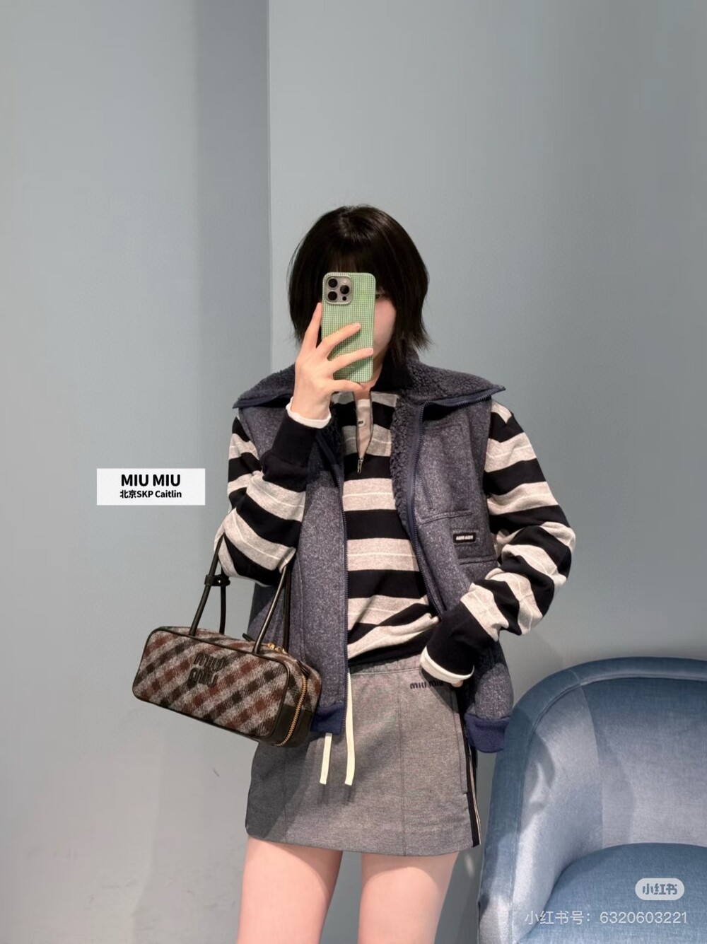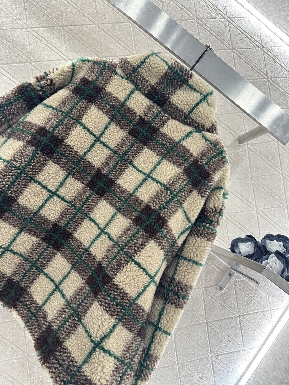 Q. 뮤뮤 체커드 플리스 크롭 집업