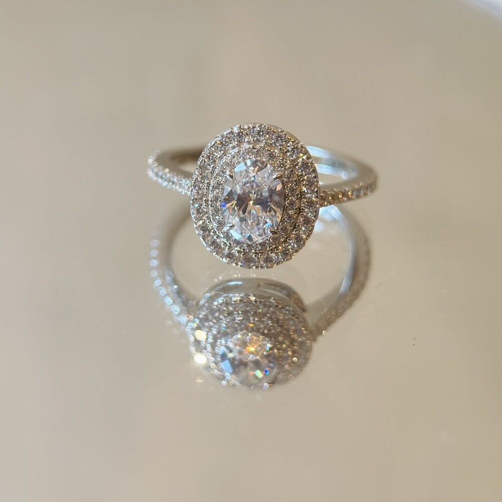 double row diamond ring uses diamond cutting technology to cut artificial diamonds, be sure to enter and feel the charm of our diamond, will subvert your understanding of the diamond.