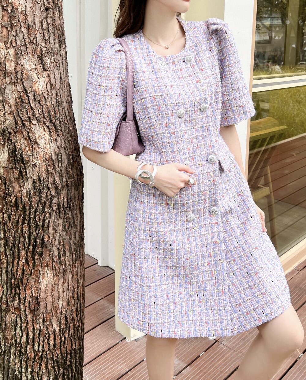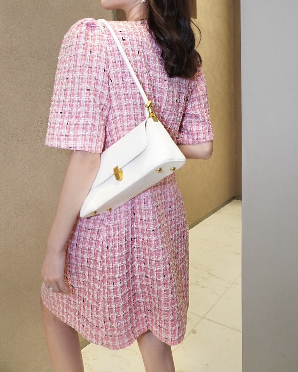 한눈에 딱 들어왔던 샤 핑크 트위드 원피스에요 ◡̈