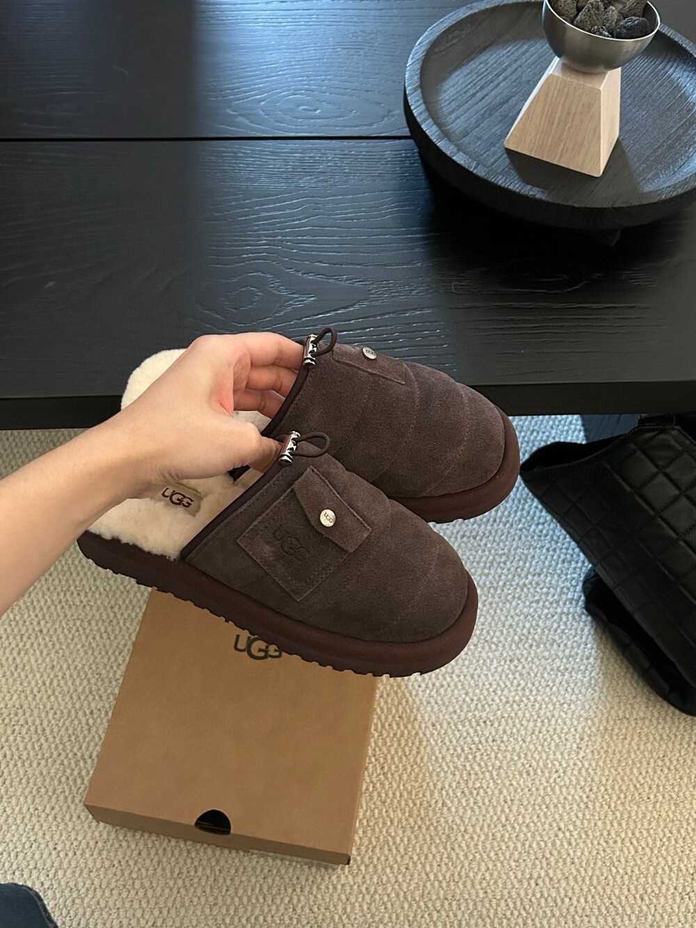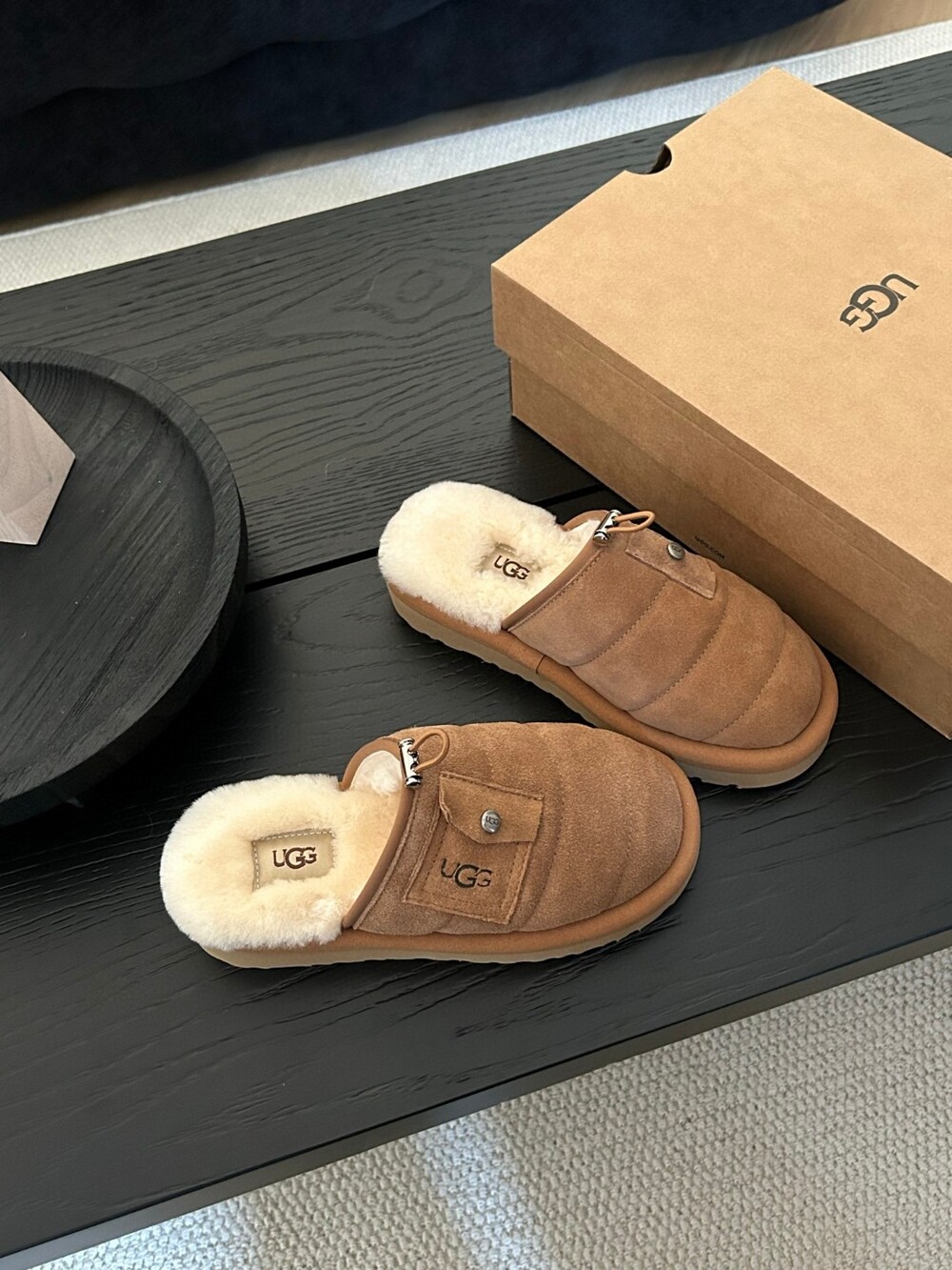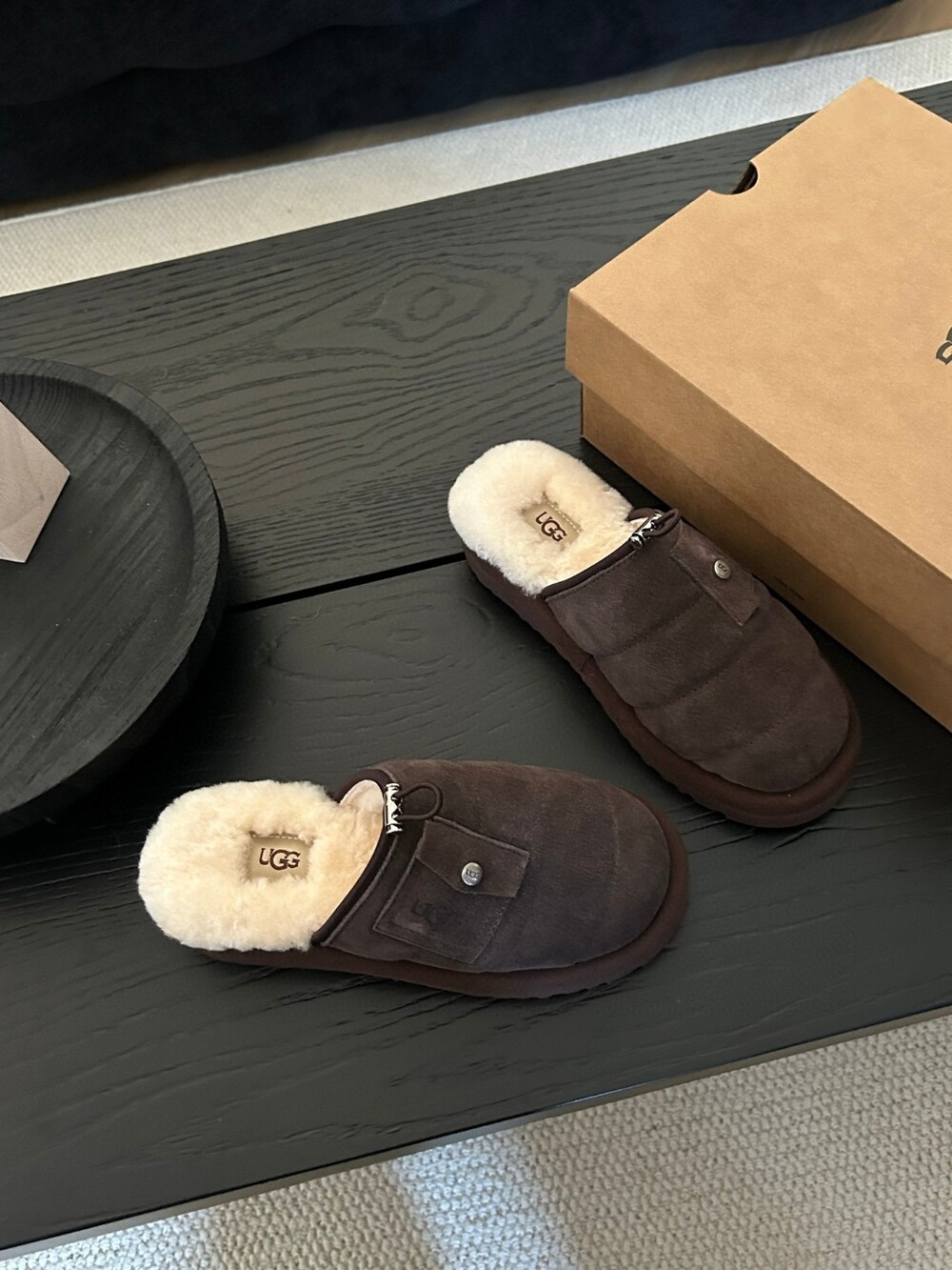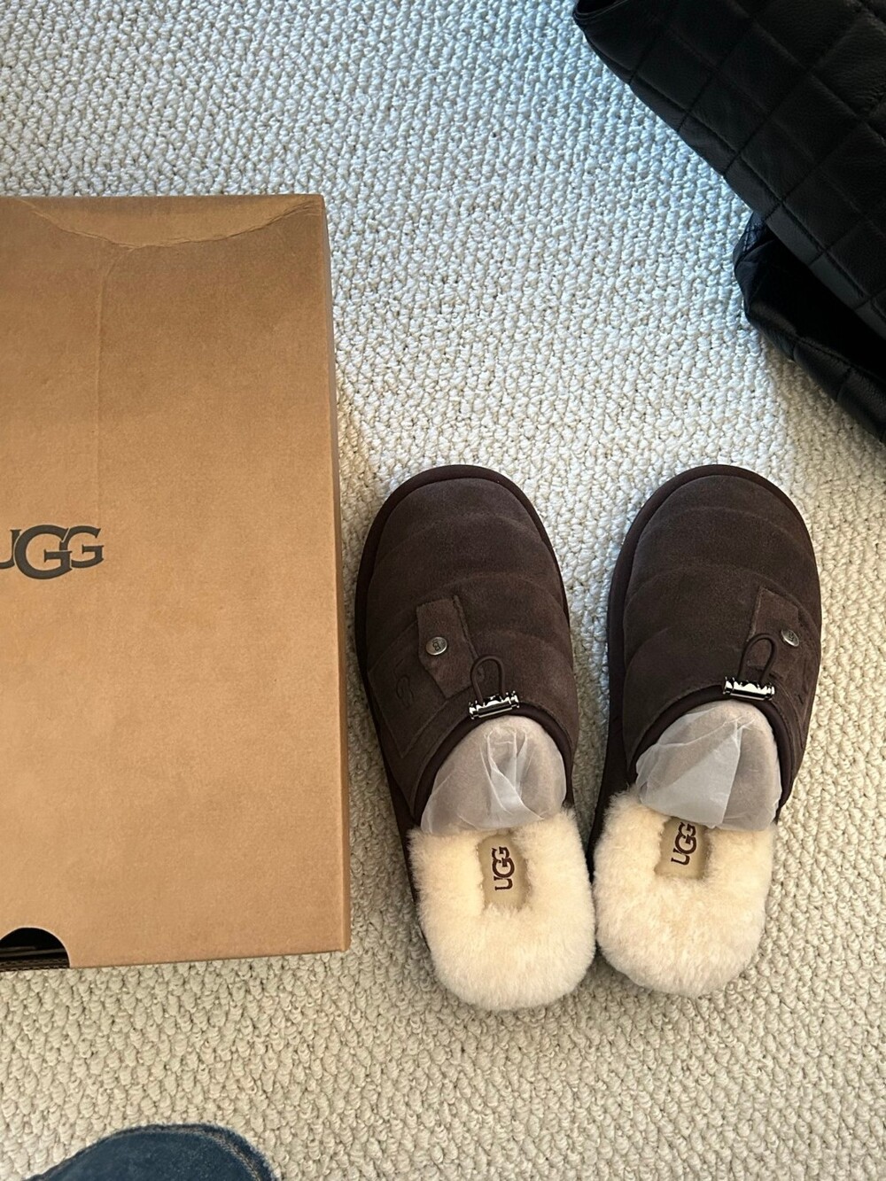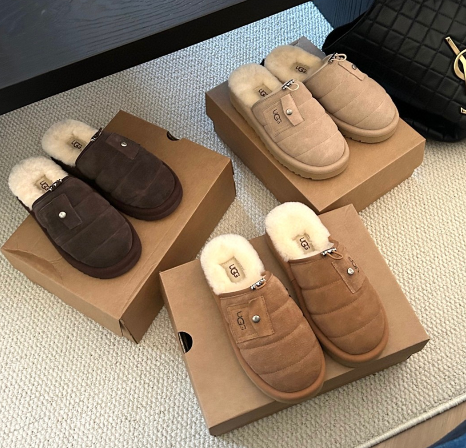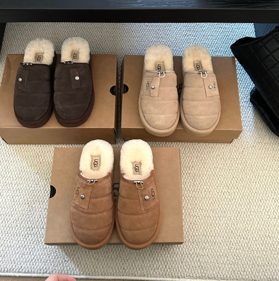 클래식하면서도 모던한 무드의 퍼 슬리퍼 입니다