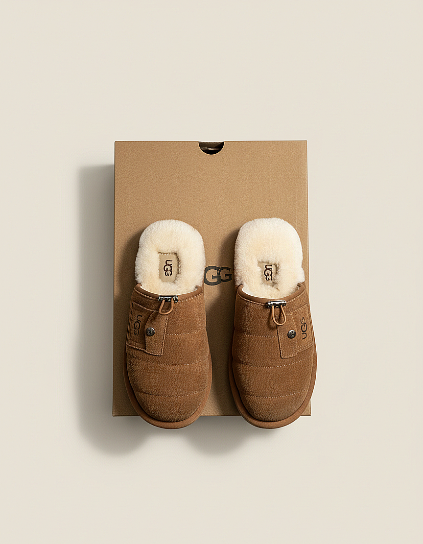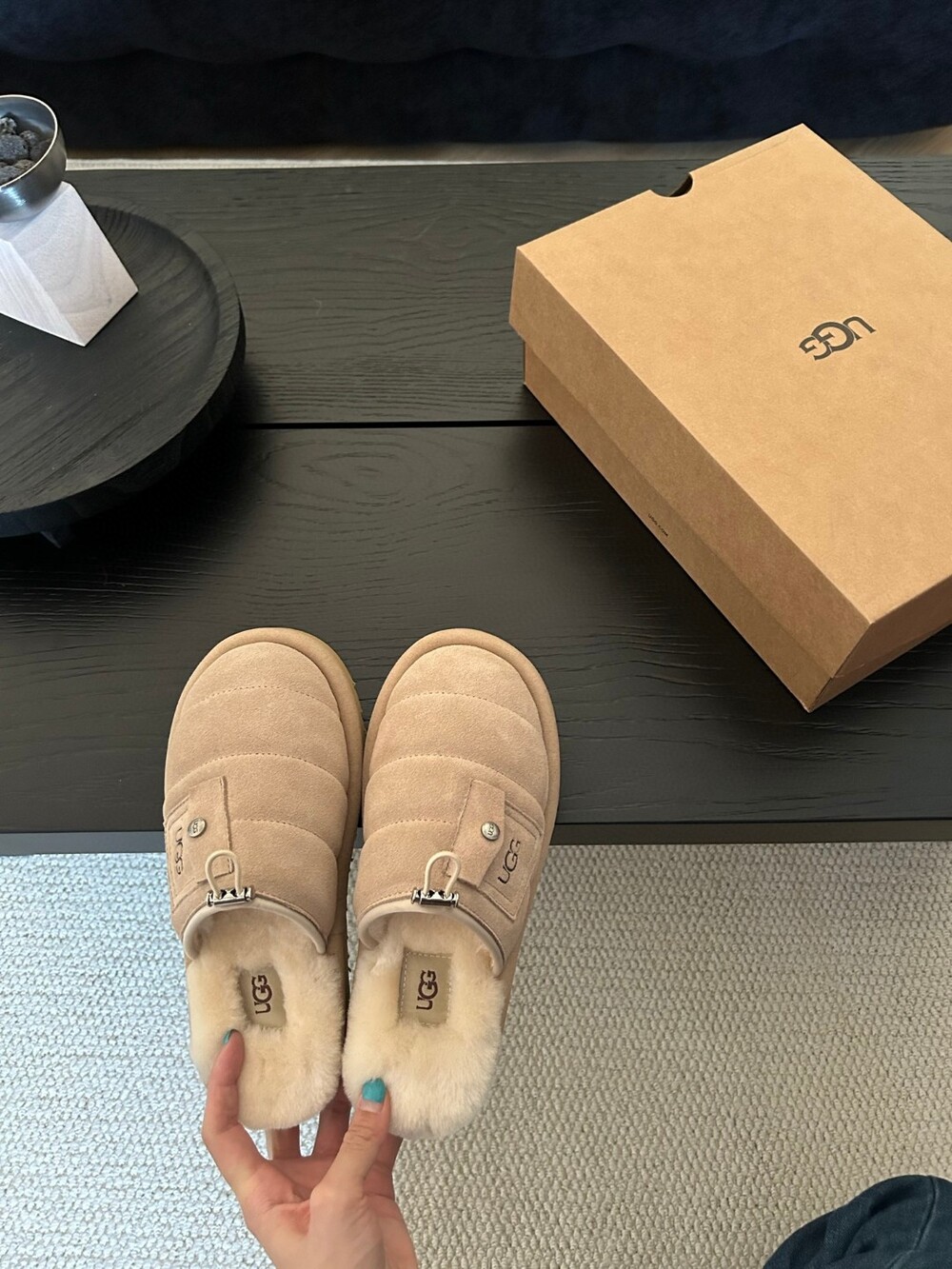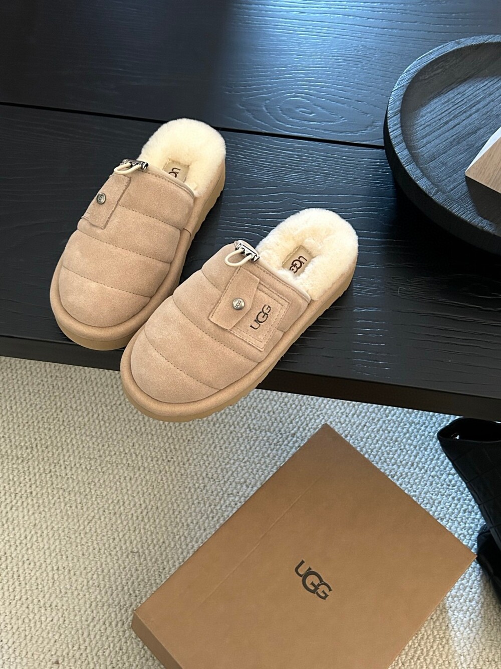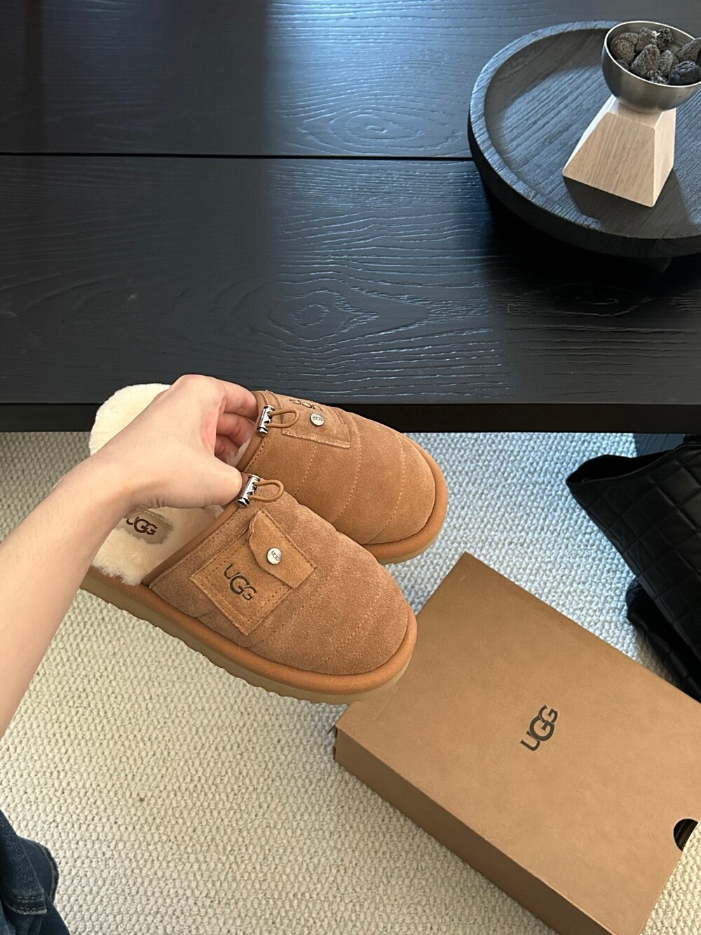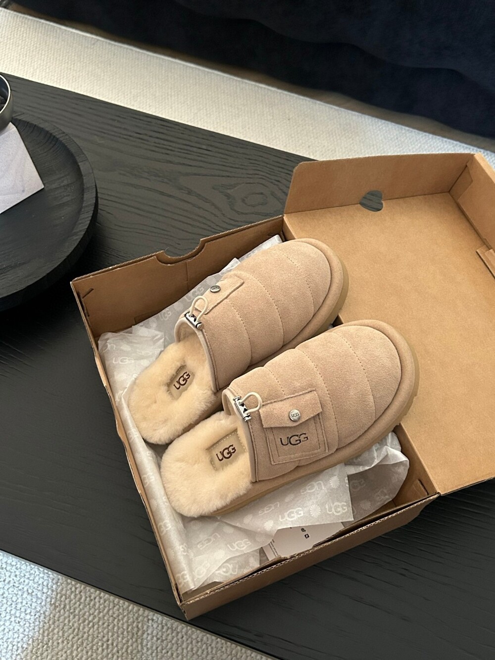 클래식하면서도 모던한 무드의 퍼 슬리퍼 입니다