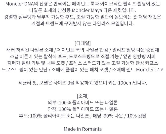 [특가오더] 몽클레어 남성 MAYA 숏 다운자켓 I20911A5360068950032