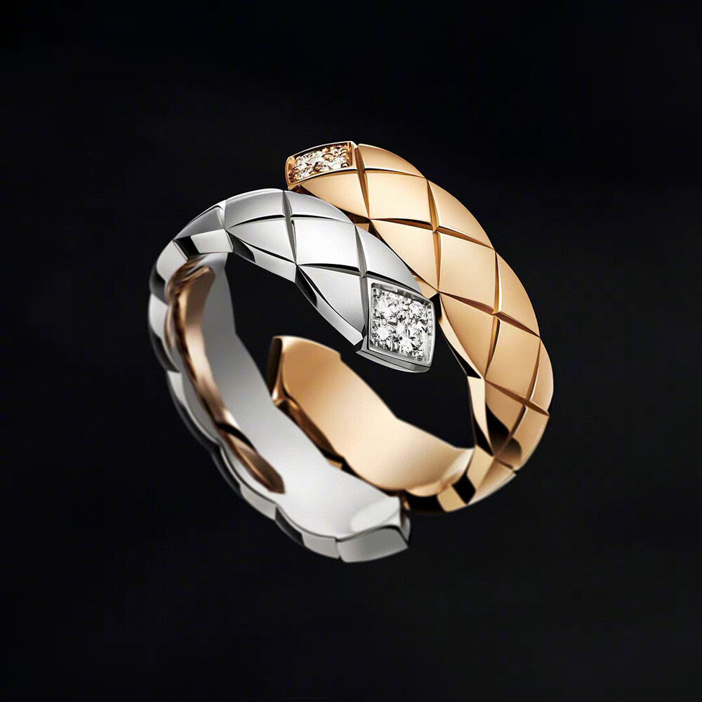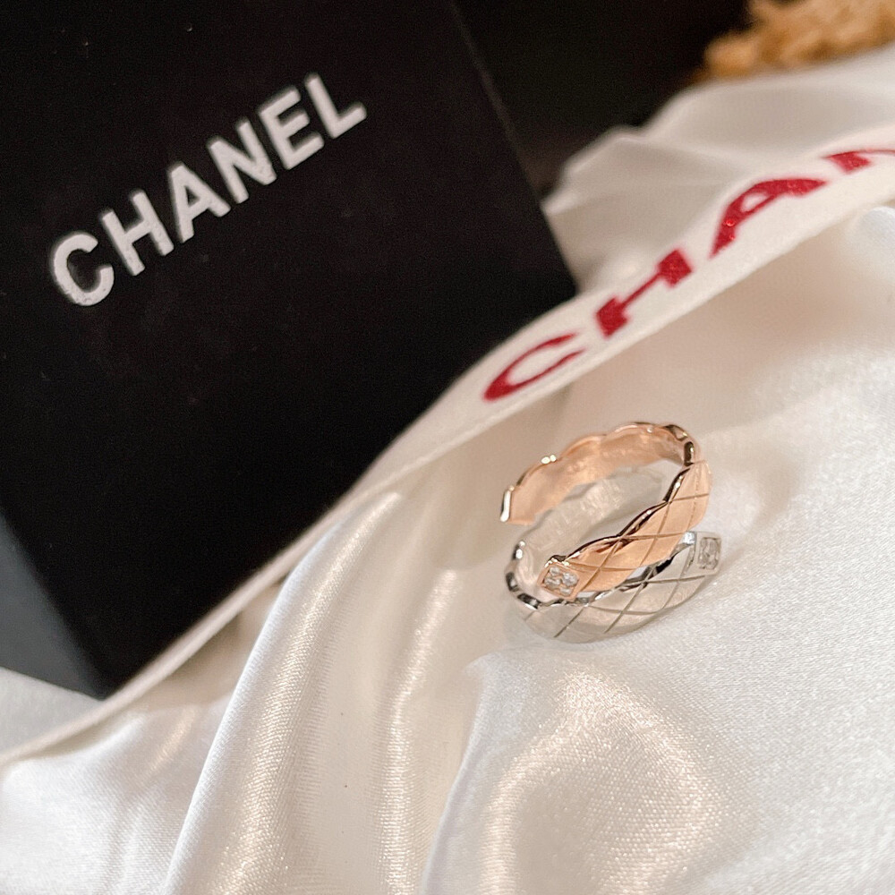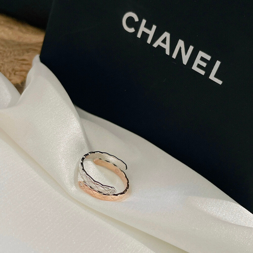 【Chanel VIP Membership】 Overseas VIP welfare gift chanel coco cruch ringchanel 2021 hot start ZP development, luxury big-name, double C home, recommendation, two-color ring【Material】 Imported S925 sterling silver, electroplating, color separation, thick 18k gold plating