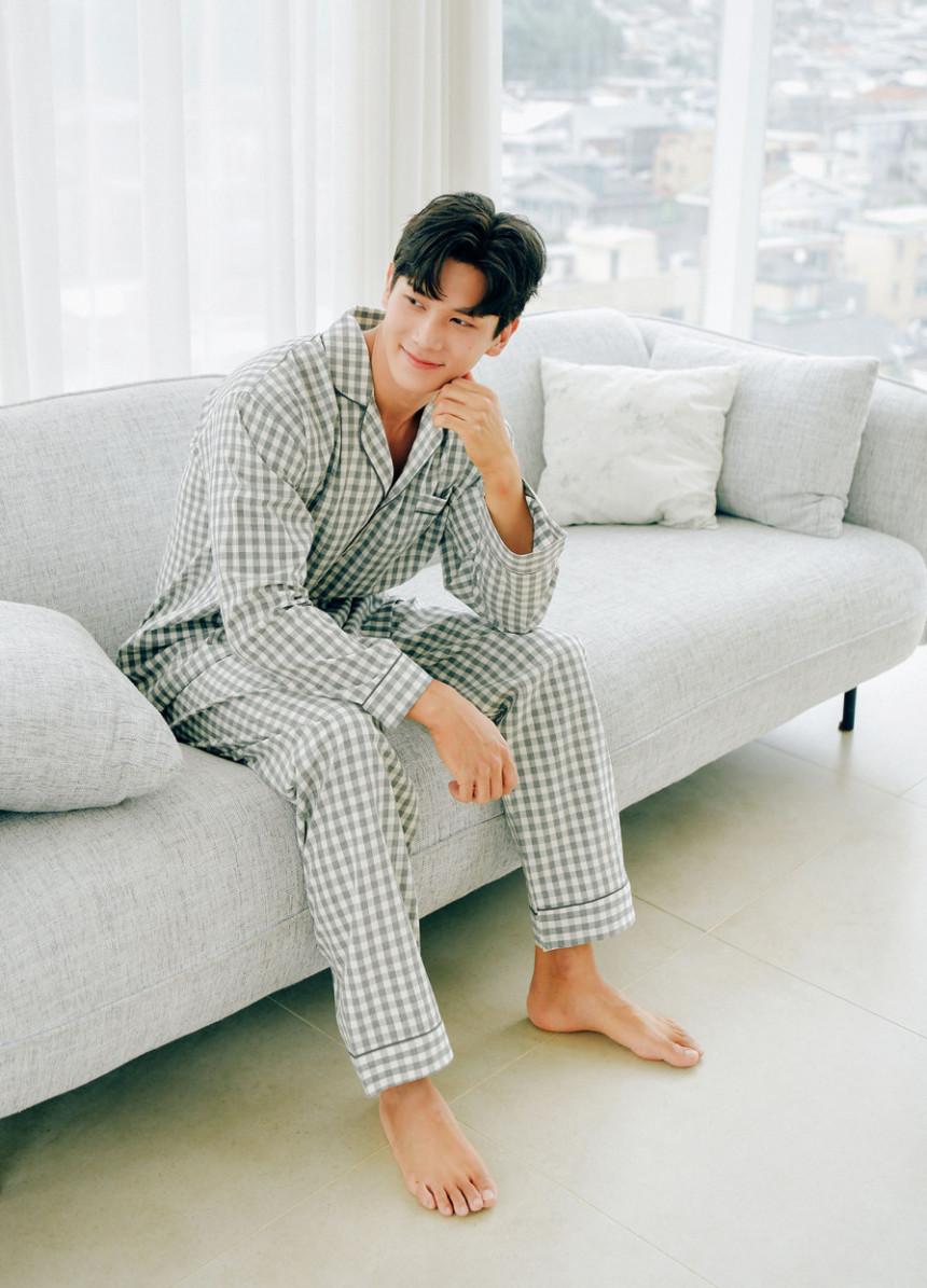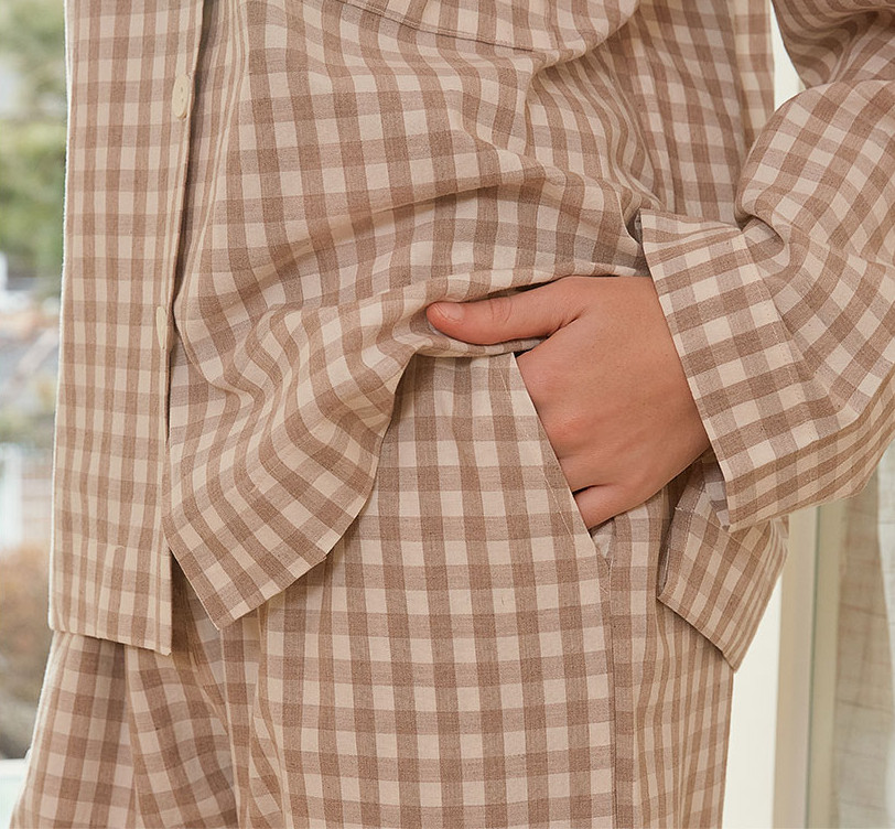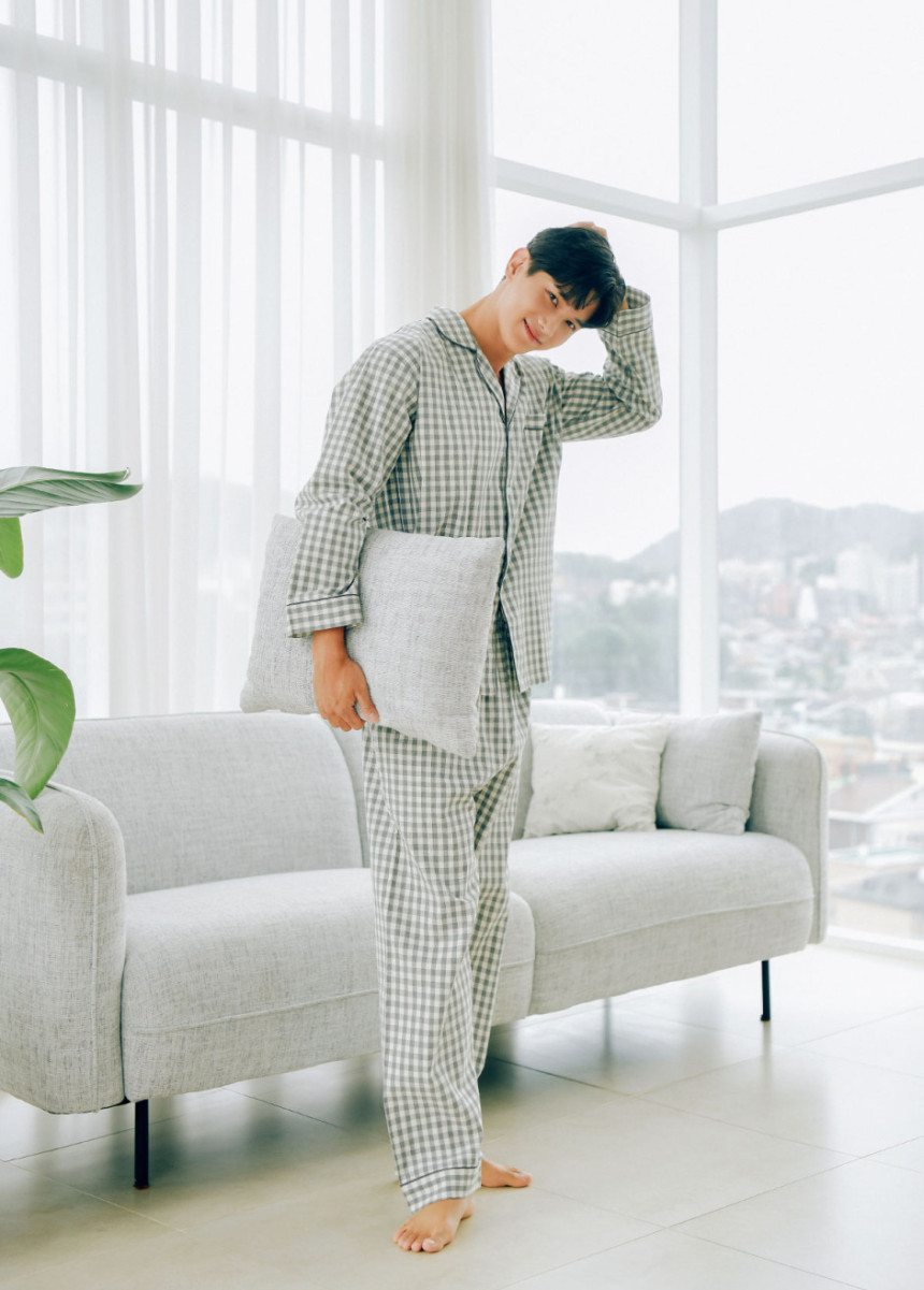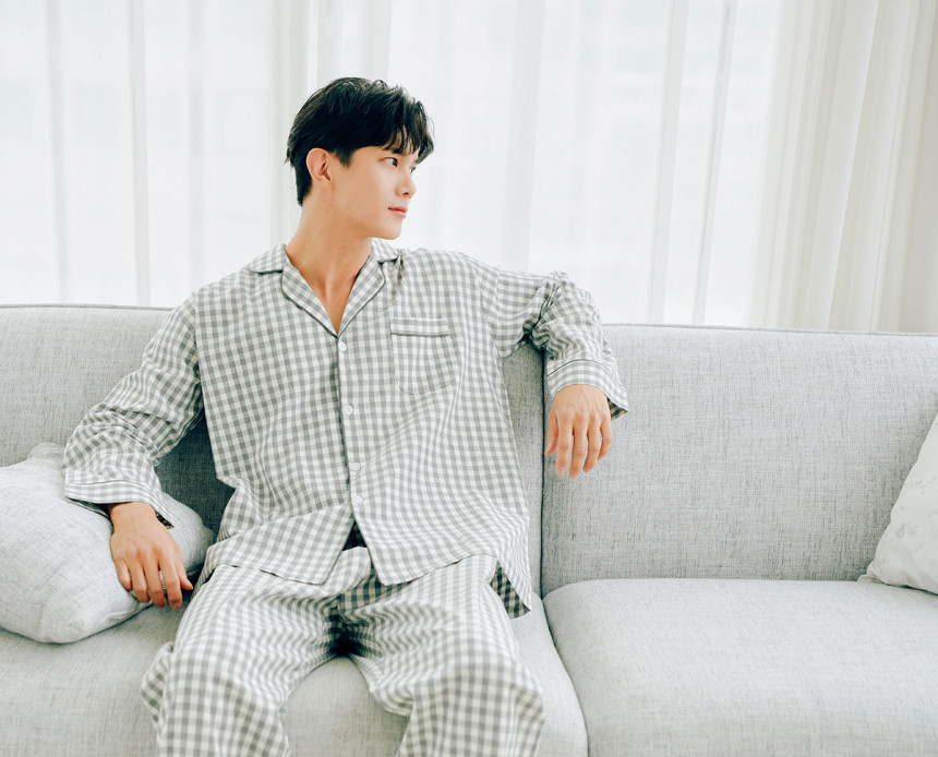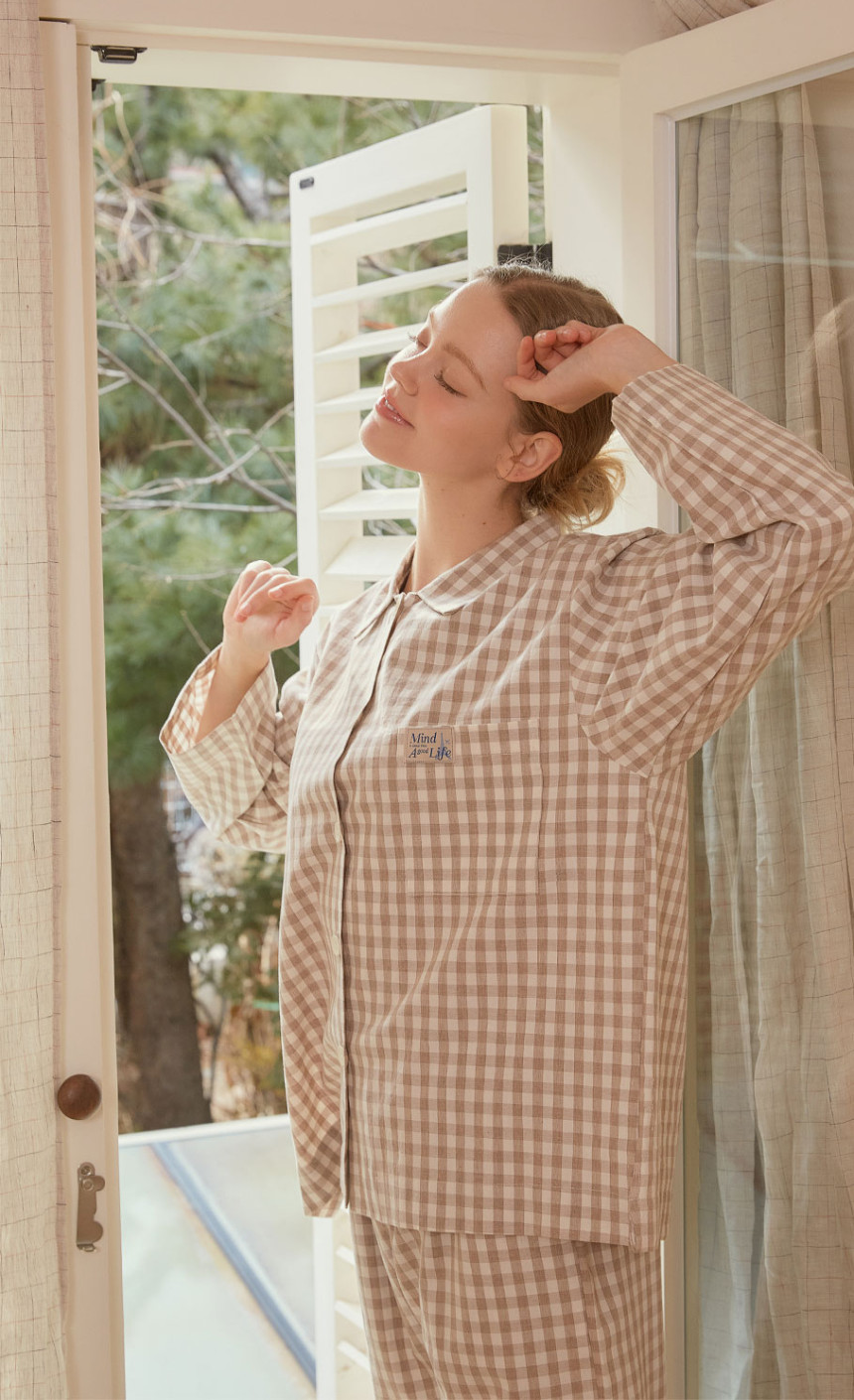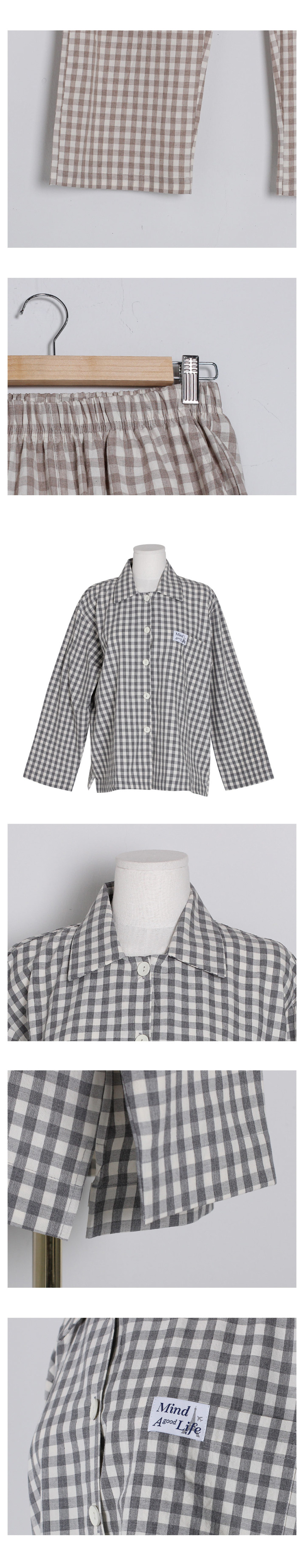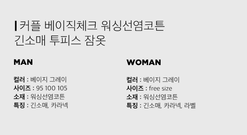 여성 남성 커플 베이직체크 카라 투피스 수면 잠옷