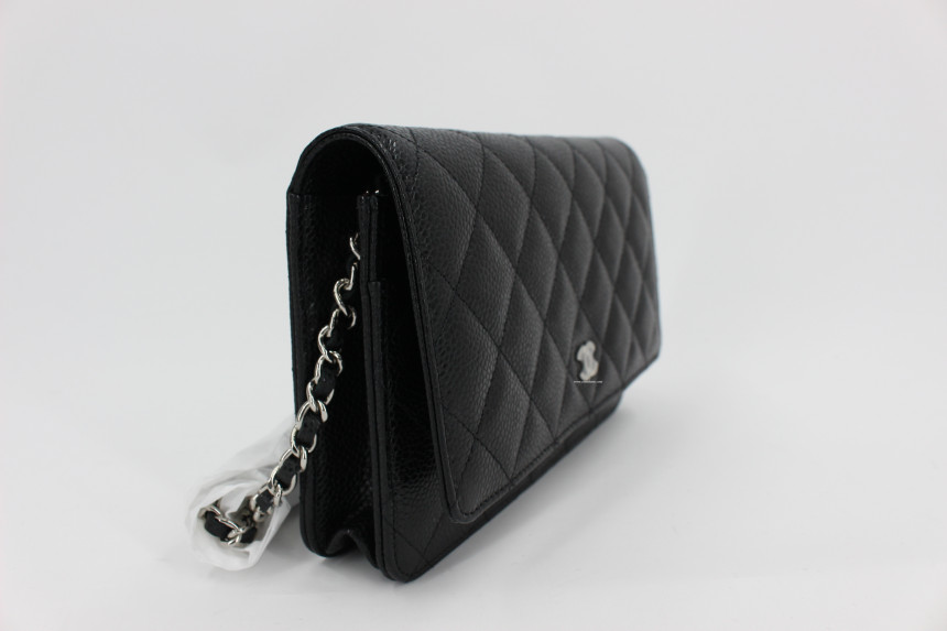 [국내배송] 샤넬 클래식 woc 은장 CHANEL classic wallet on chain grained calfskin black