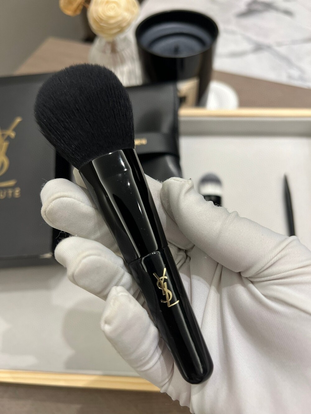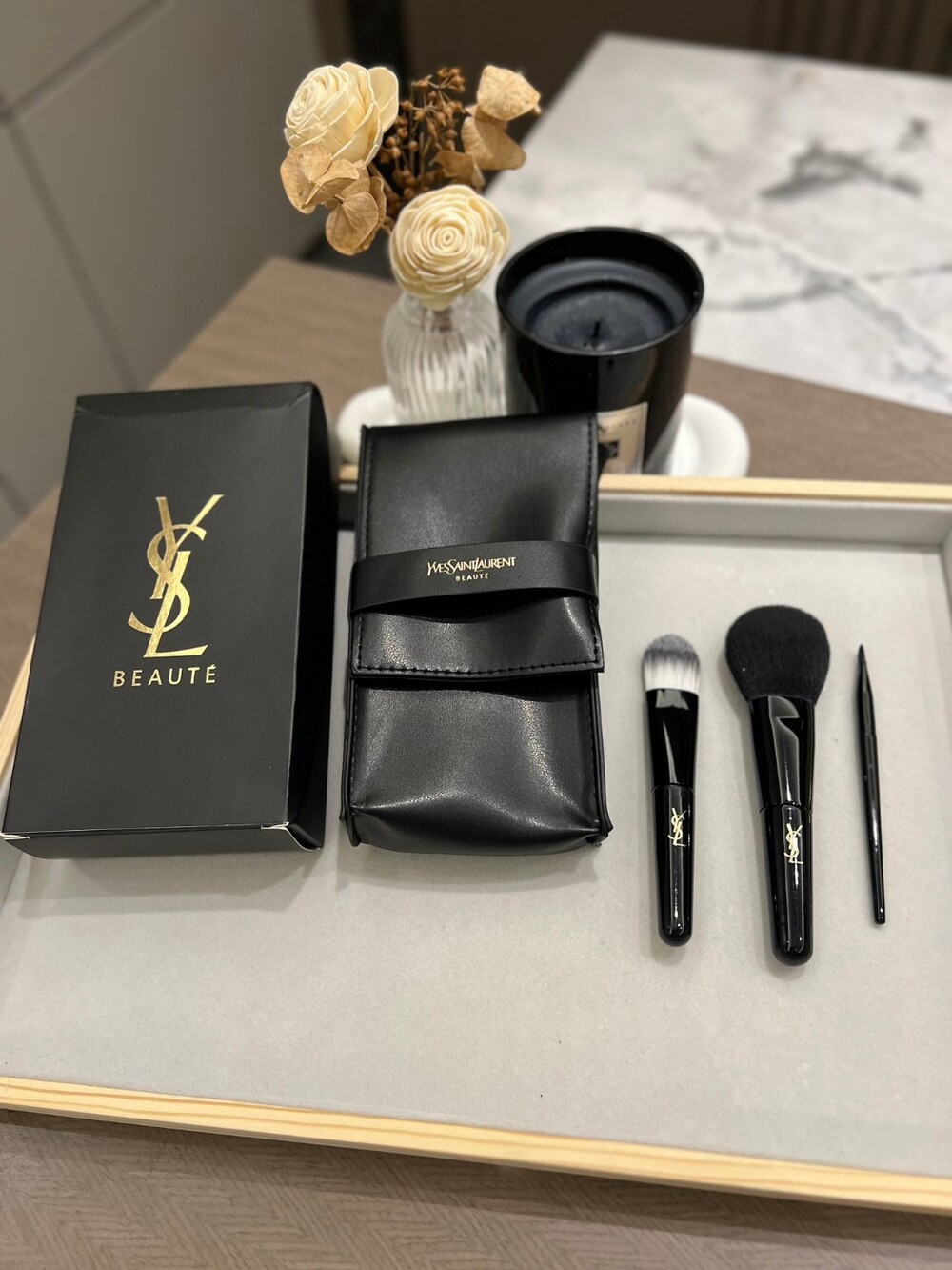 Includes: 3 makeup brushes + branded YSL case
