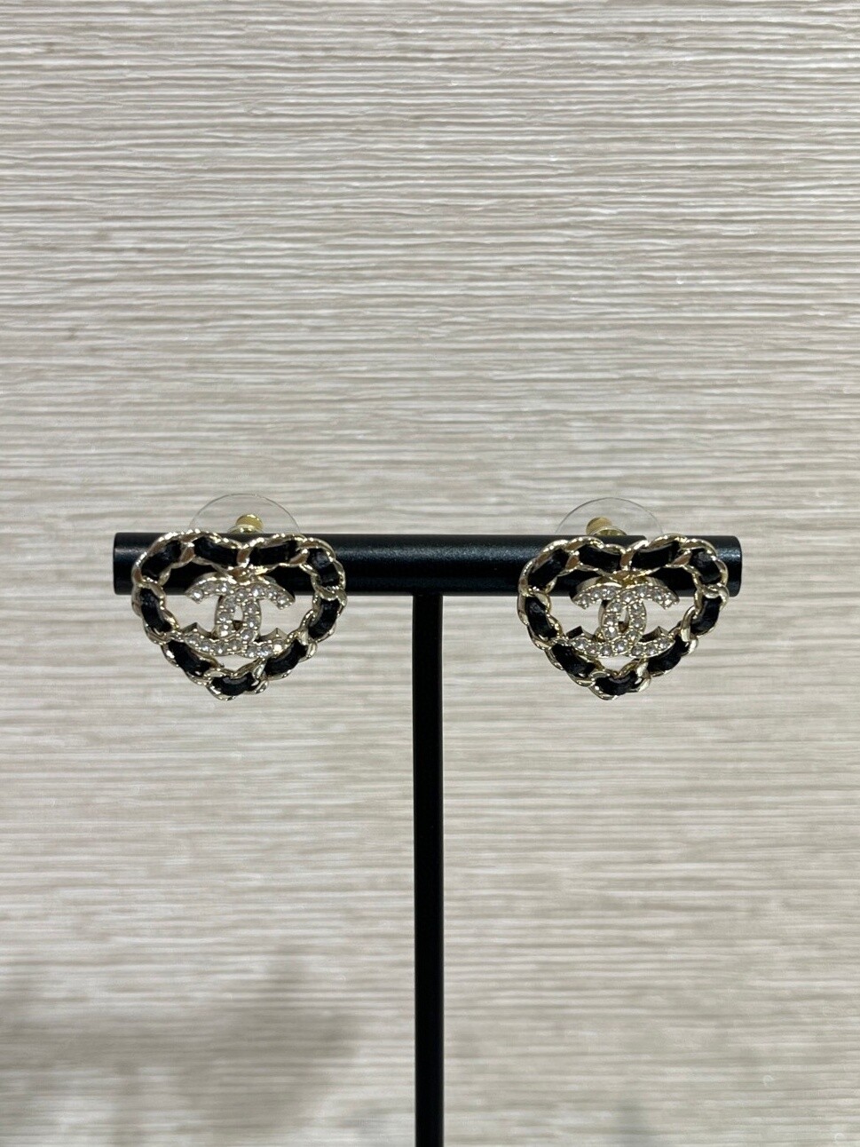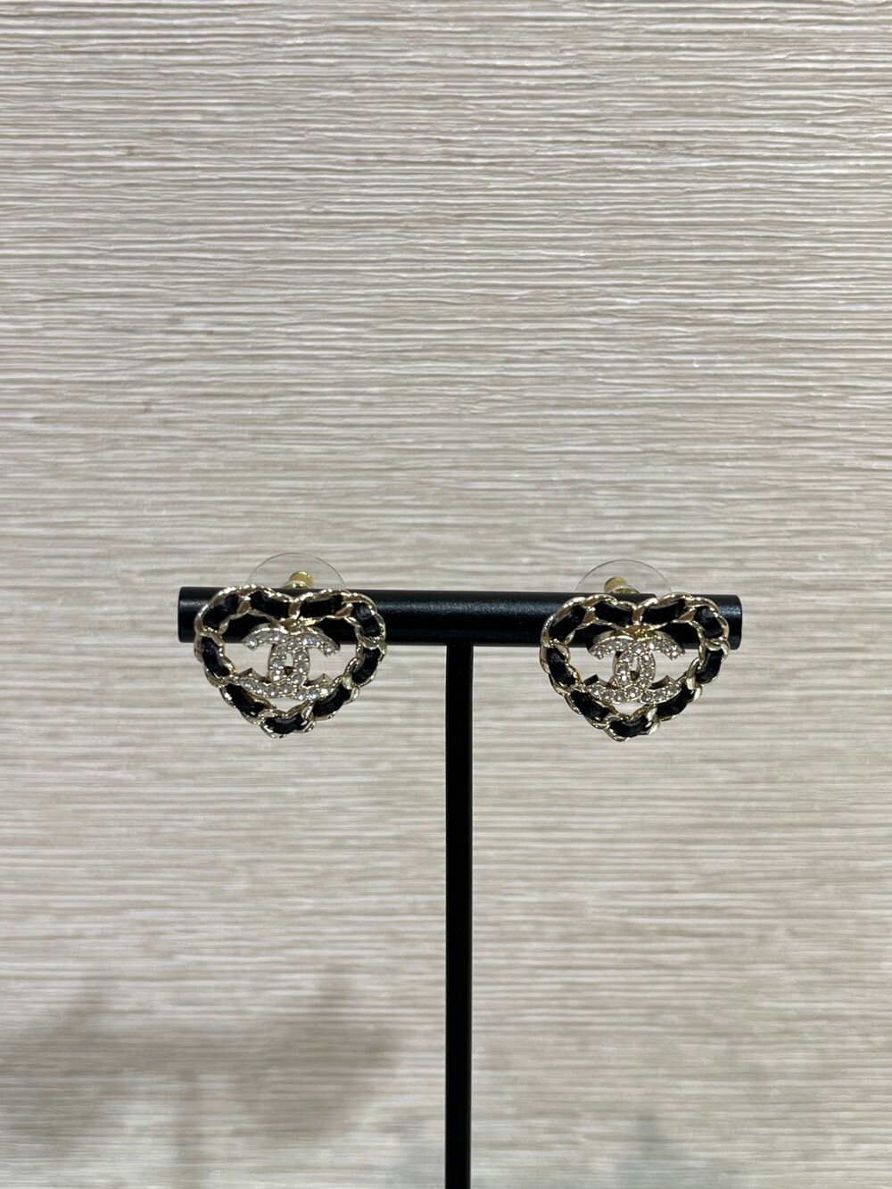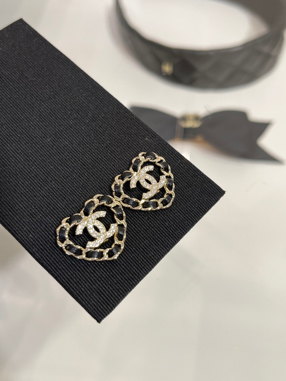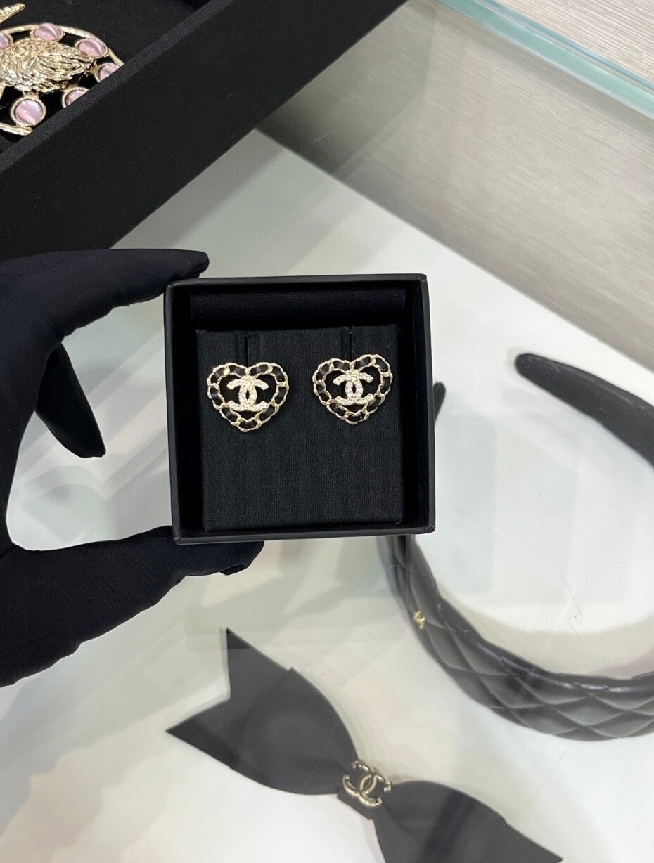 25B 레더 체인 CC 하트 이어링은 브랜드를 상징하는