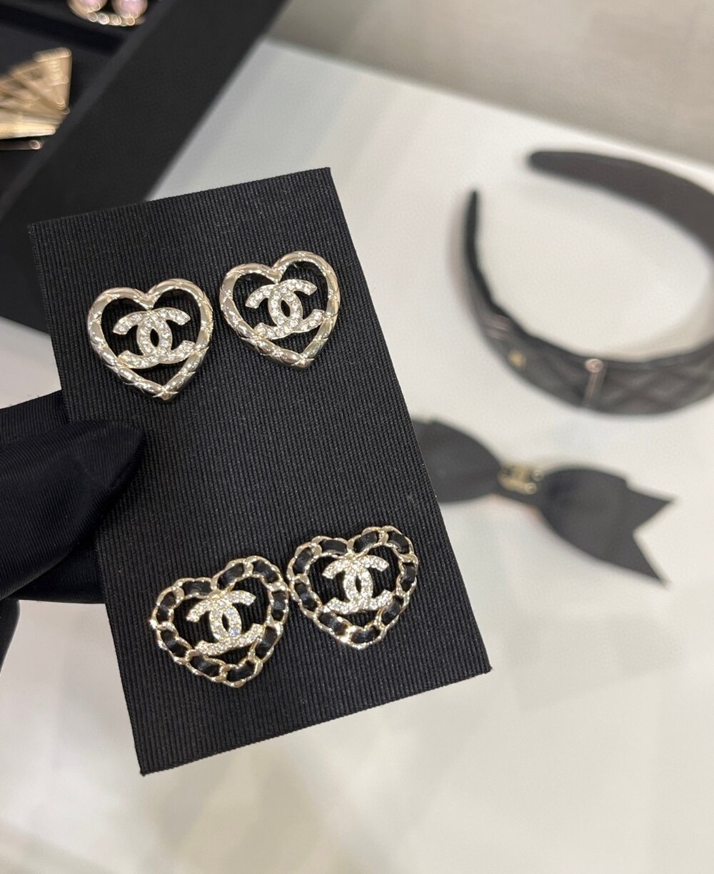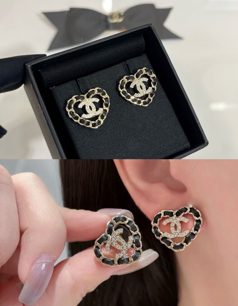 - 크리스탈 세팅 CC 로고- 입체적인 오픈워크 하트 디자인