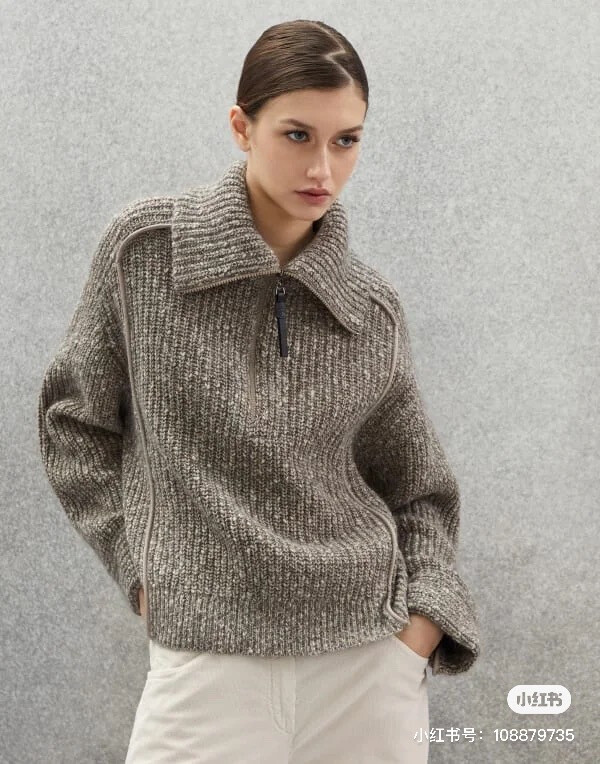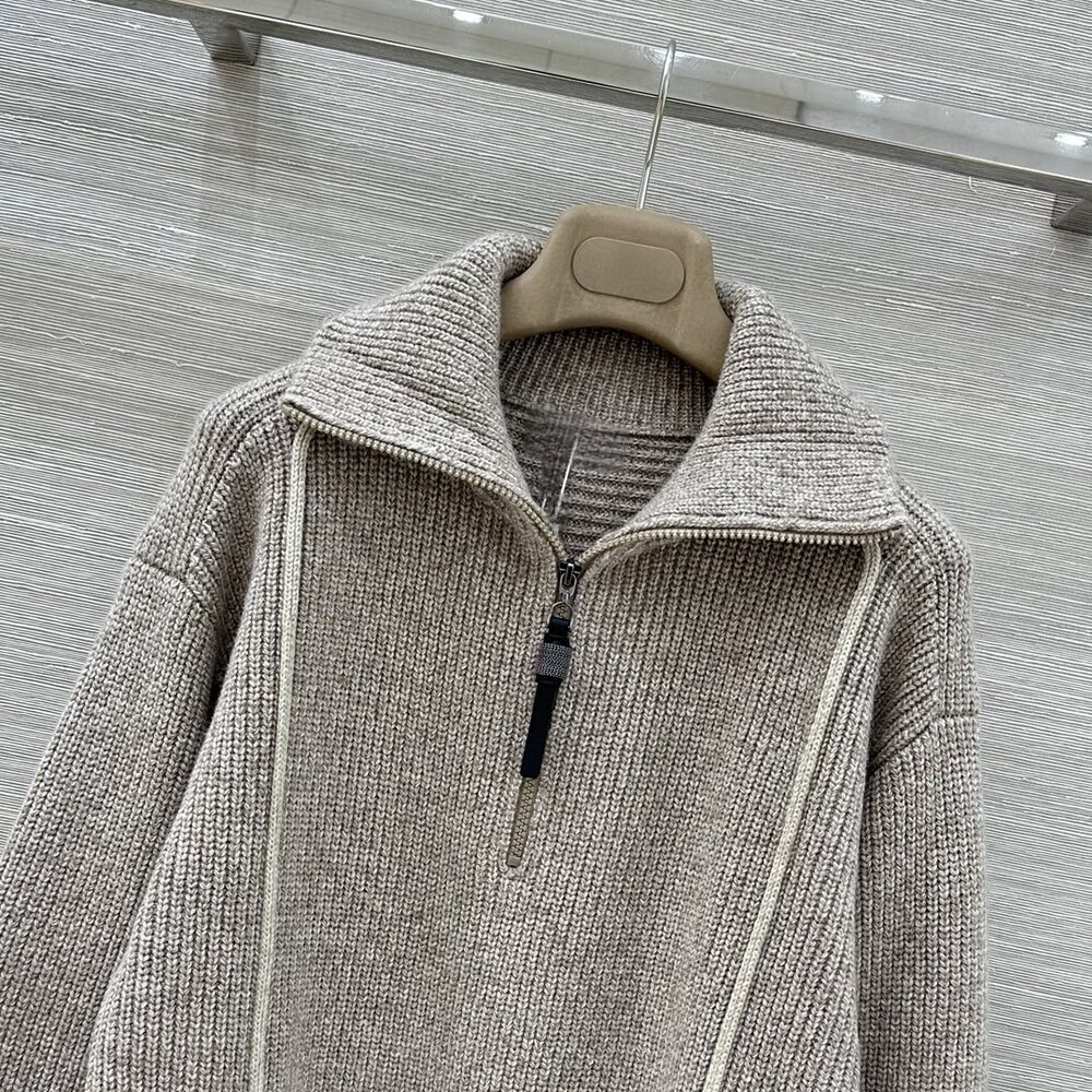 [수입] Italian Tweed Zip Collar Knit Sweater