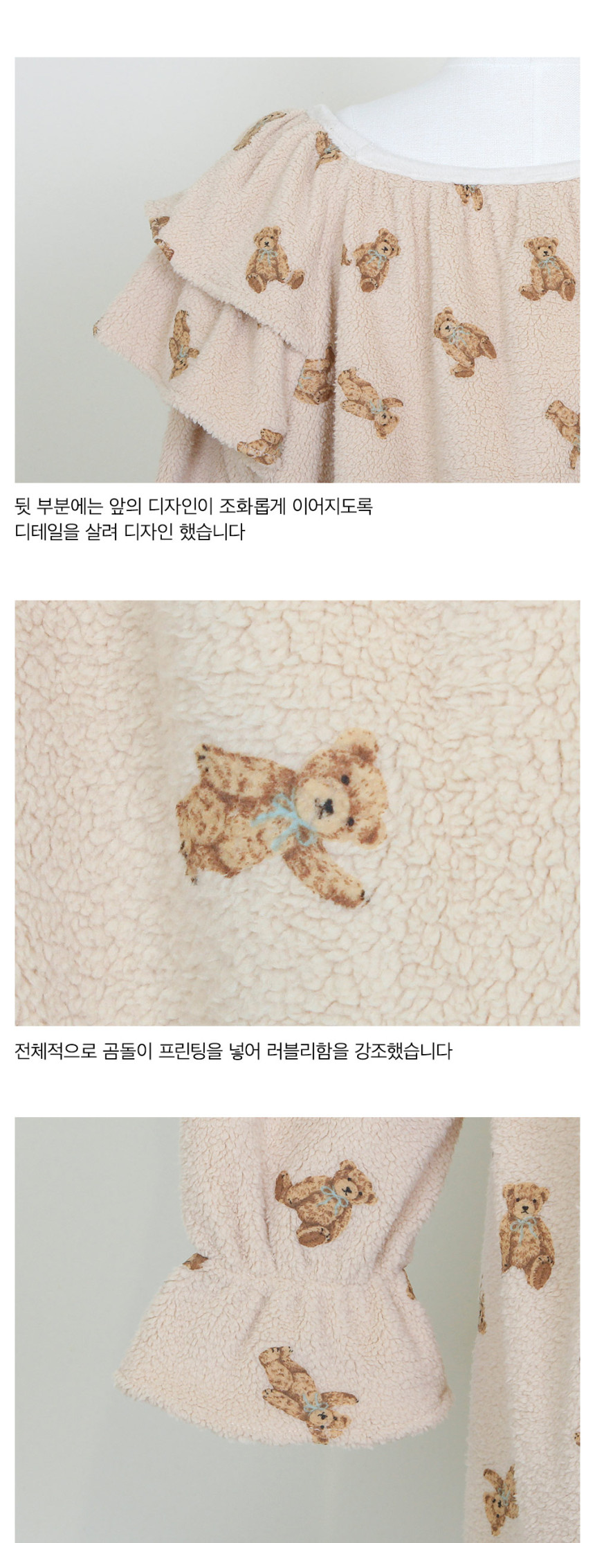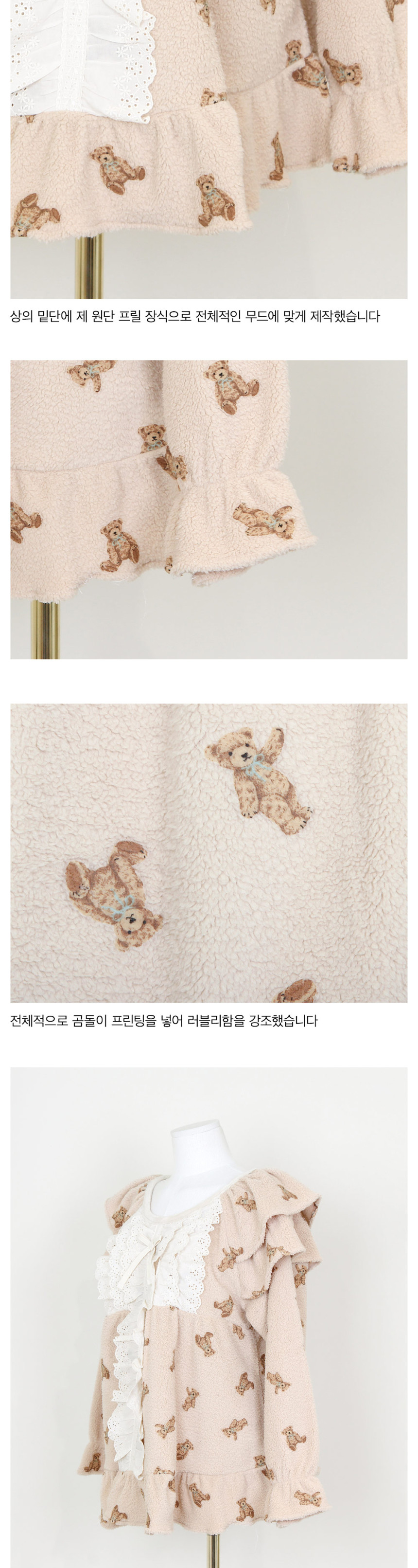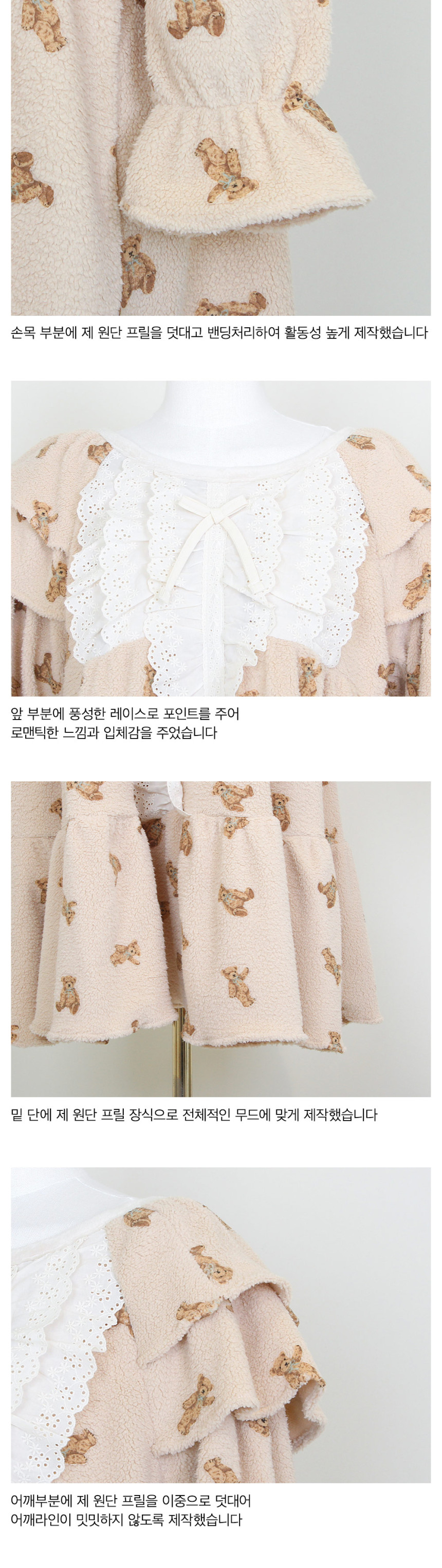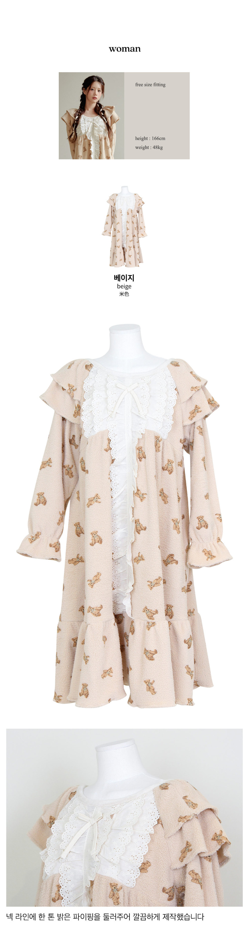 여성 남성 커플 리본양털베어 원피스 투피스 수면 잠옷