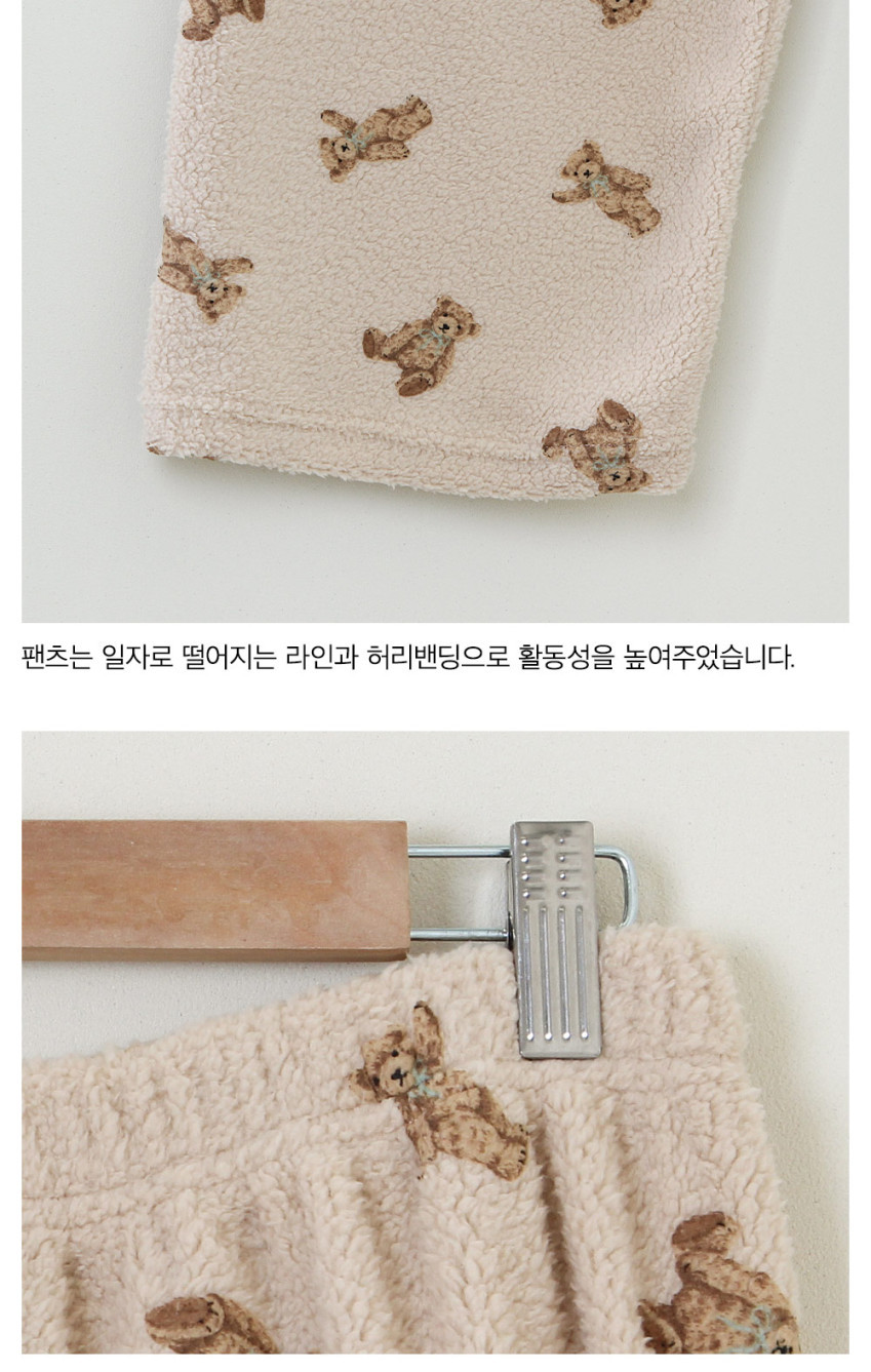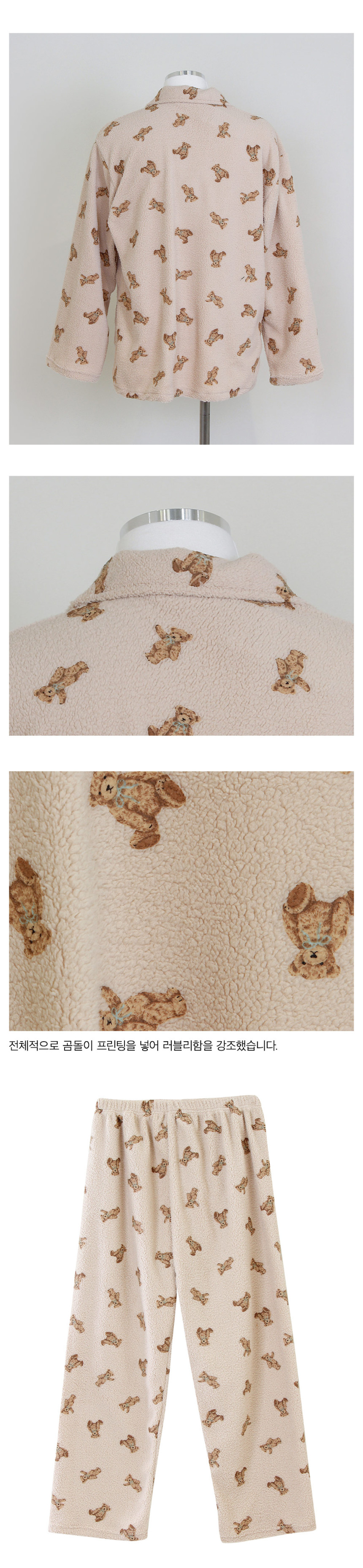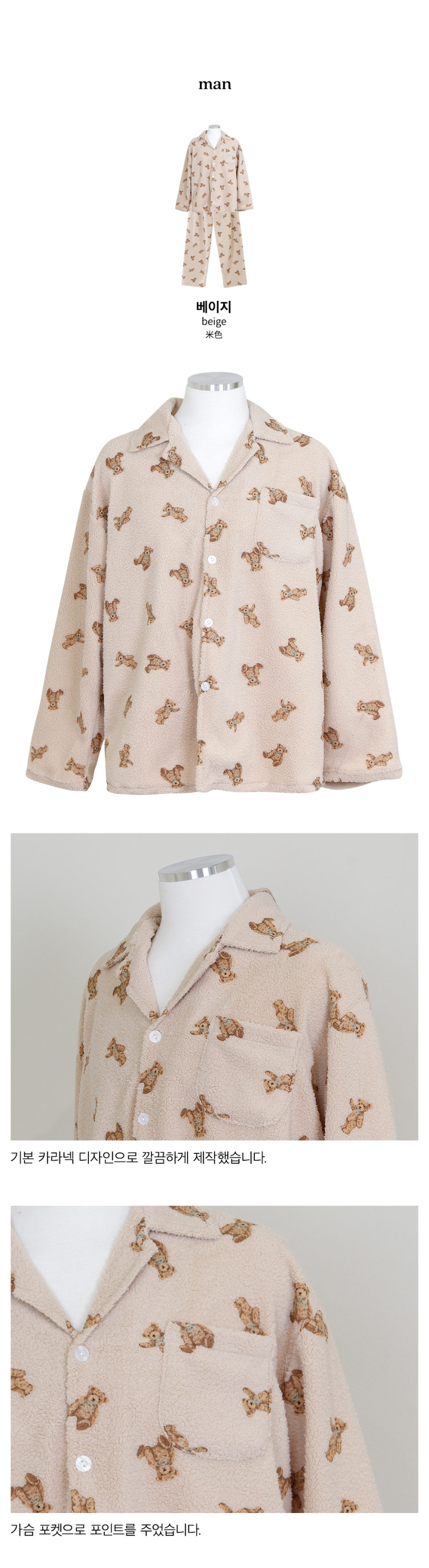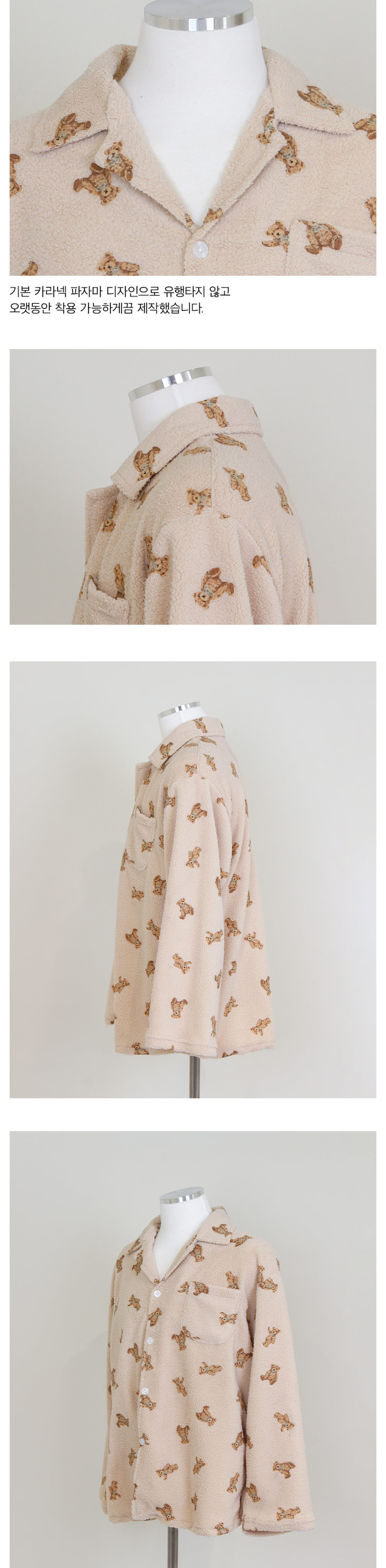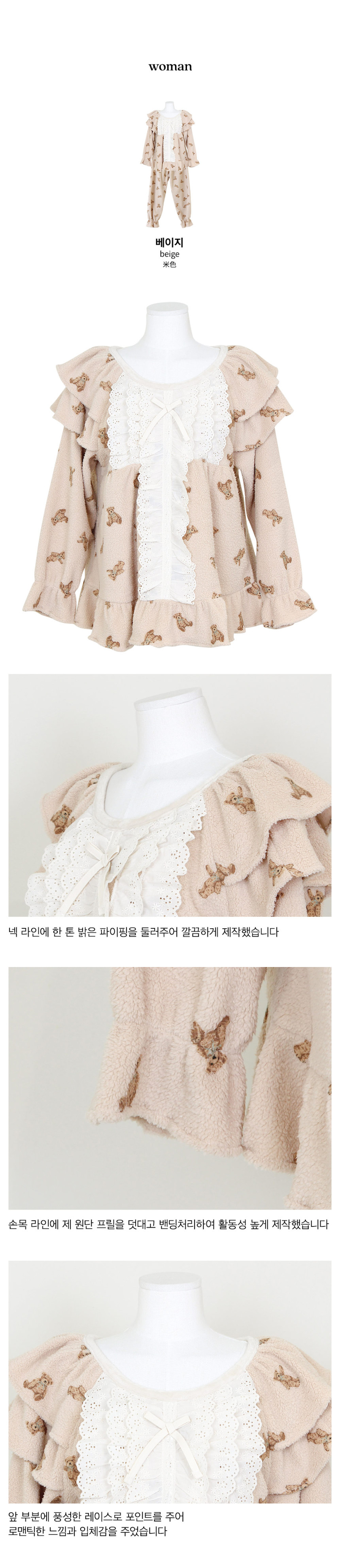 여성 남성 커플 리본양털베어 원피스 투피스 수면 잠옷
