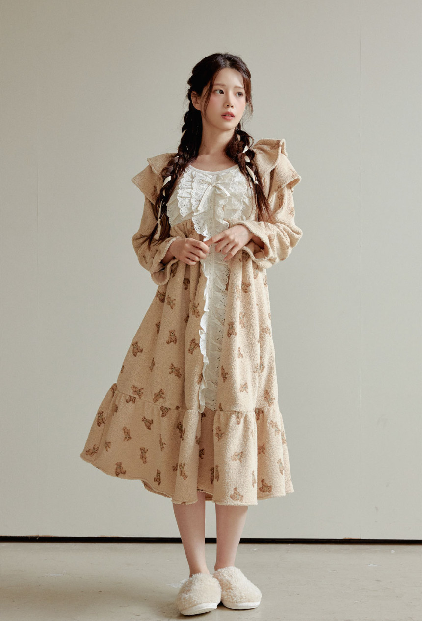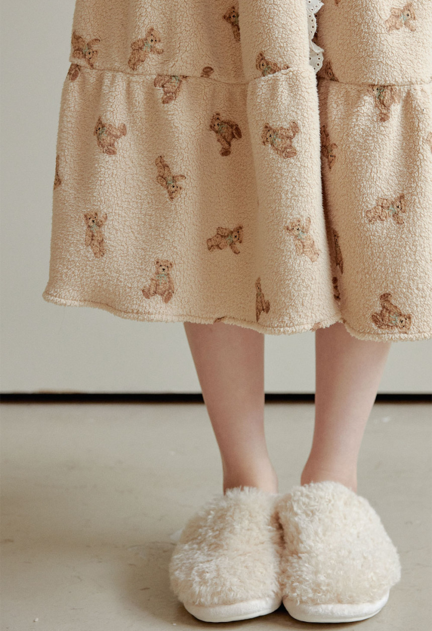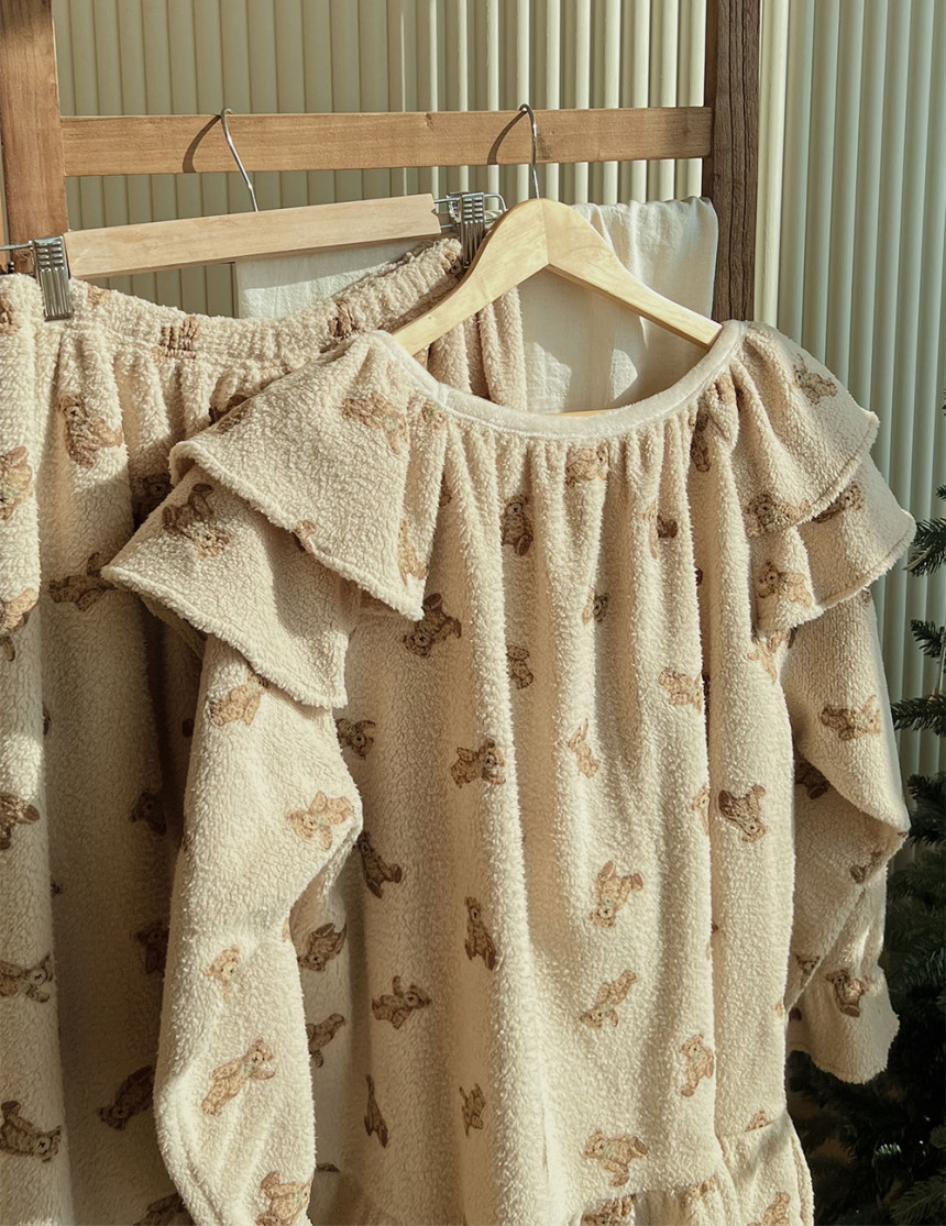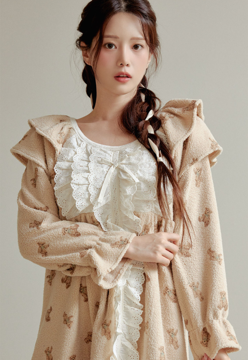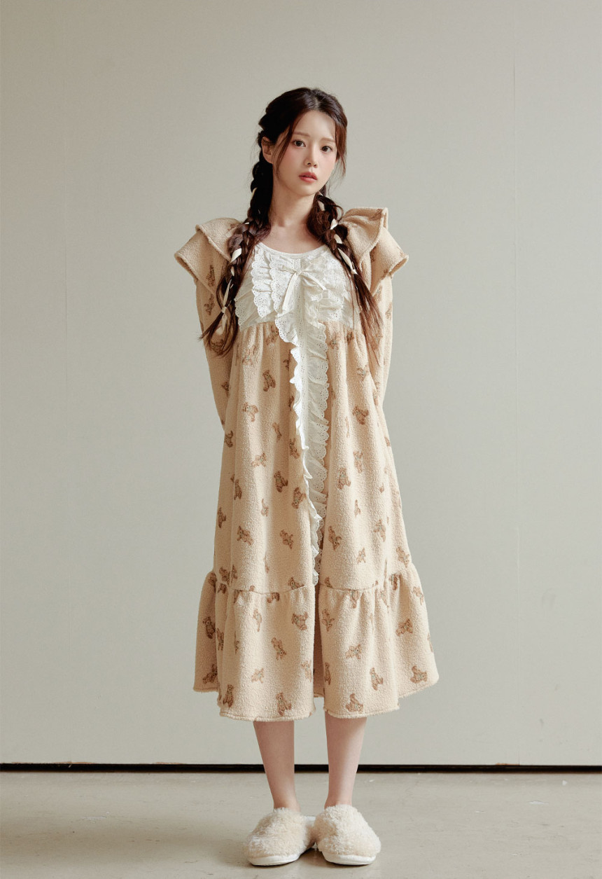 여성 남성 커플 리본양털베어 원피스 투피스 수면 잠옷