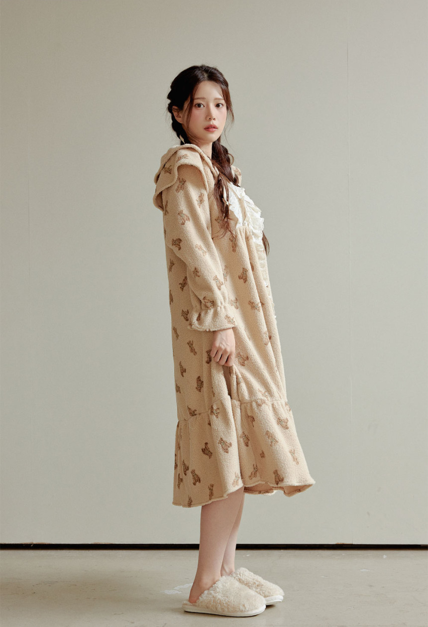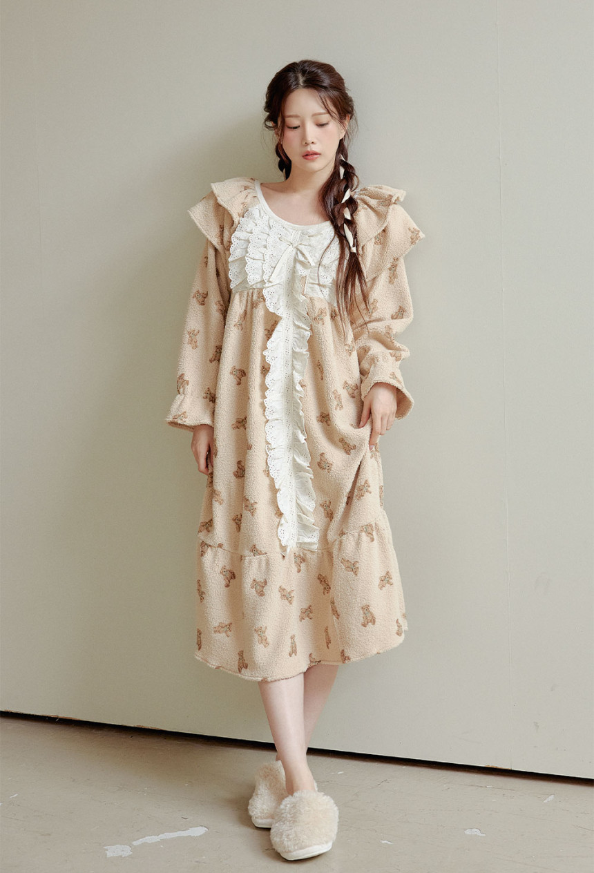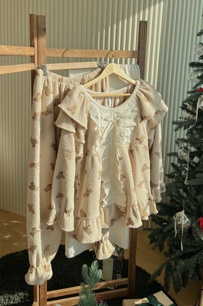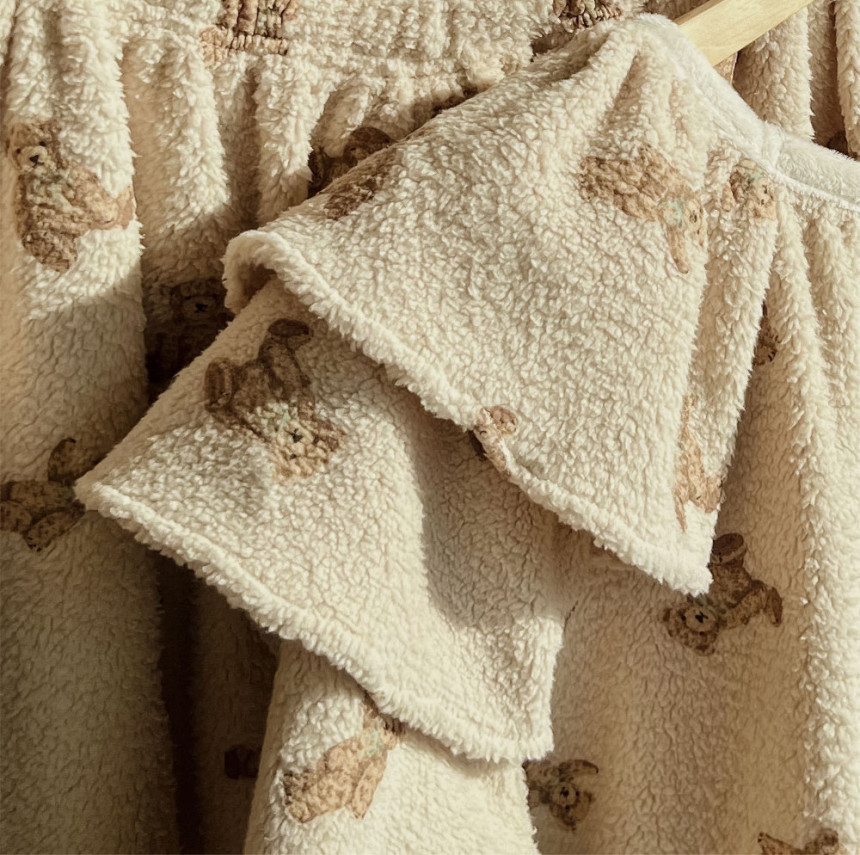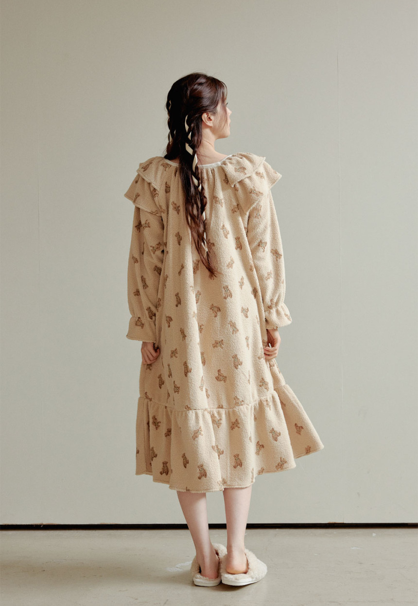 여성 남성 커플 리본양털베어 원피스 투피스 수면 잠옷