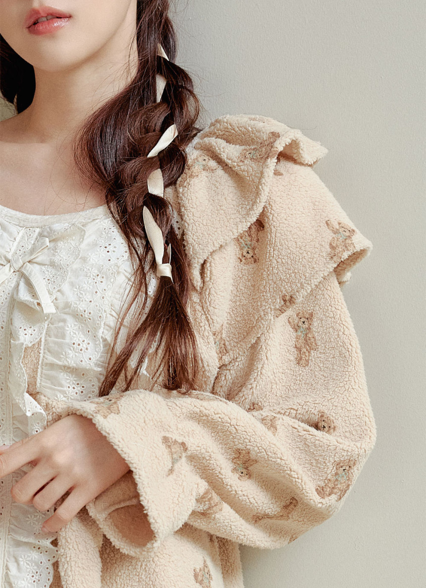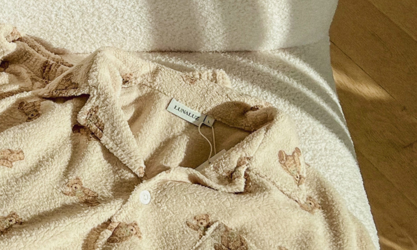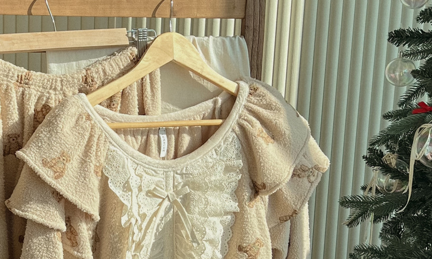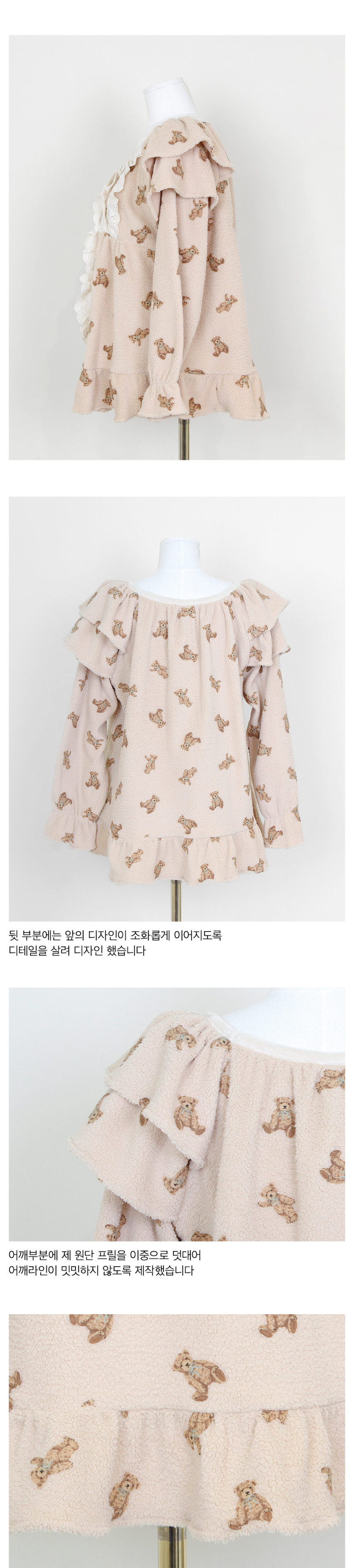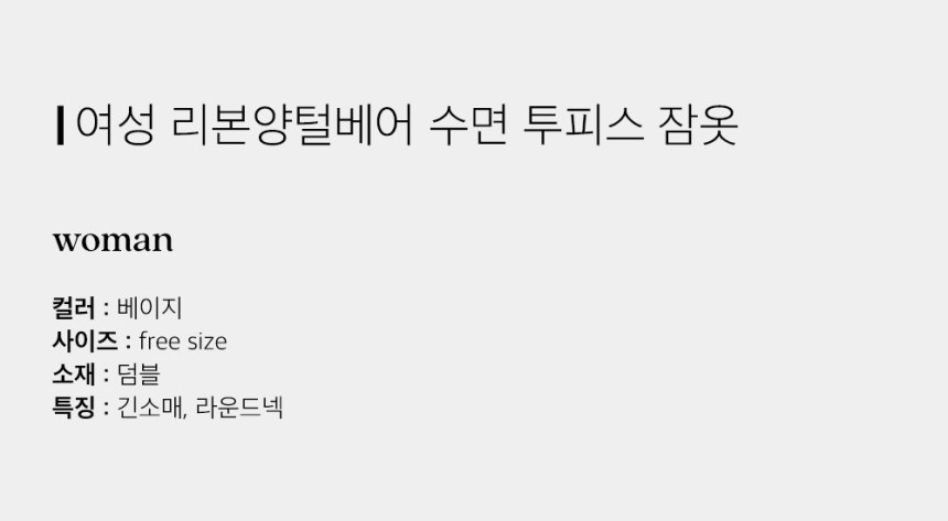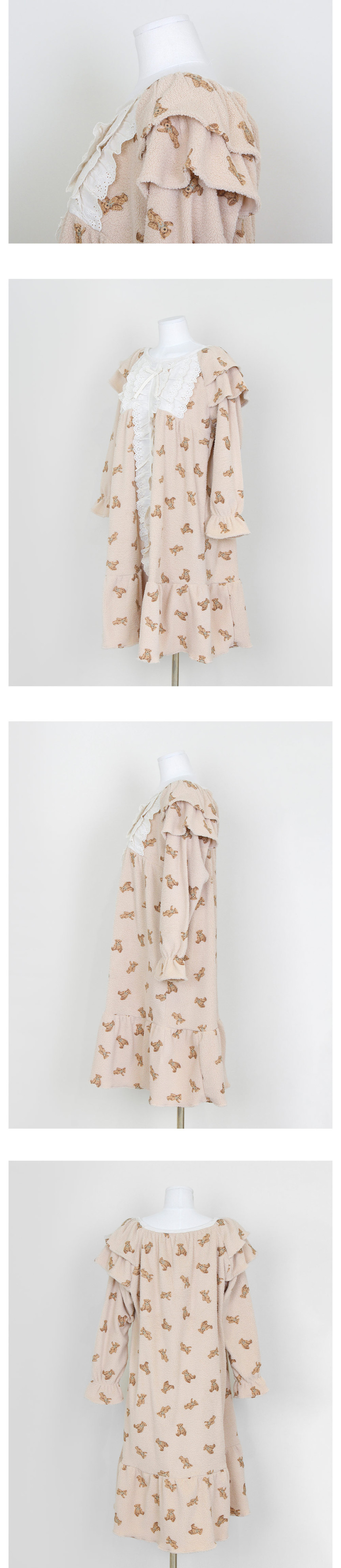 여성 남성 커플 리본양털베어 원피스 투피스 수면 잠옷