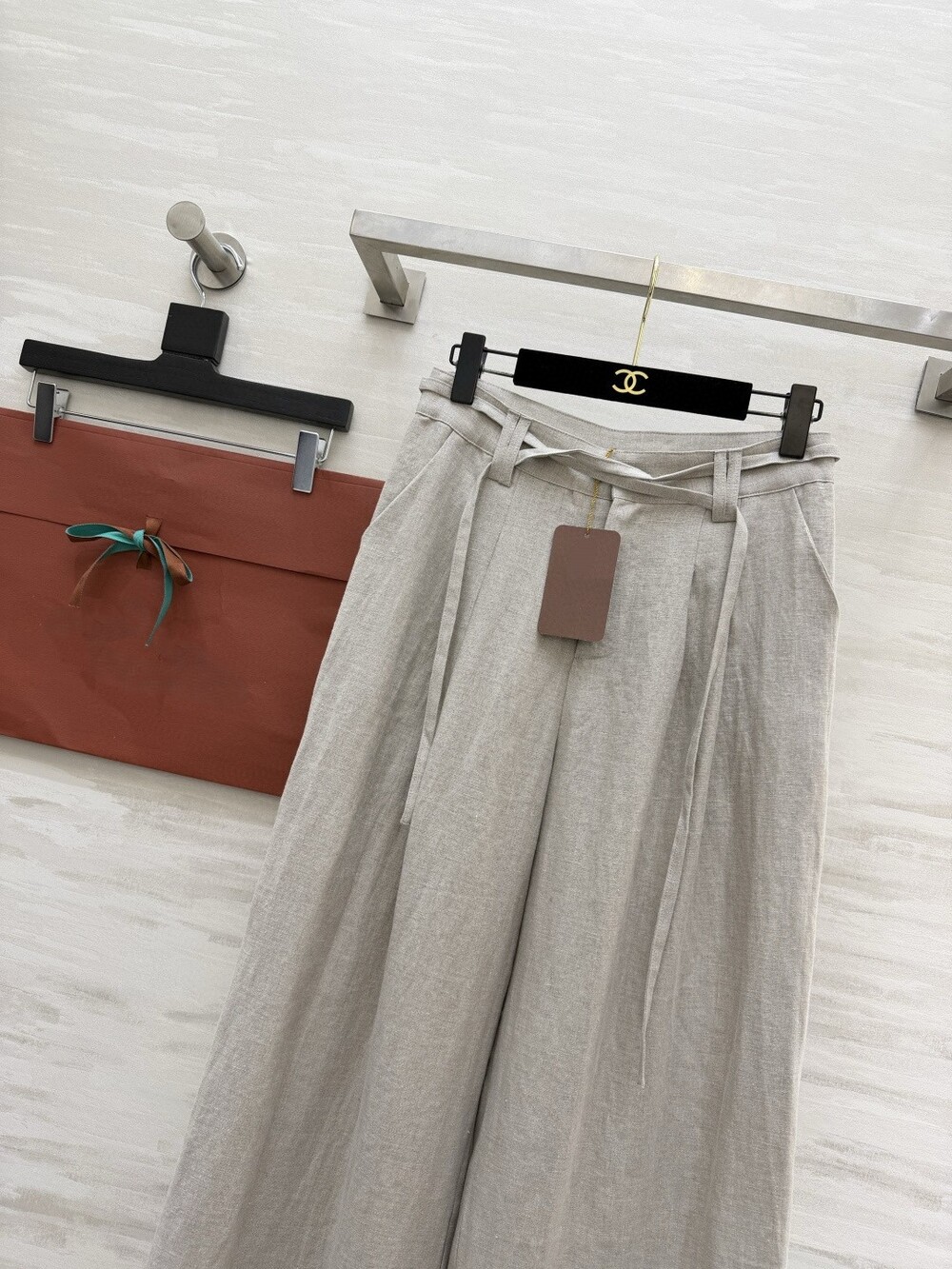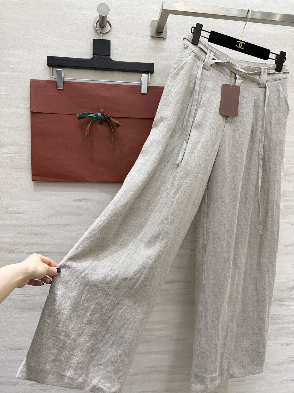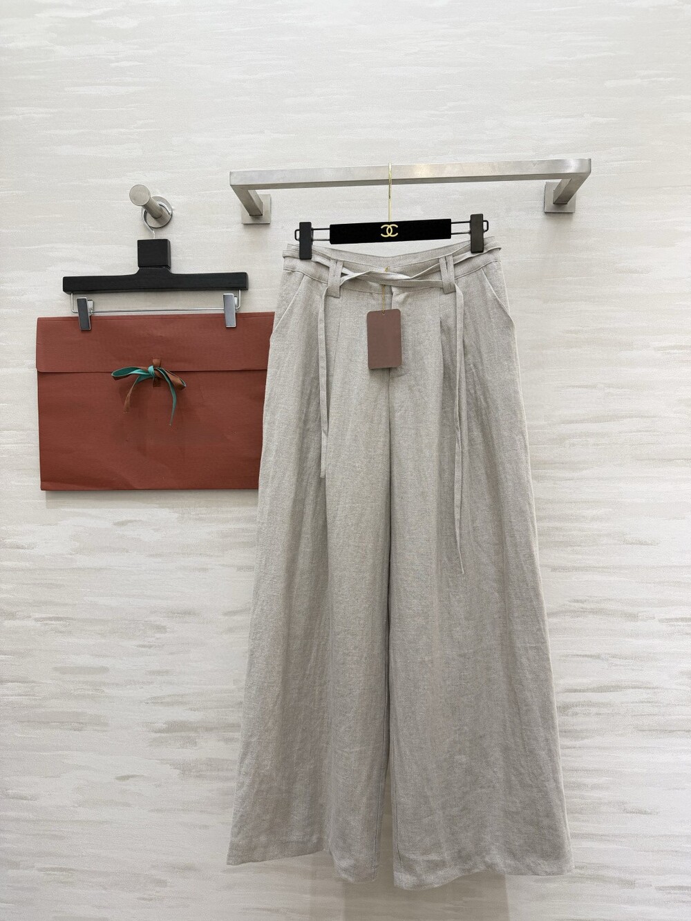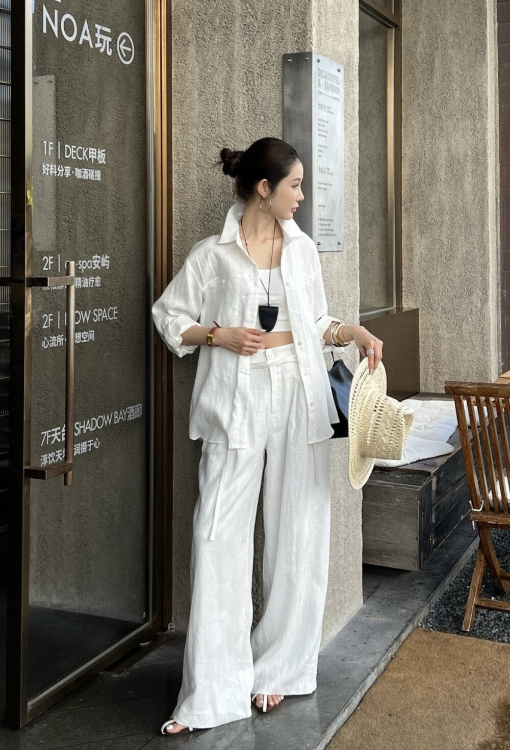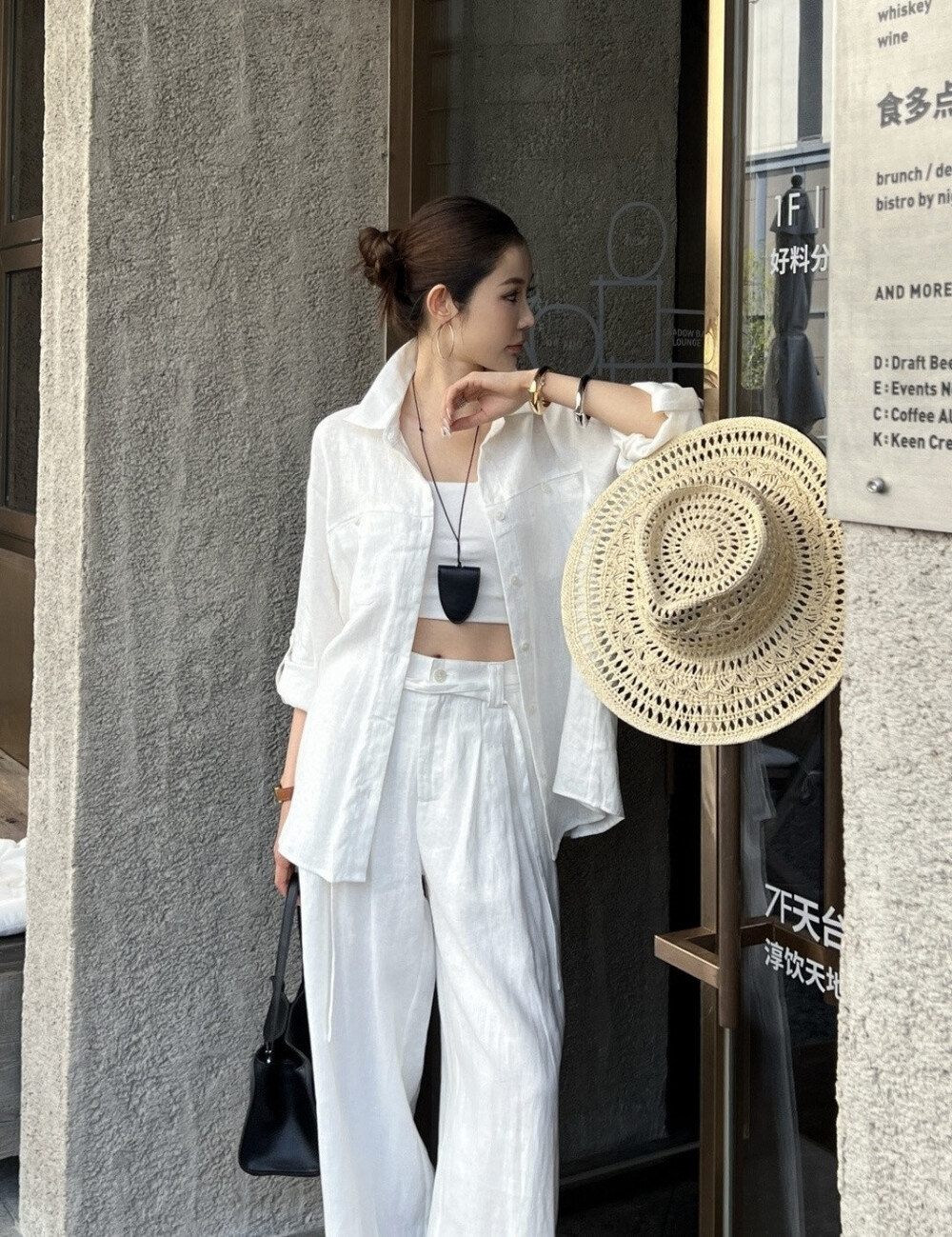 은은한 린넨 텍스처가 느껴지는 셔츠와 와이드 팬츠 셋업입니다.