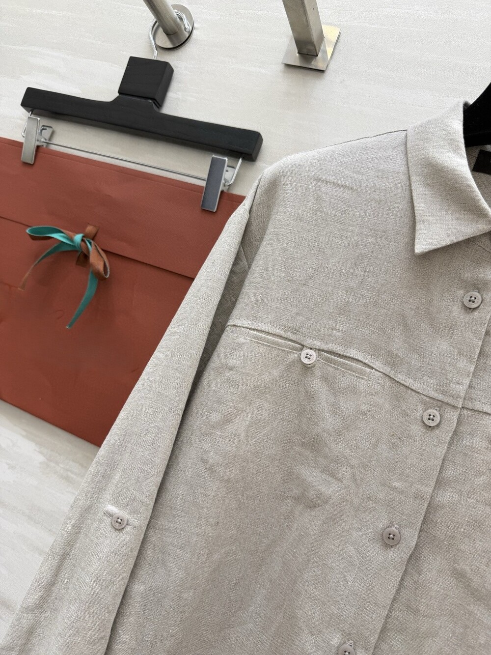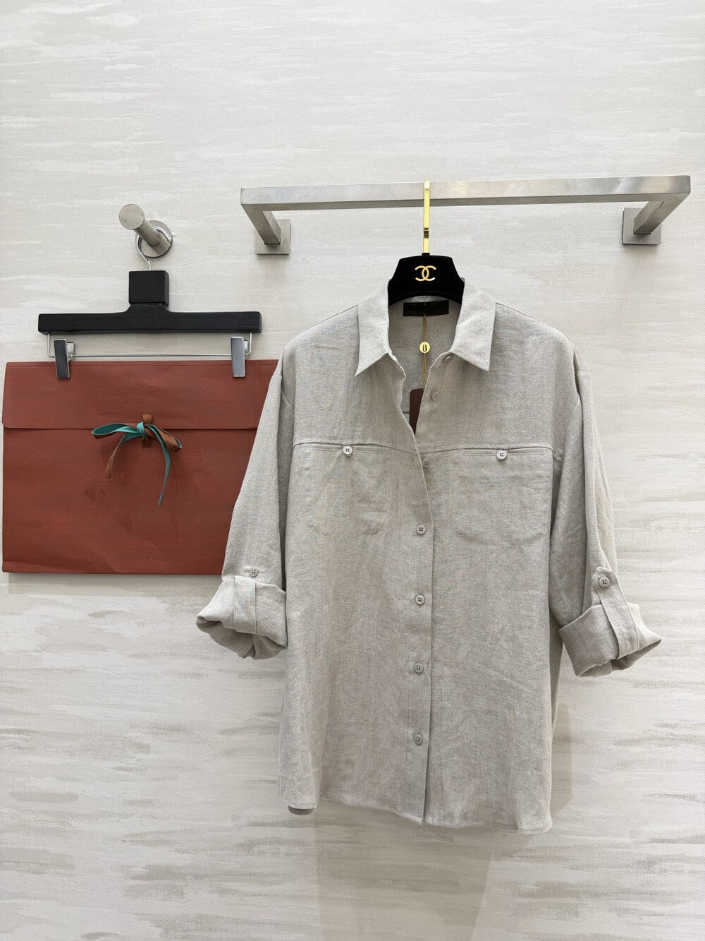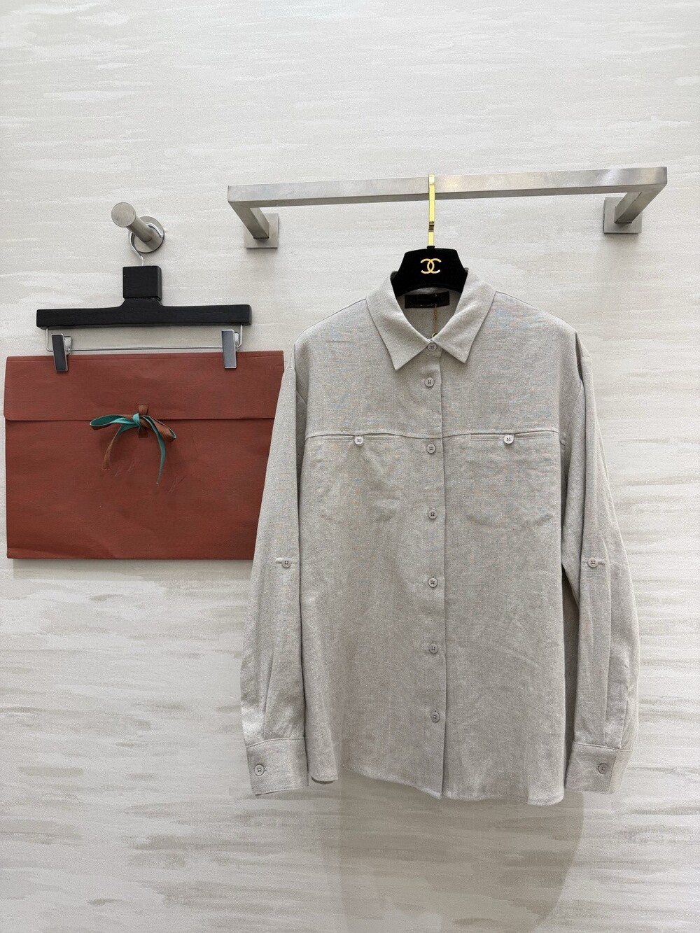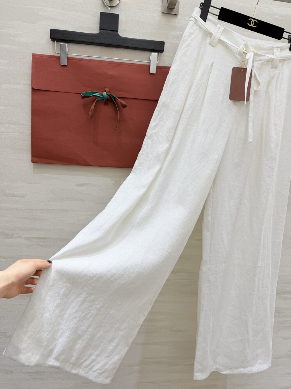 은은한 린넨 텍스처가 느껴지는 셔츠와 와이드 팬츠 셋업입니다.