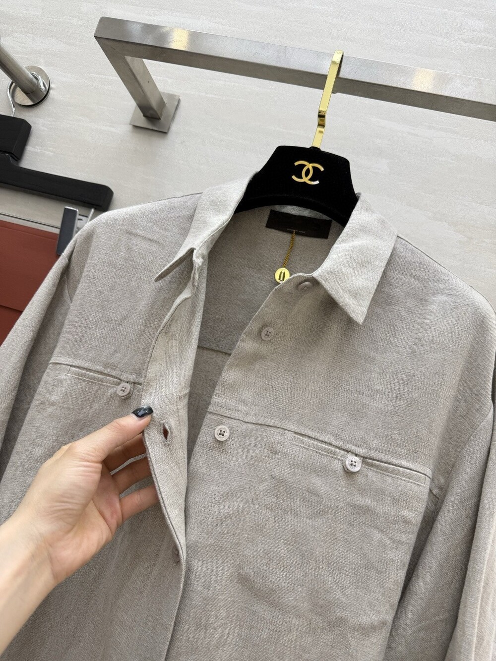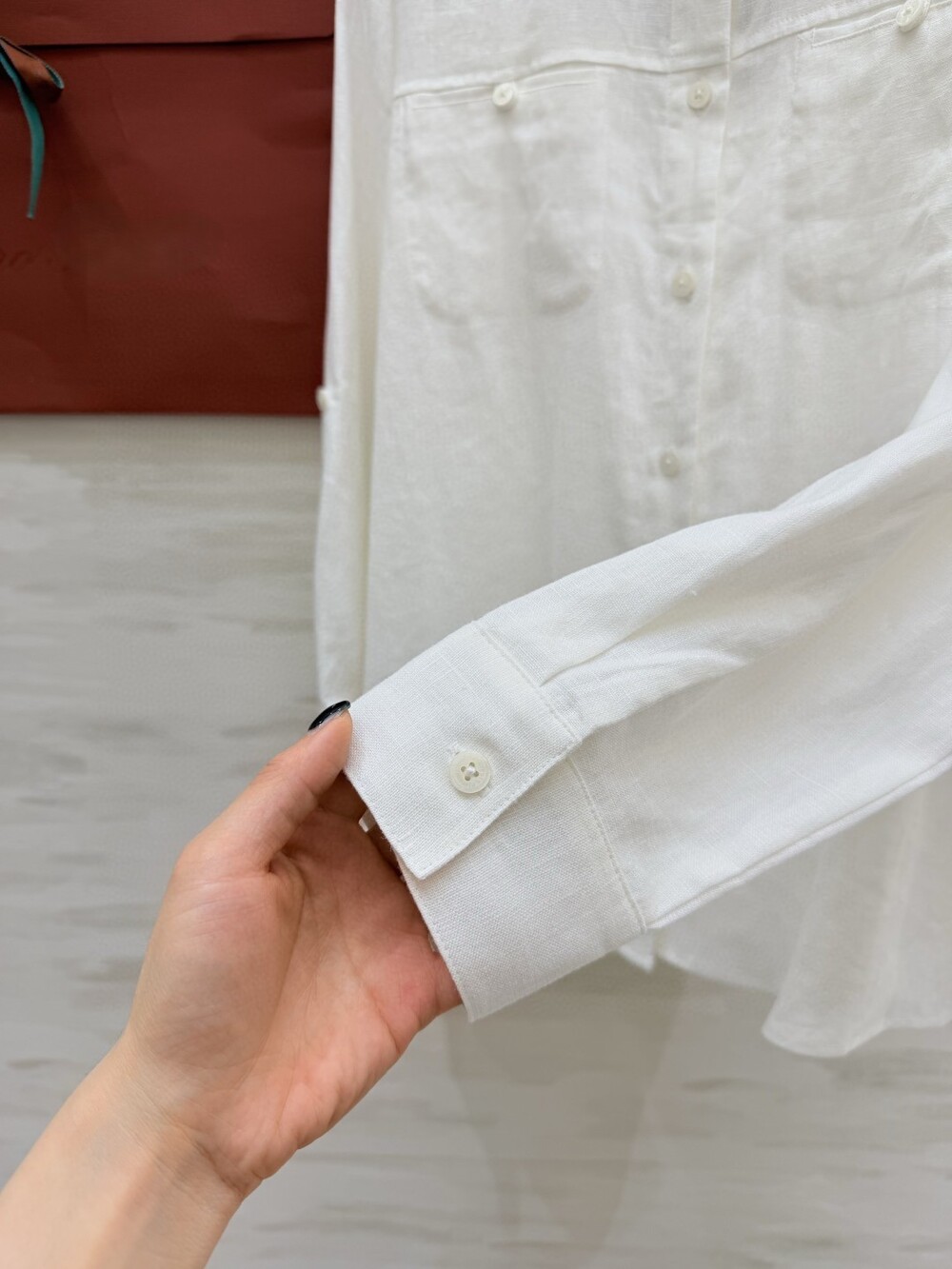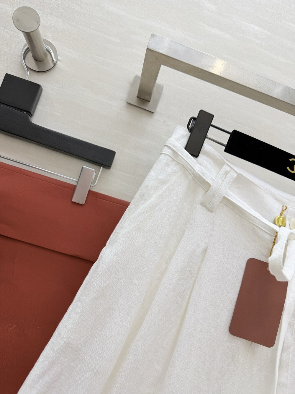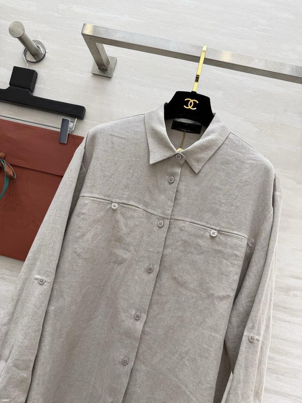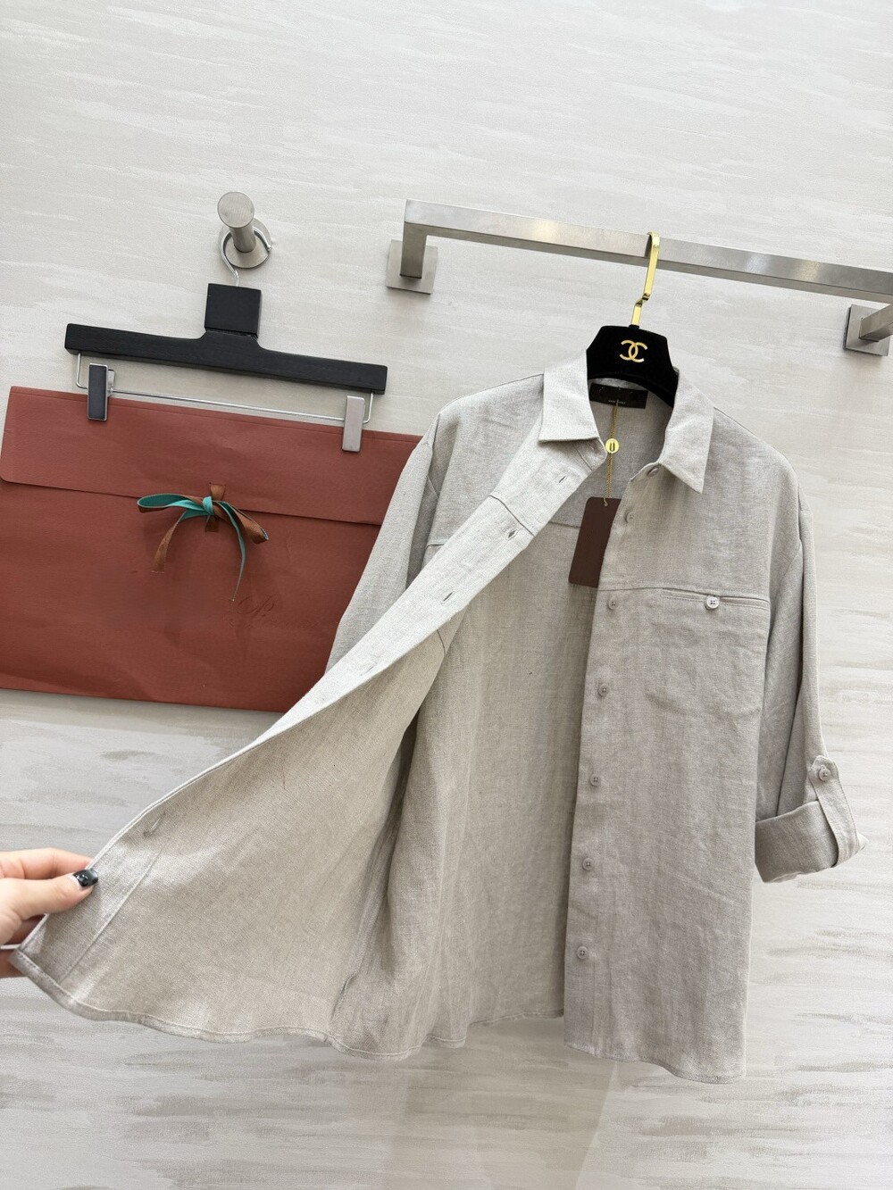 은은한 린넨 텍스처가 느껴지는 셔츠와 와이드 팬츠 셋업입니다.