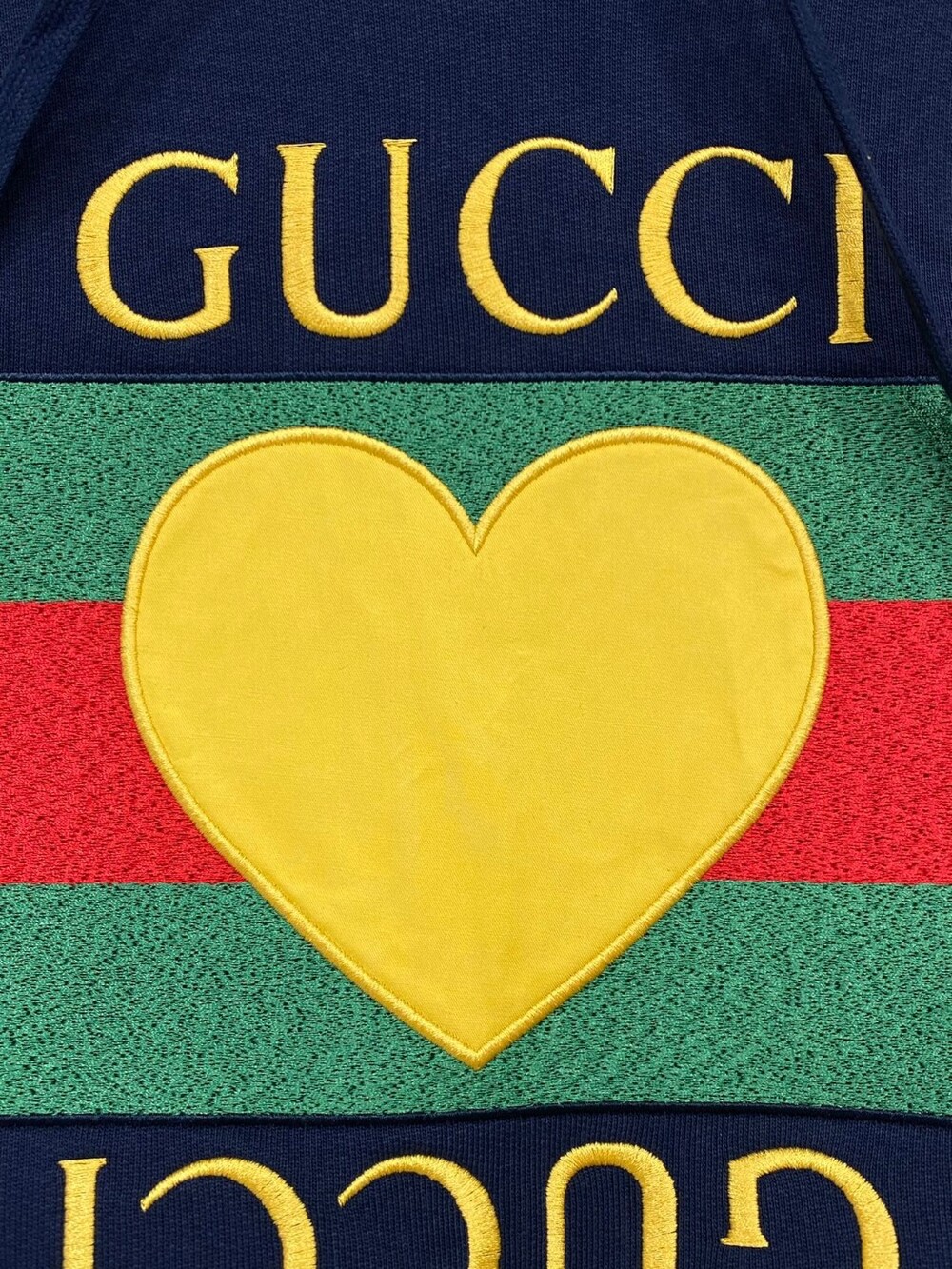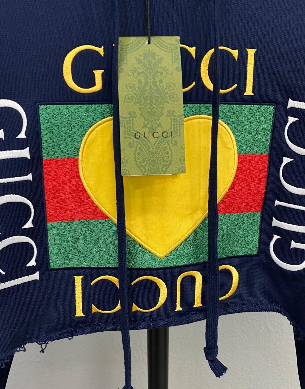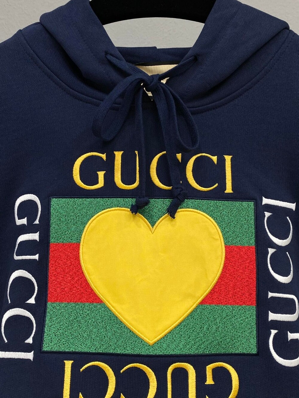 GG 브랜드의 신상 자수 하트 후드티입니다