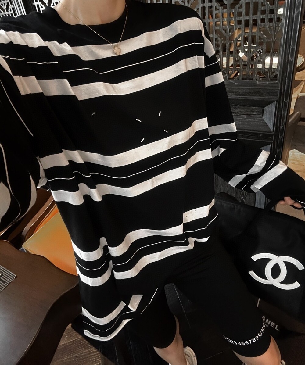 메종 심플한 단가라 티셔츠입니다