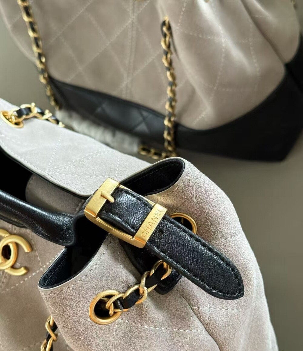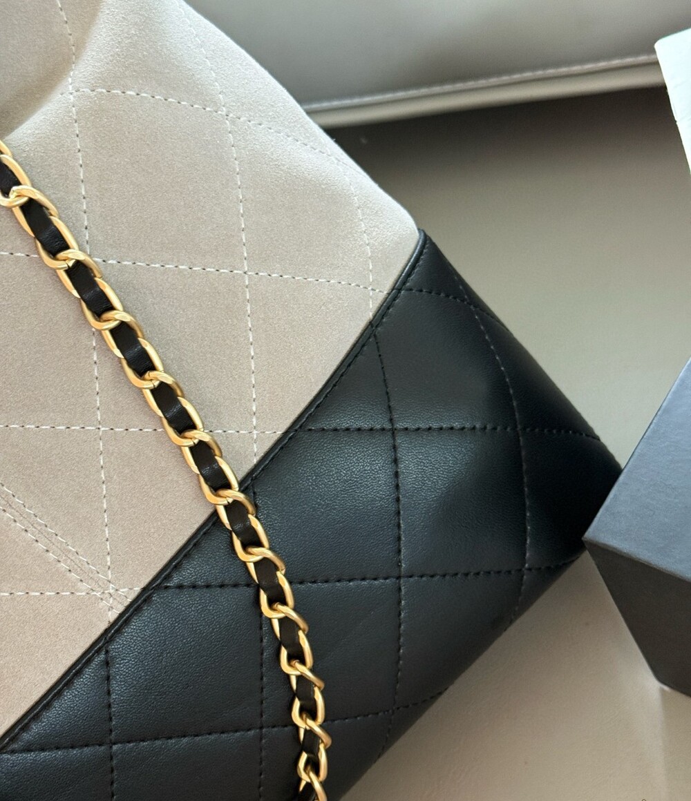 Chain-and-leather strap detailing, signature quilted texture,