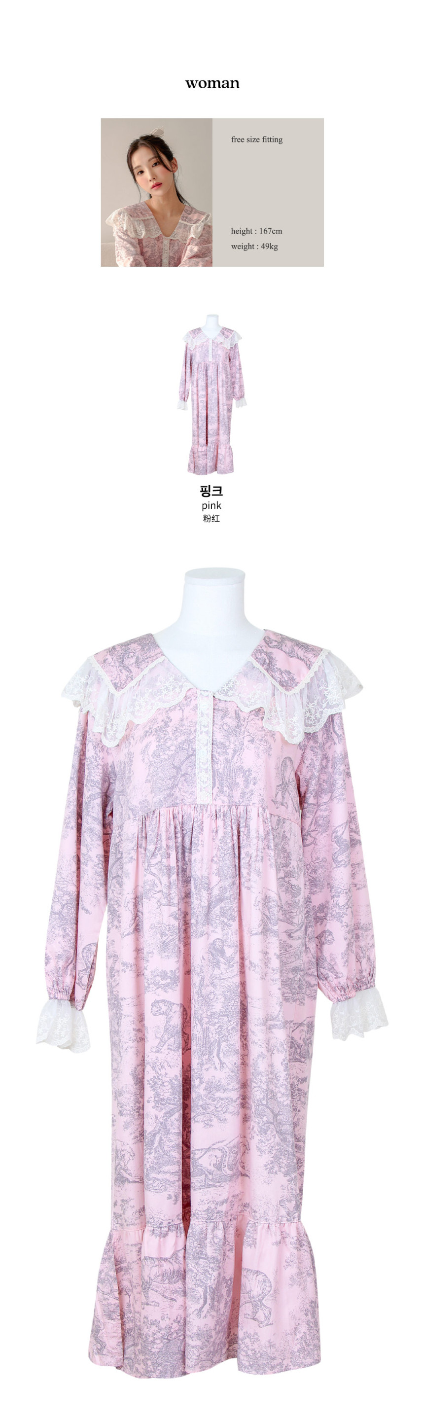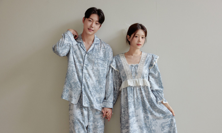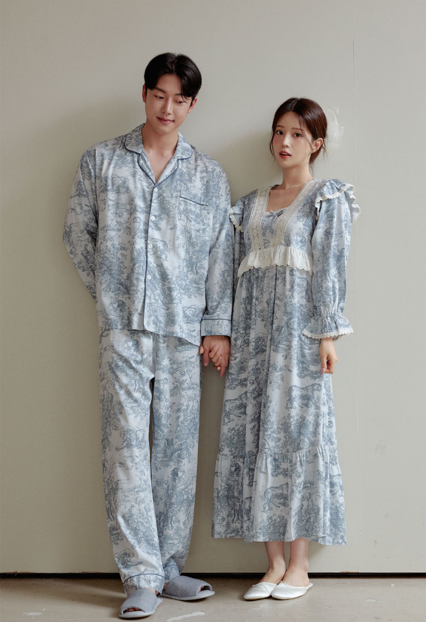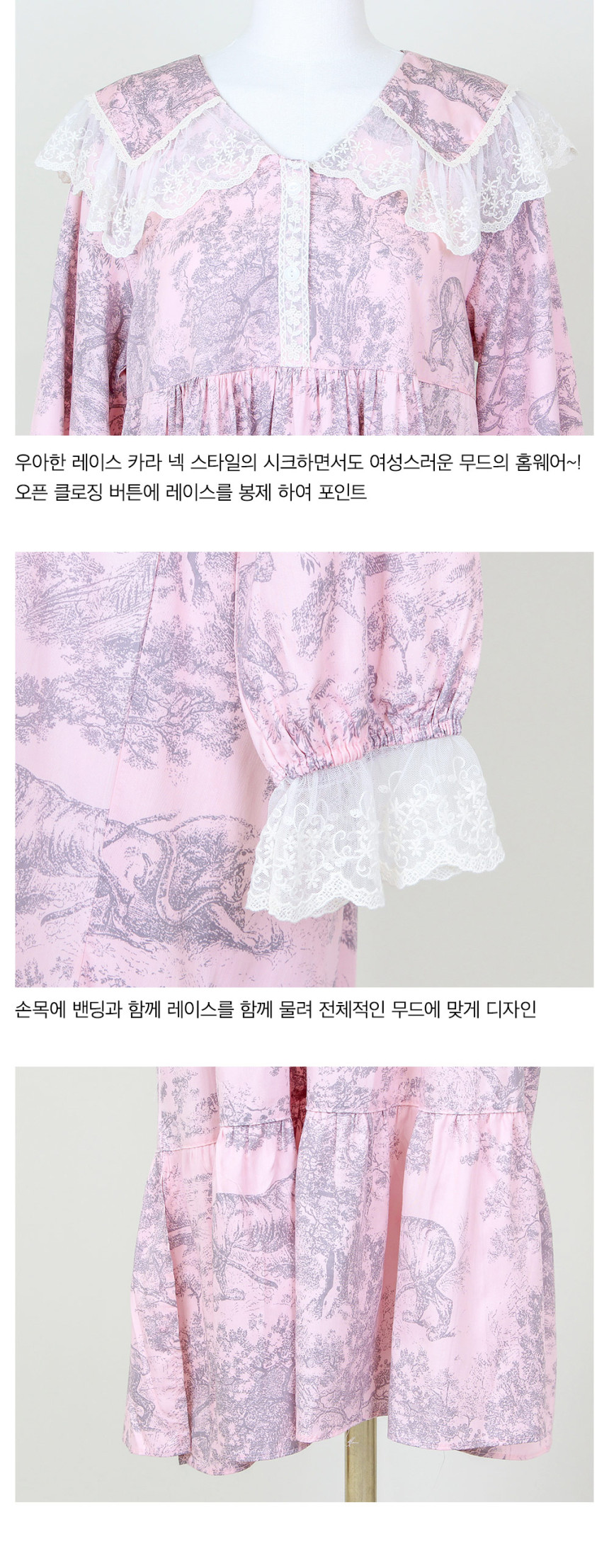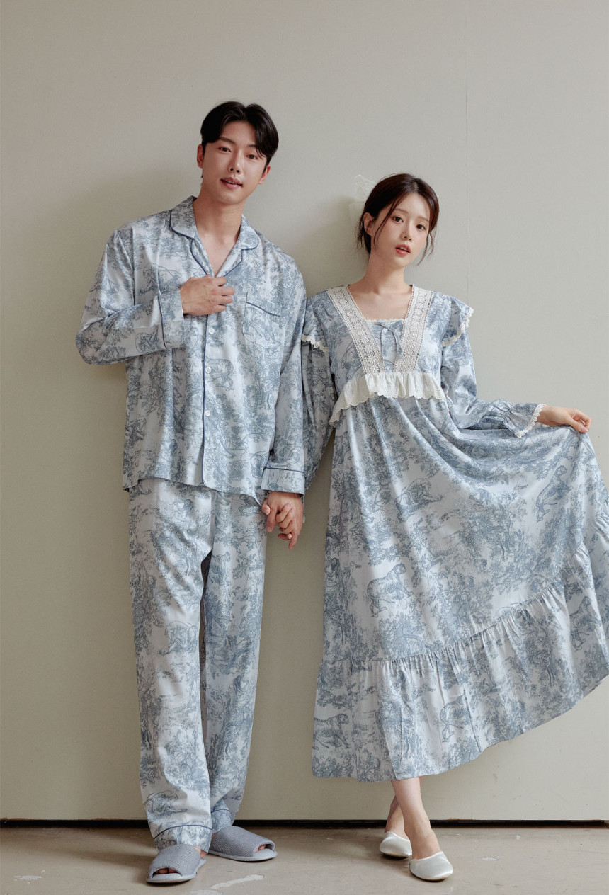 여성 남성 커플 디에르 레이스 카라 원피스 투피스 수면 잠옷
