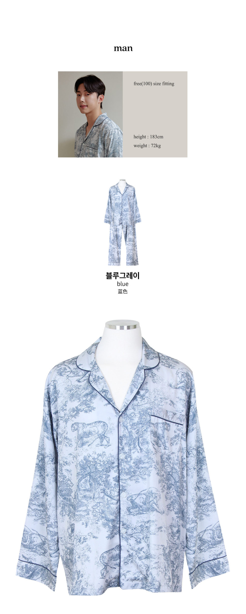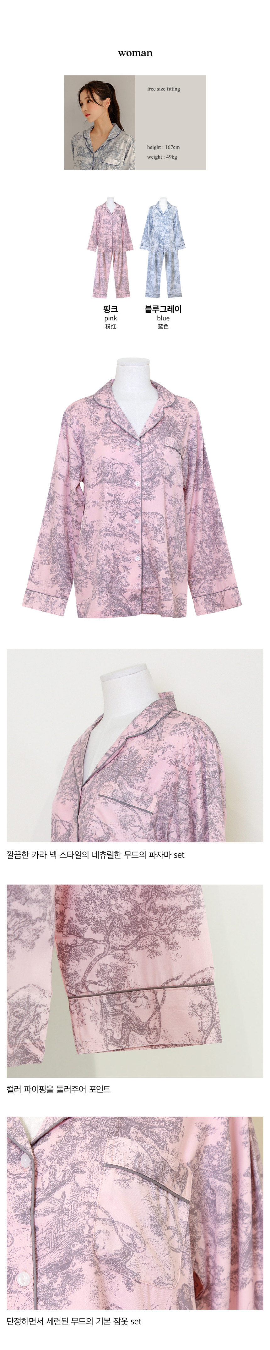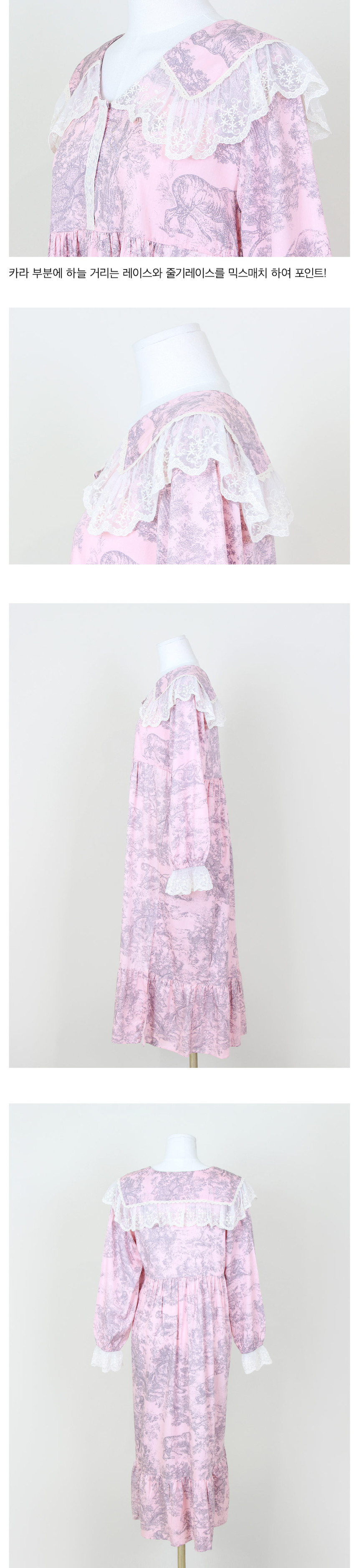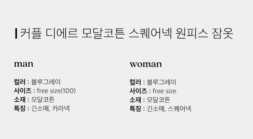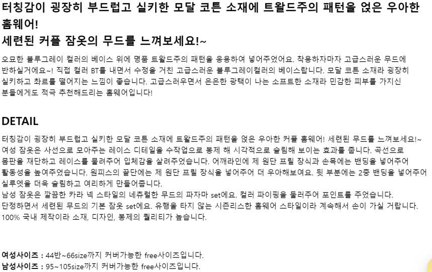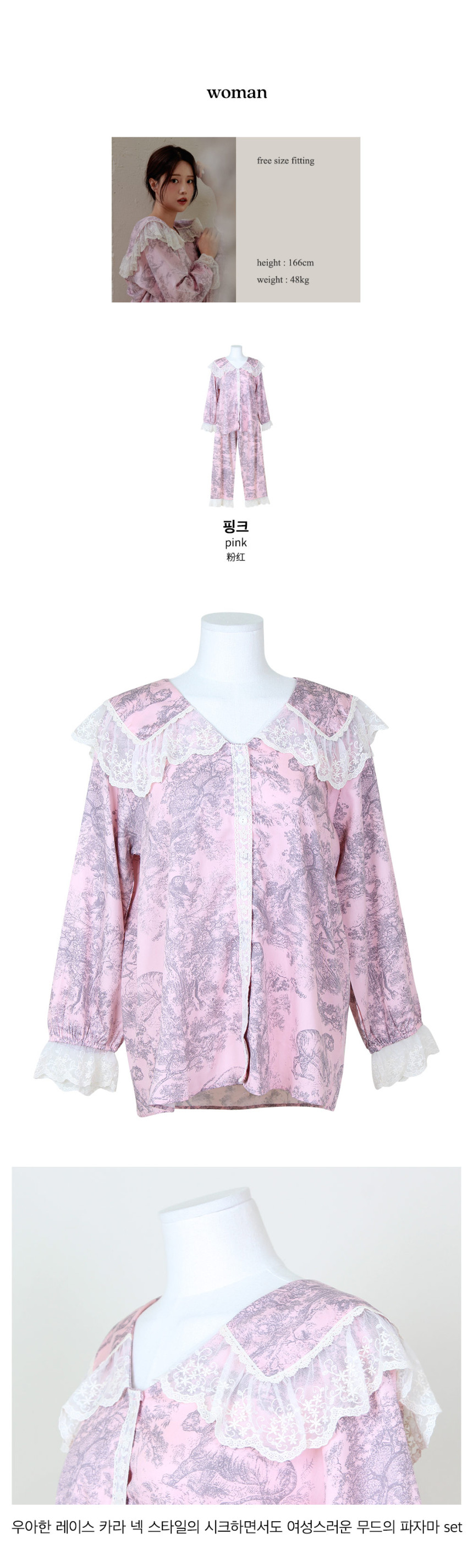 여성 남성 커플 디에르 레이스 카라 원피스 투피스 수면 잠옷