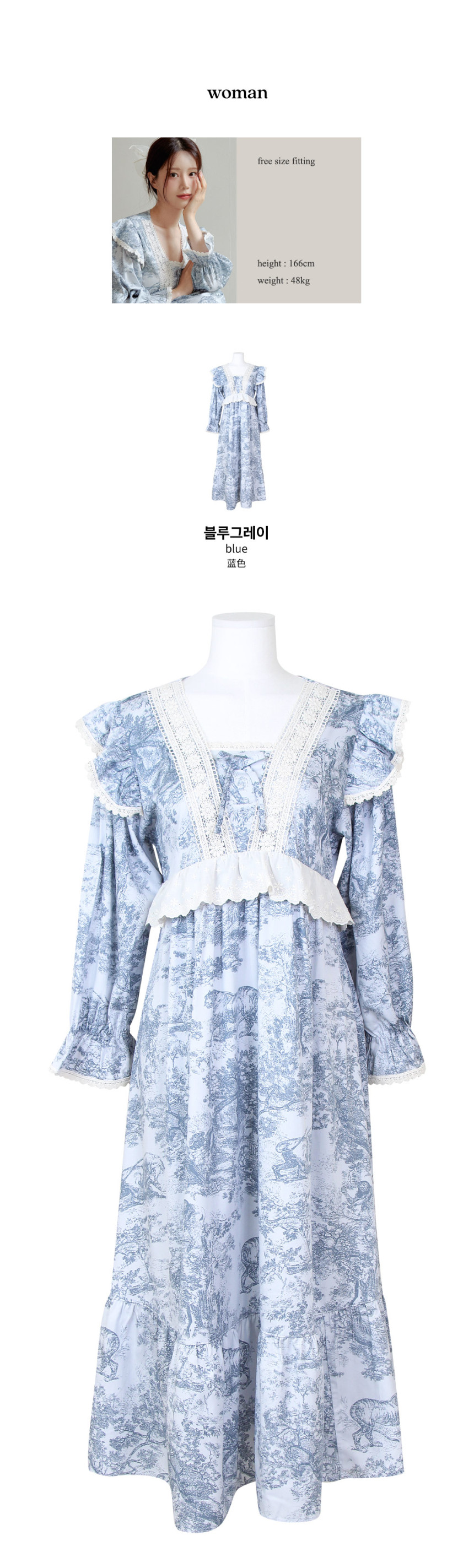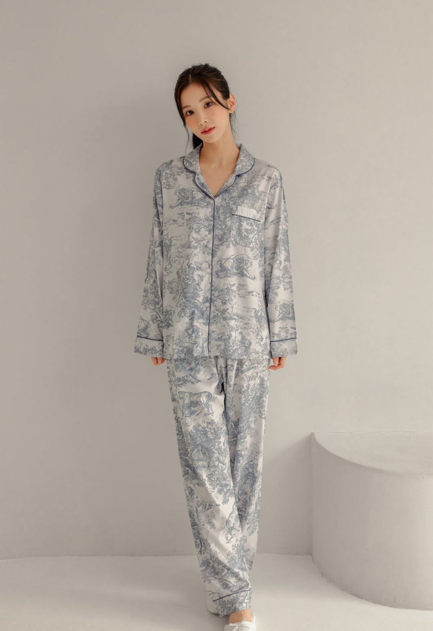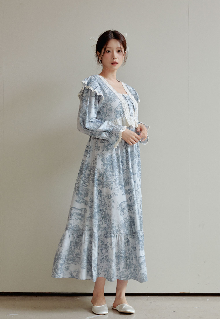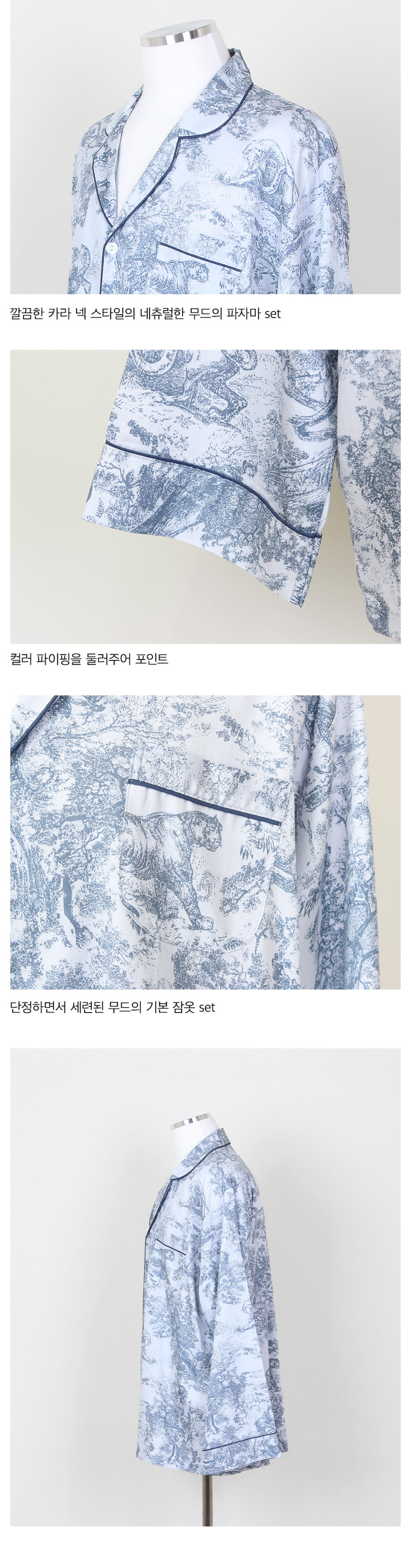 여성 남성 커플 디에르 레이스 카라 원피스 투피스 수면 잠옷