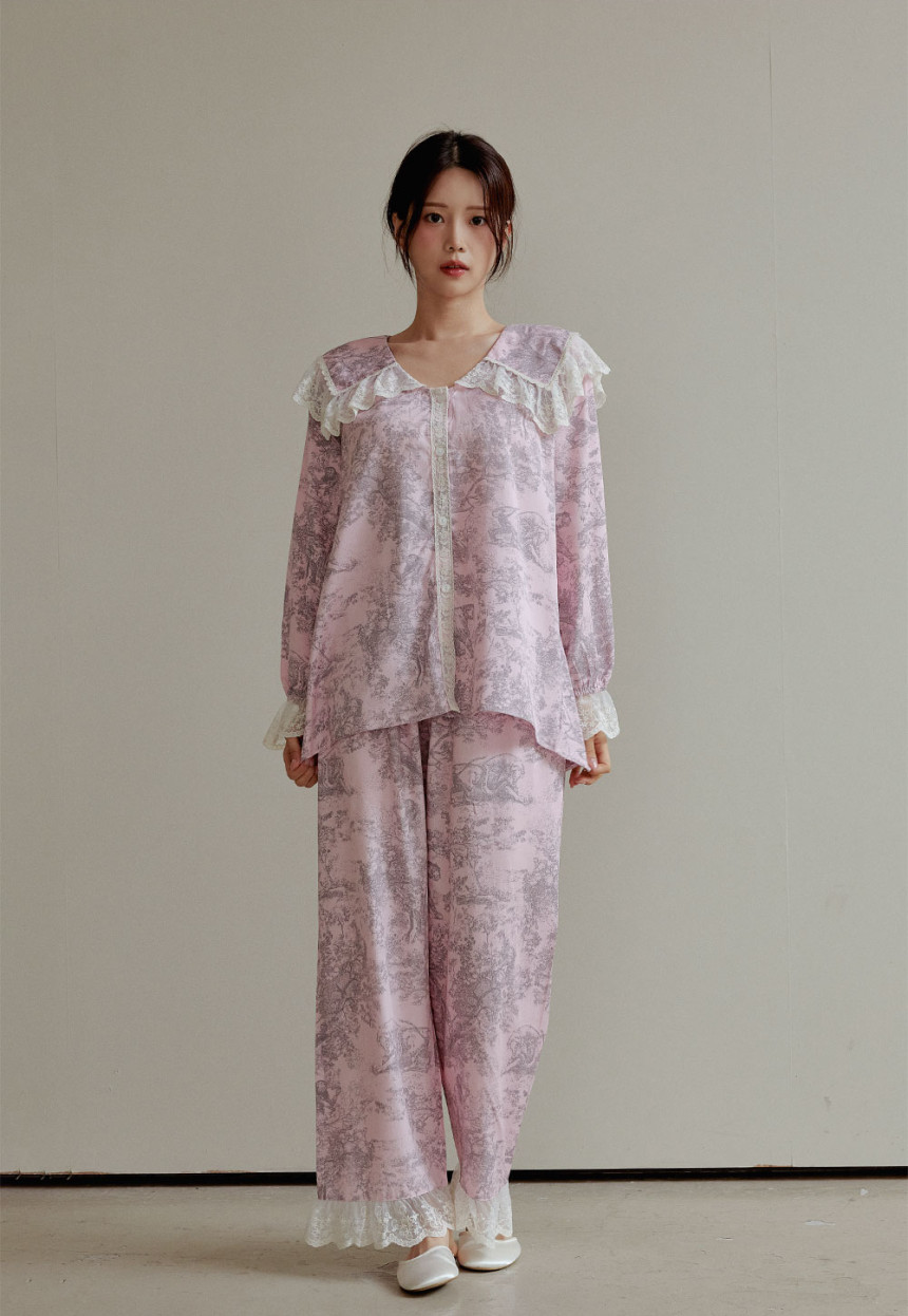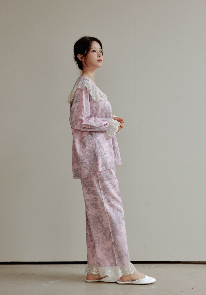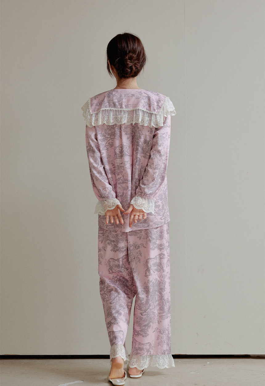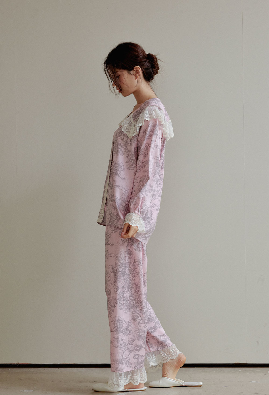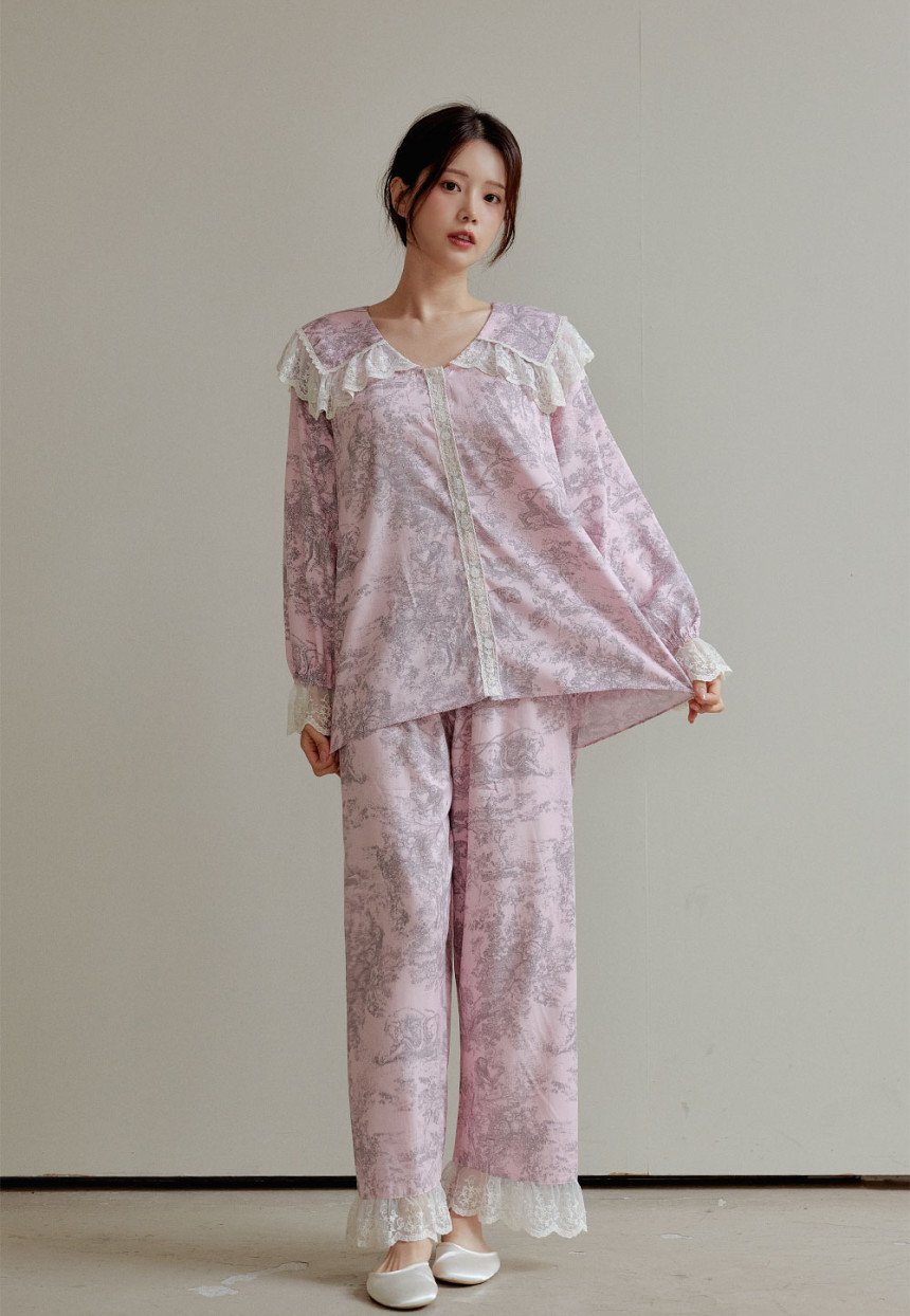 여성 남성 커플 디에르 레이스 카라 원피스 투피스 수면 잠옷