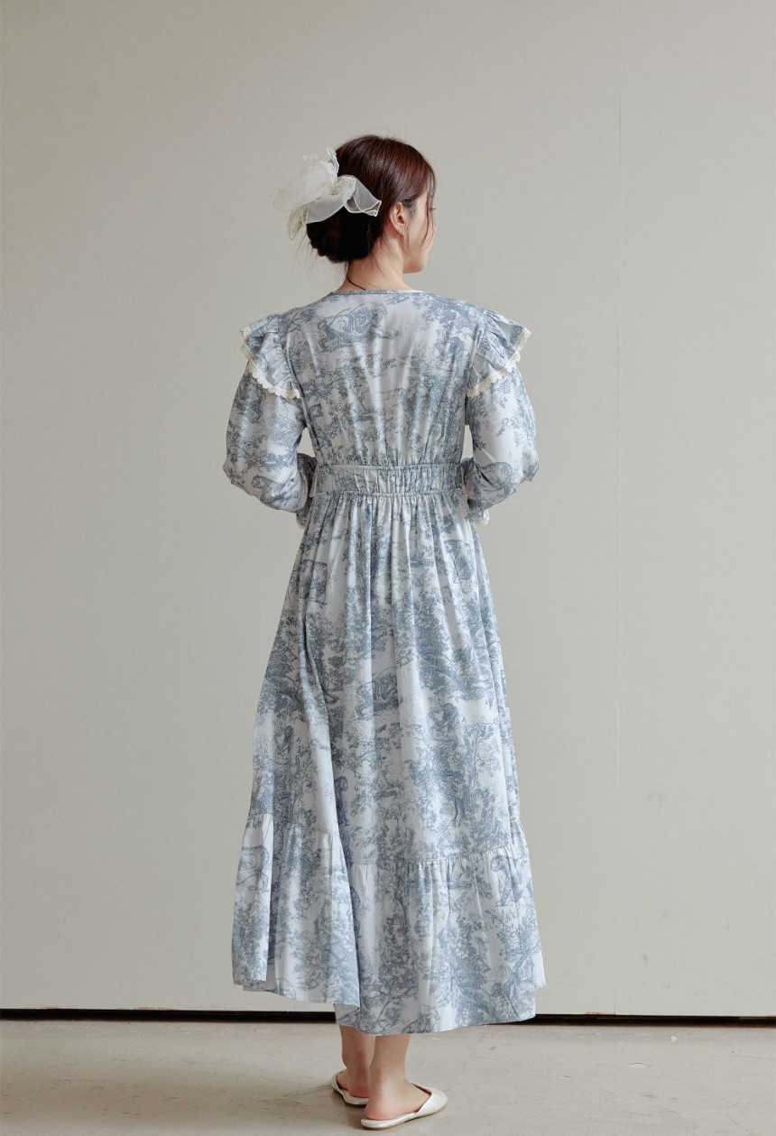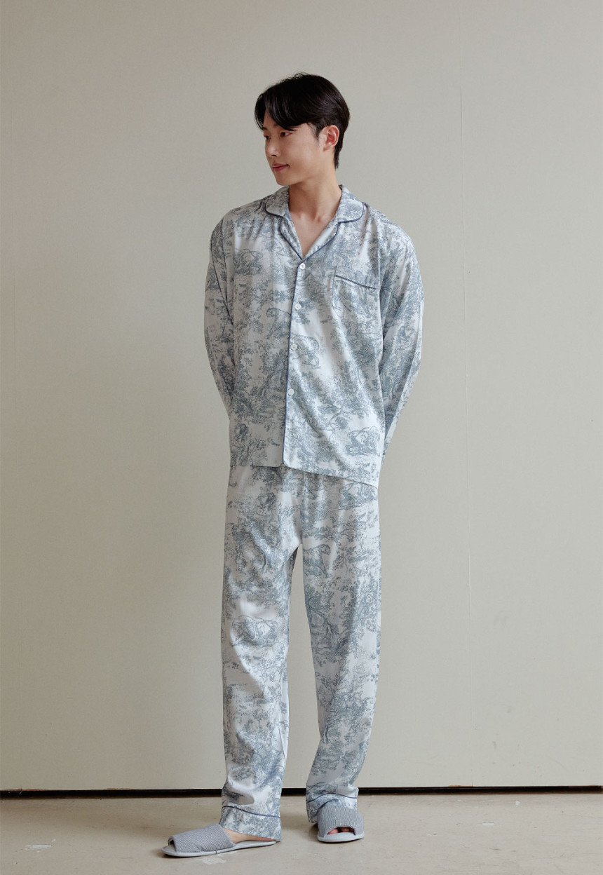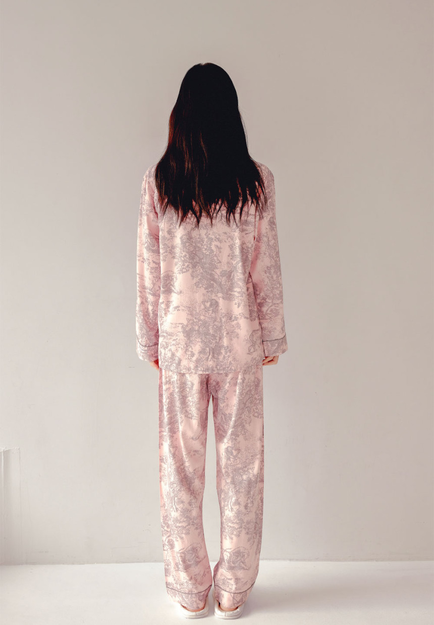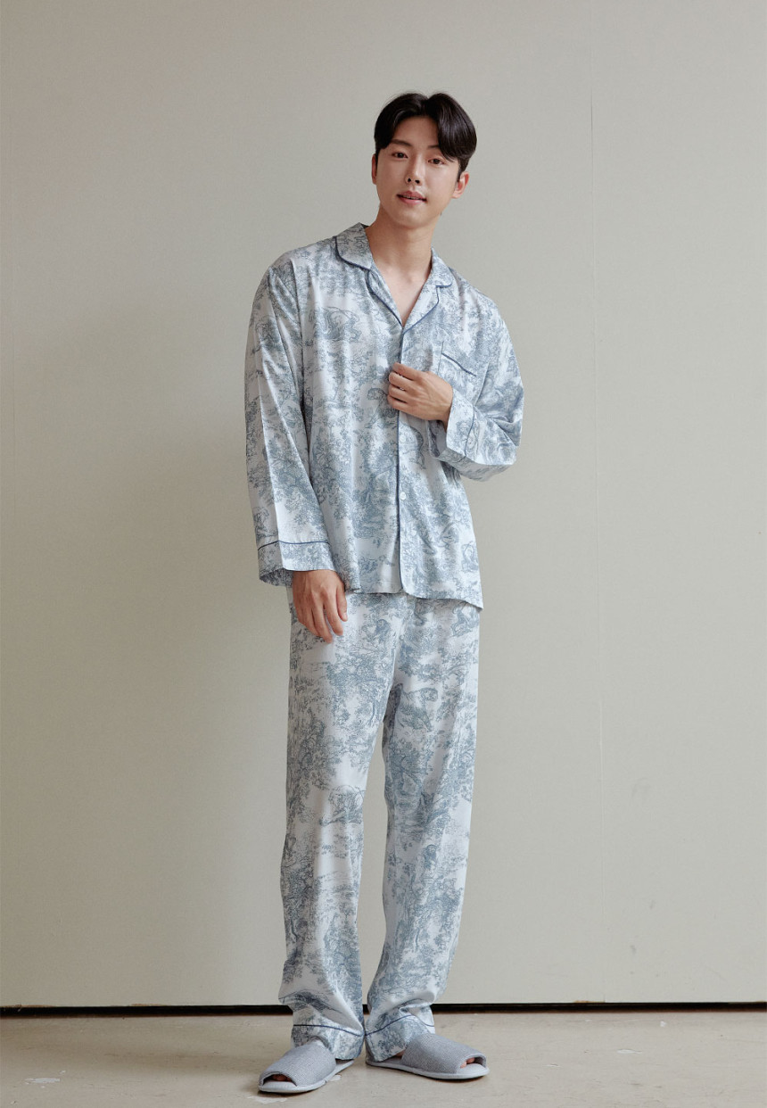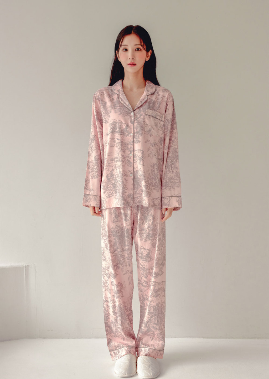 여성 남성 커플 디에르 레이스 카라 원피스 투피스 수면 잠옷