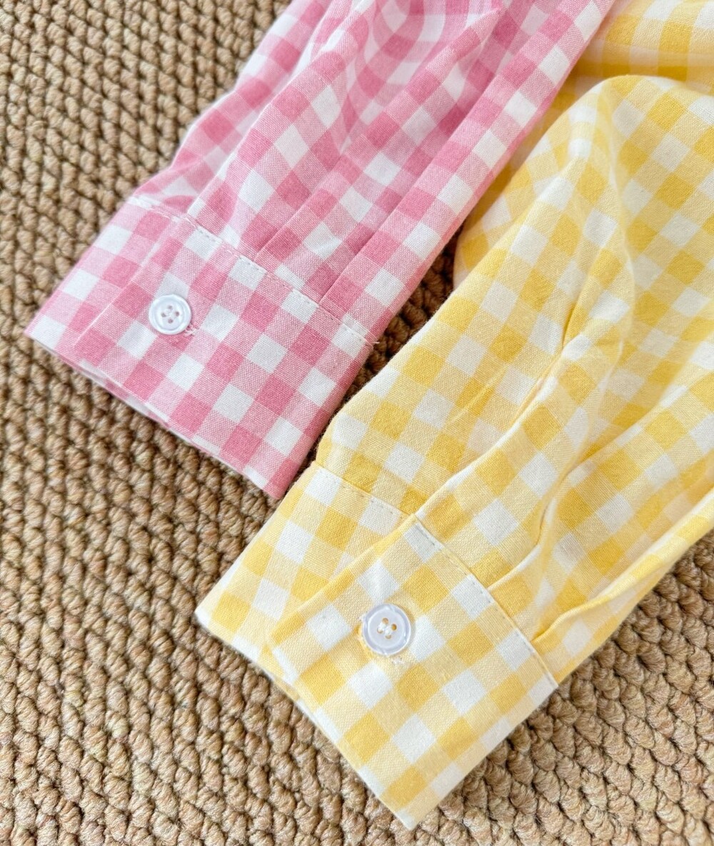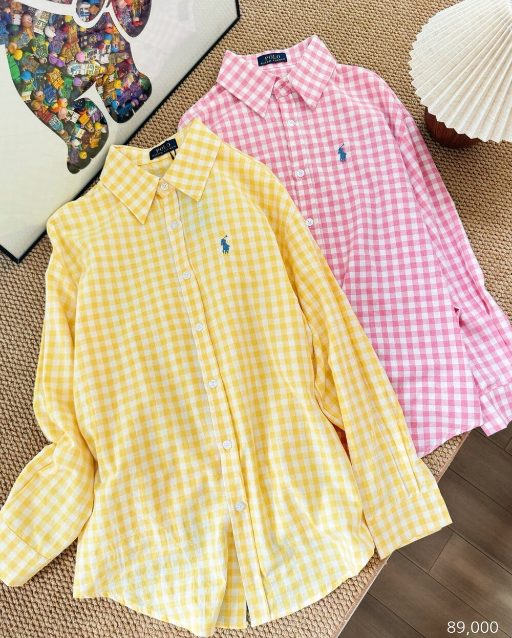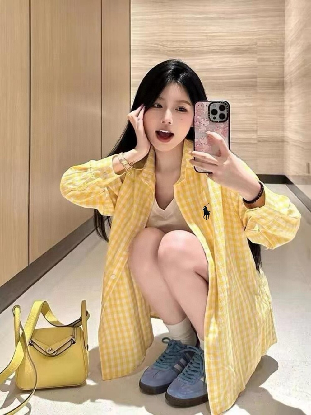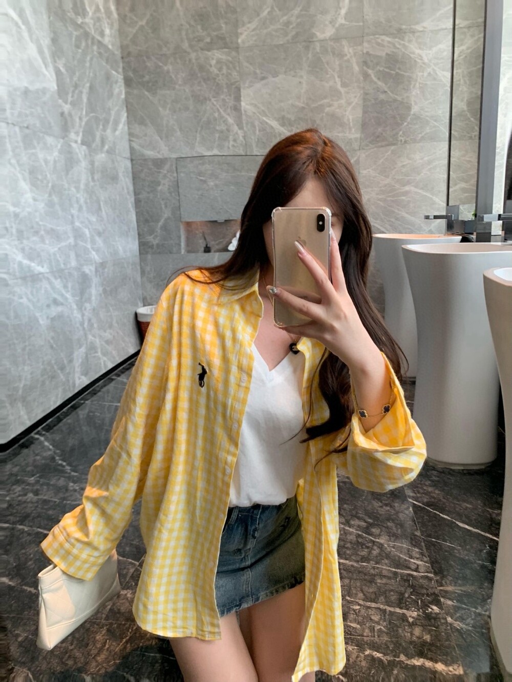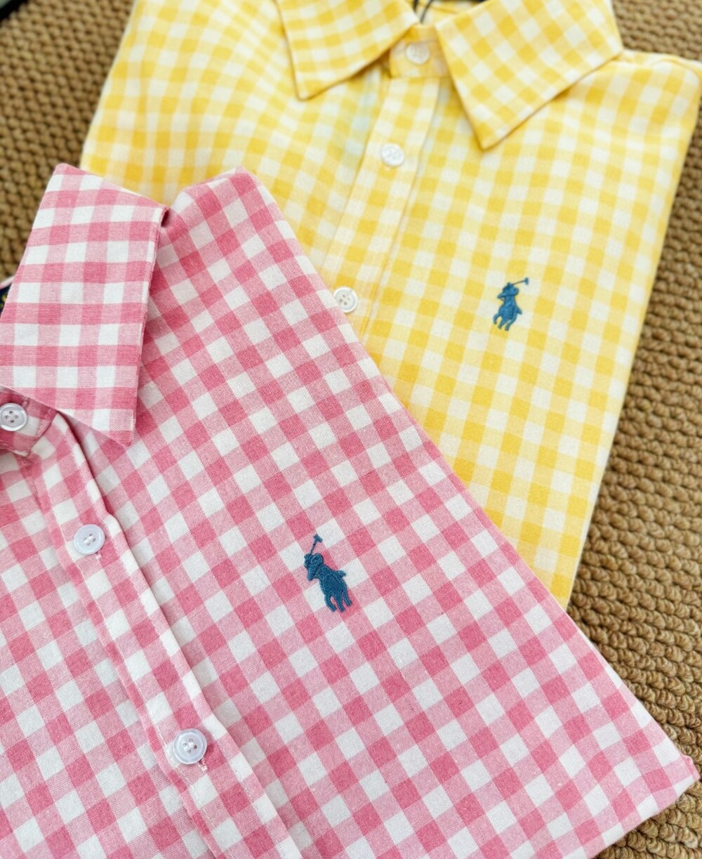 A. PL 컬러 체크 자수 포인트 긴팔 셔츠