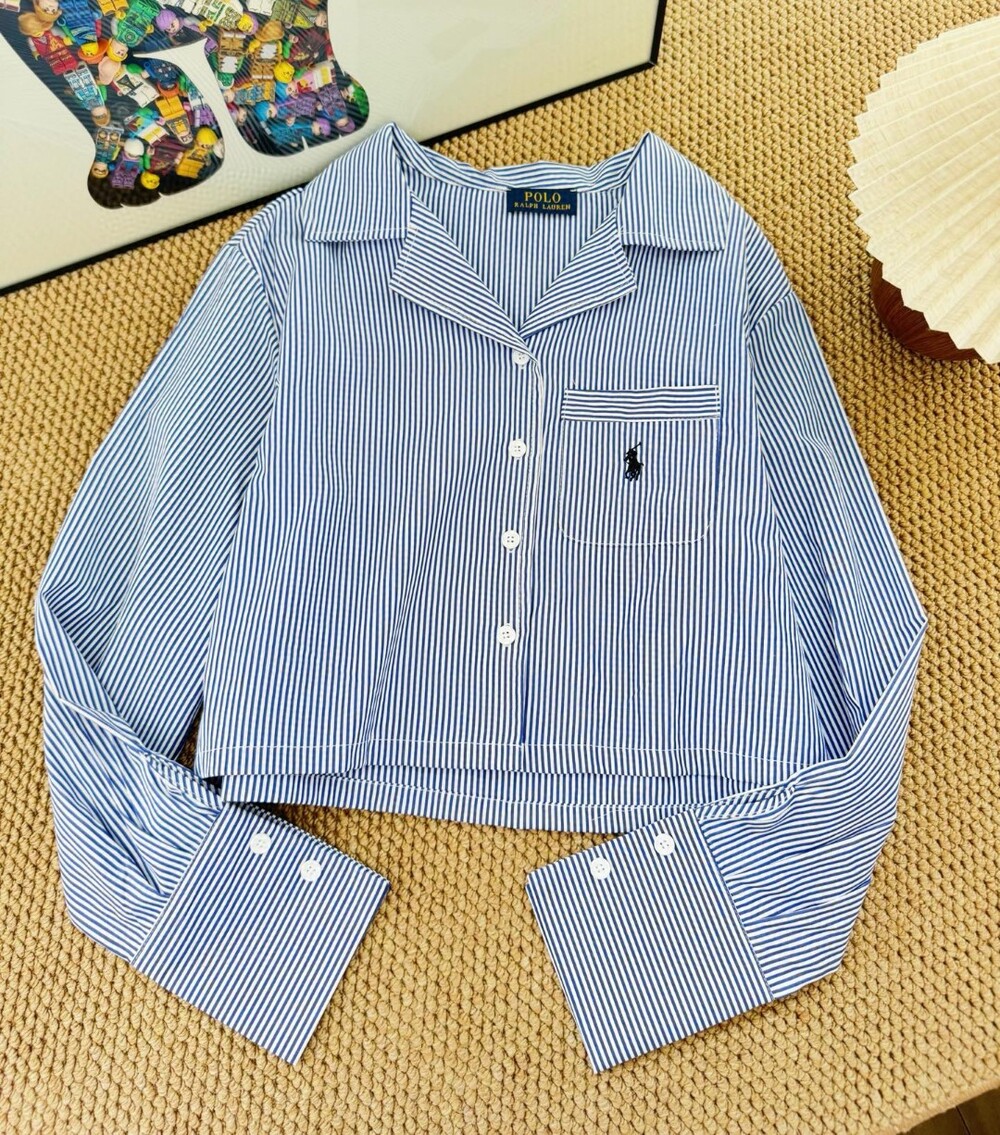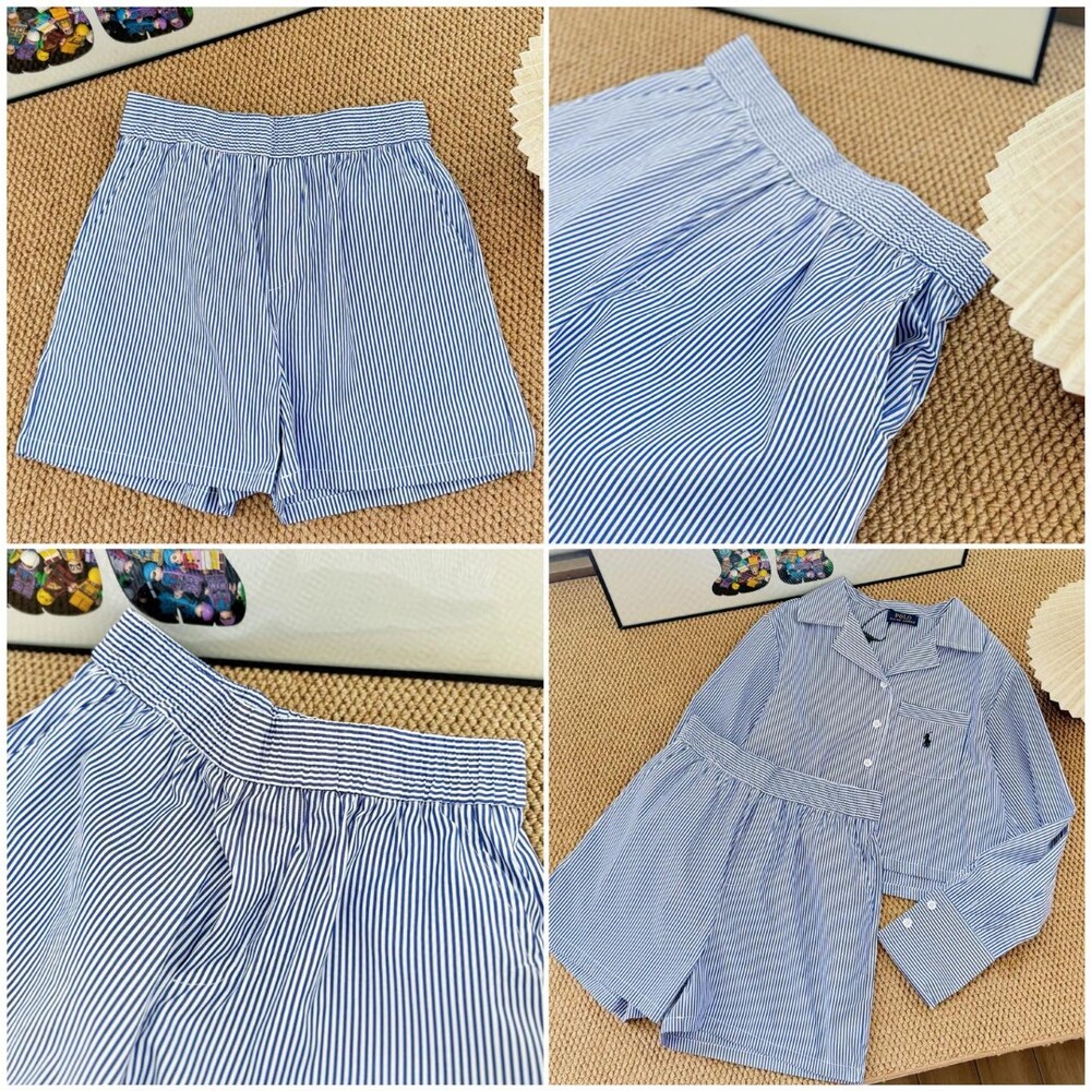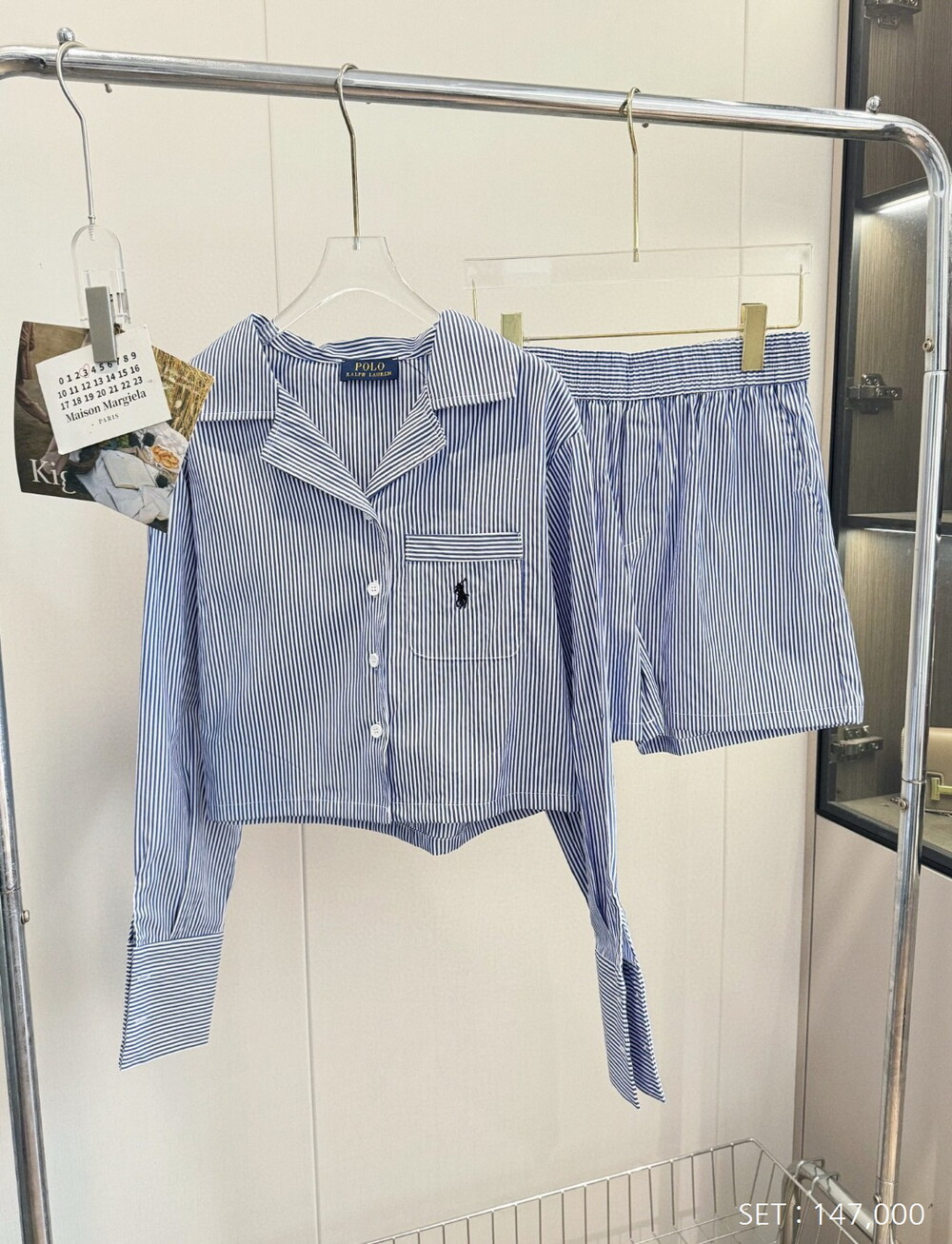 B. 랄프로렌 블루 스트라이프 언발 크롭 투피스