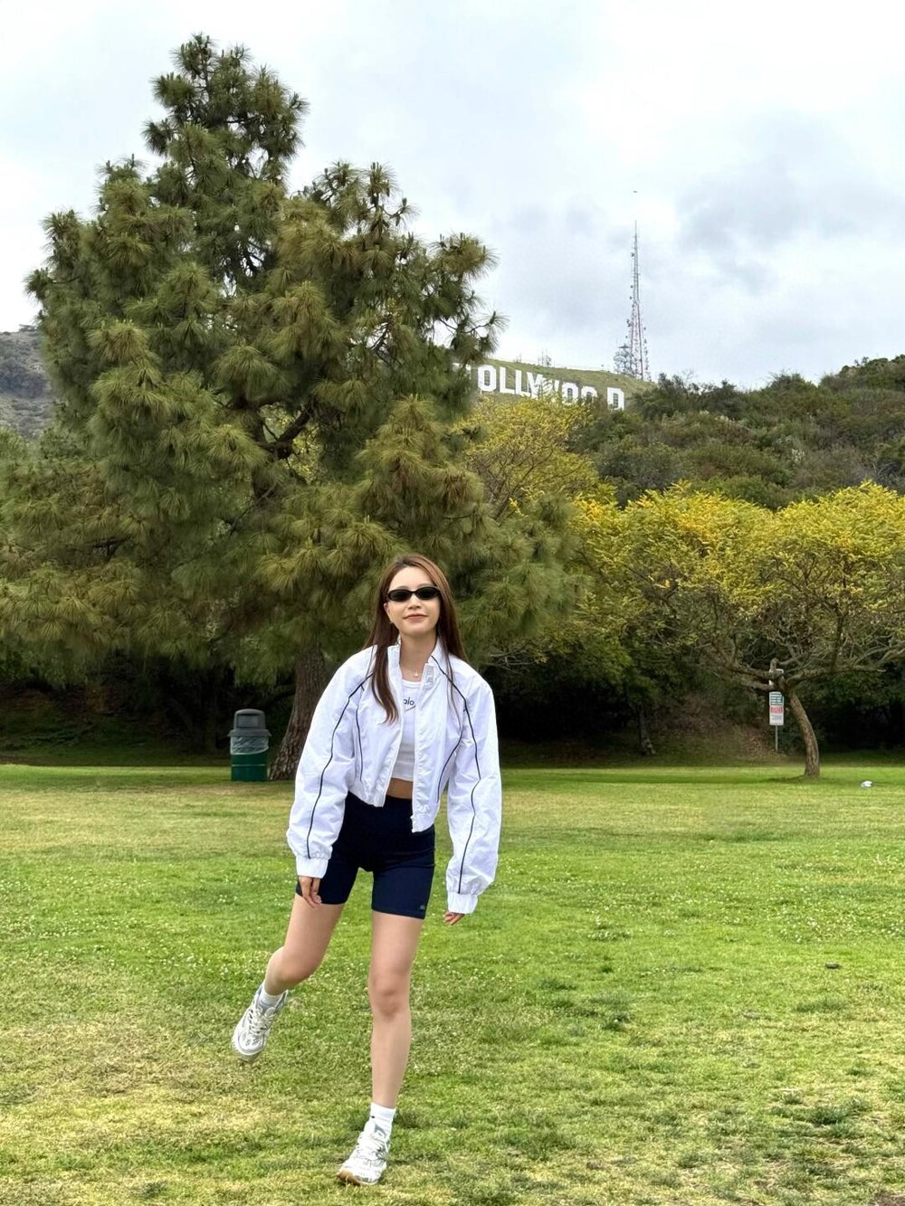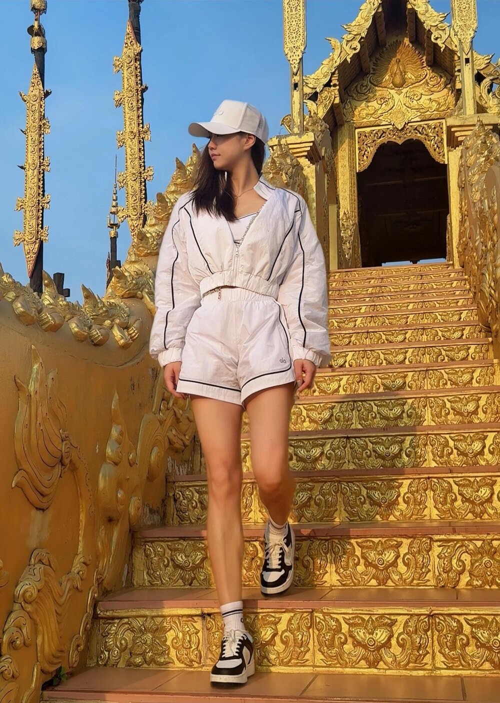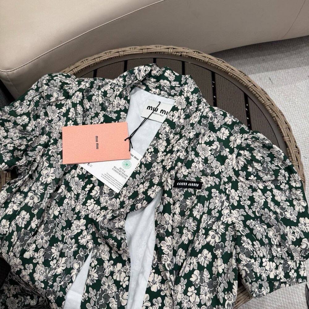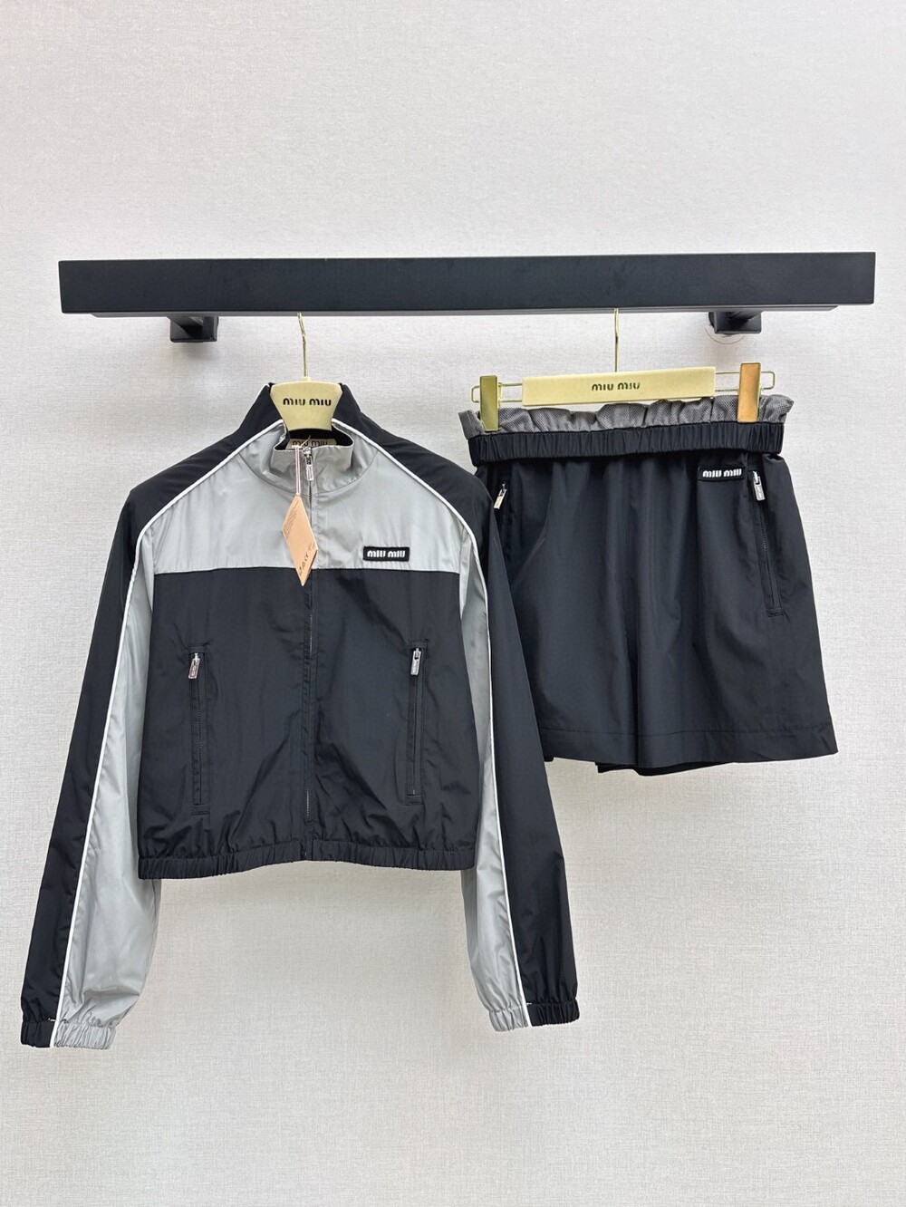 K. 뮤뮤 배색 집업 셔츠 + 밴딩 하프팬츠 투피스