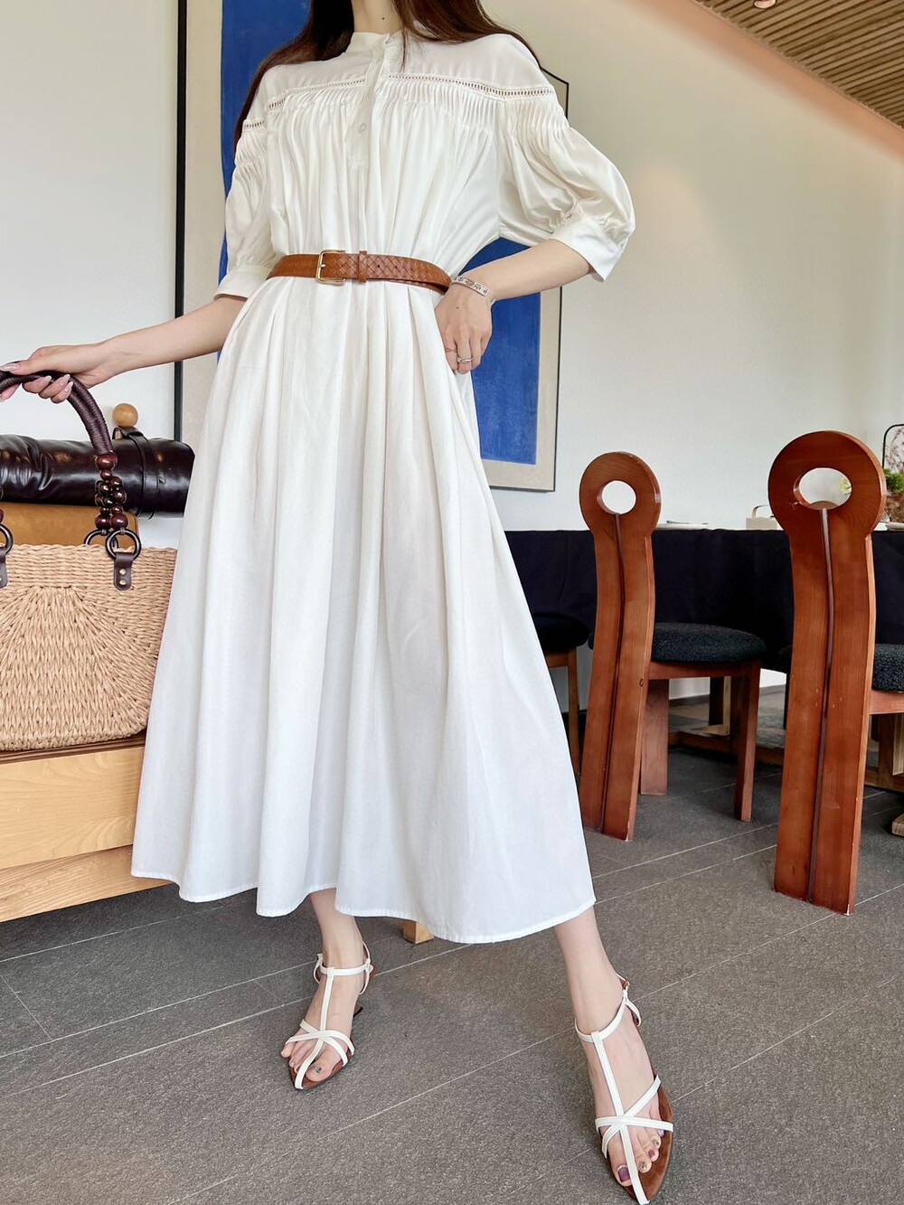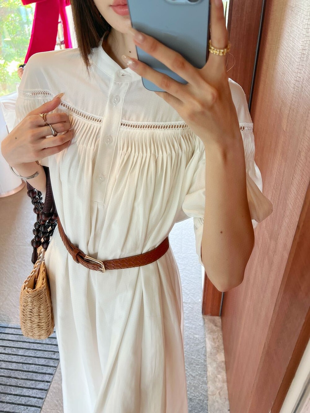 D. 테가 아이보리 셔링 퍼프 원피스+벨트