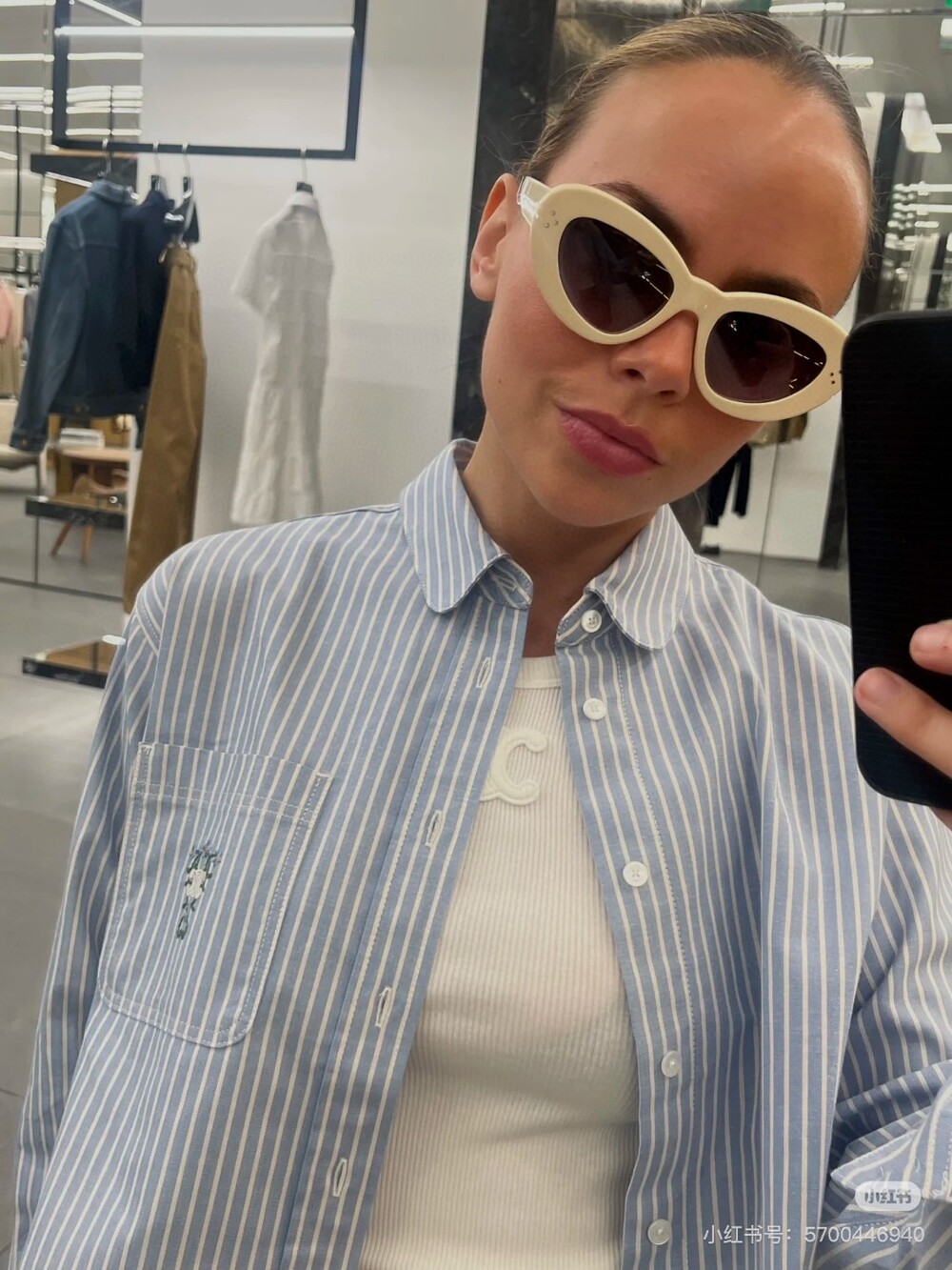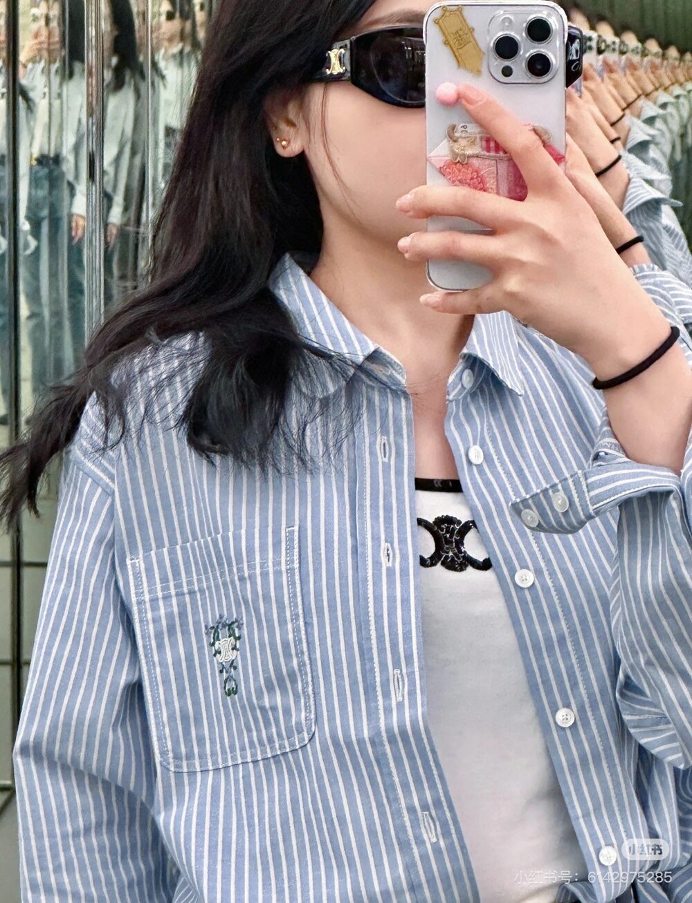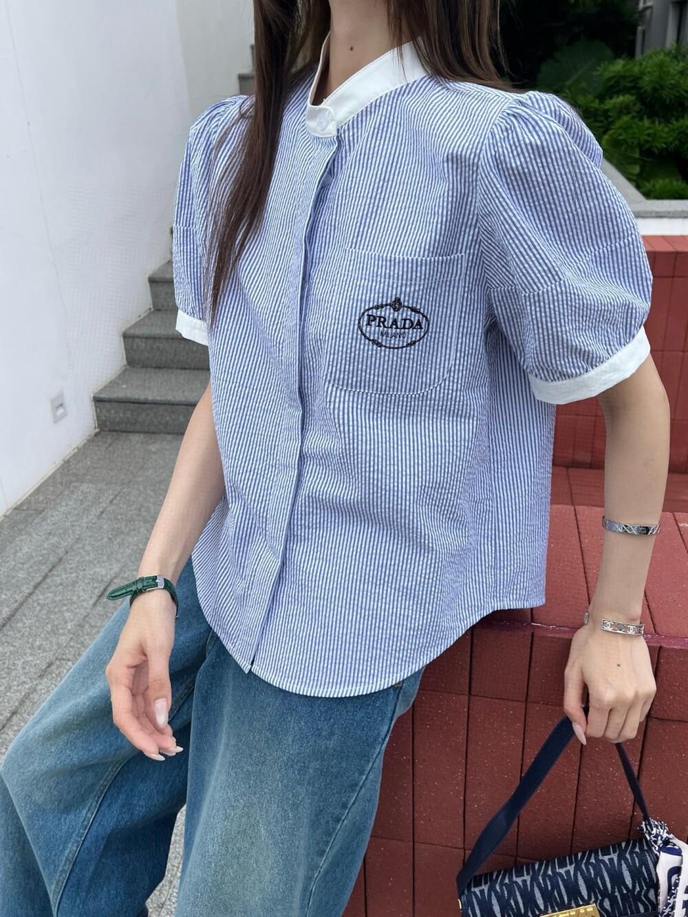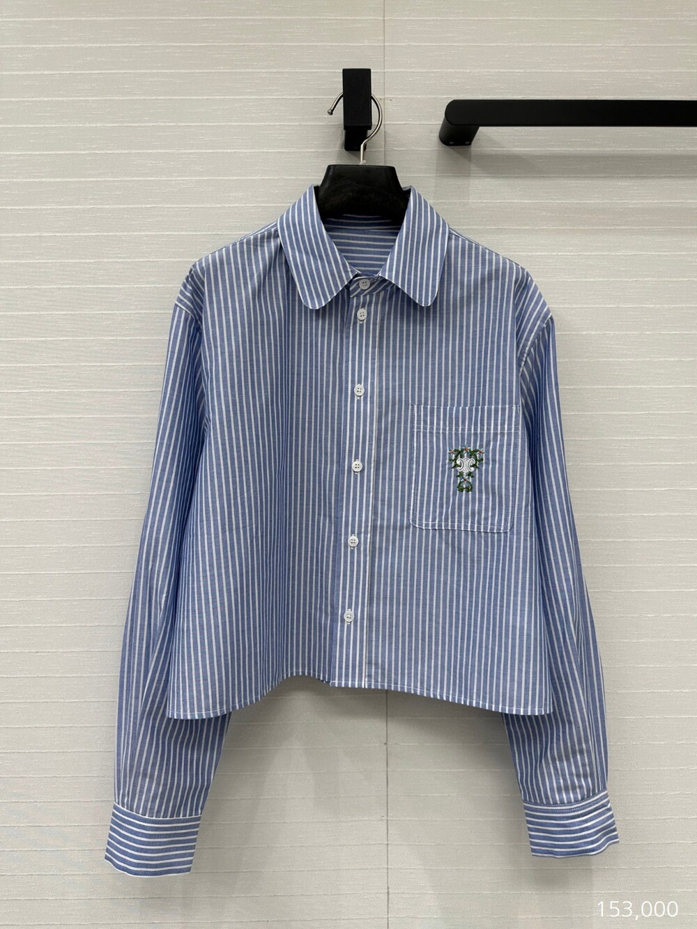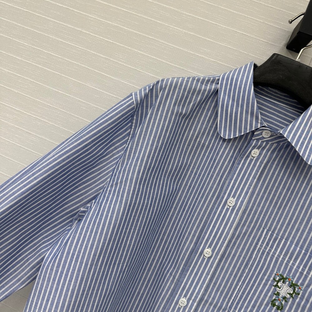 E. 셀리 트리오페 자수 스트라이프 크롭 셔츠