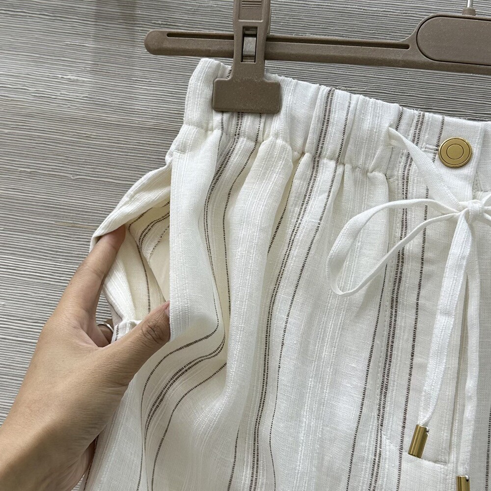 G. 로로 스트라이프 와이드 플리츠 팬츠