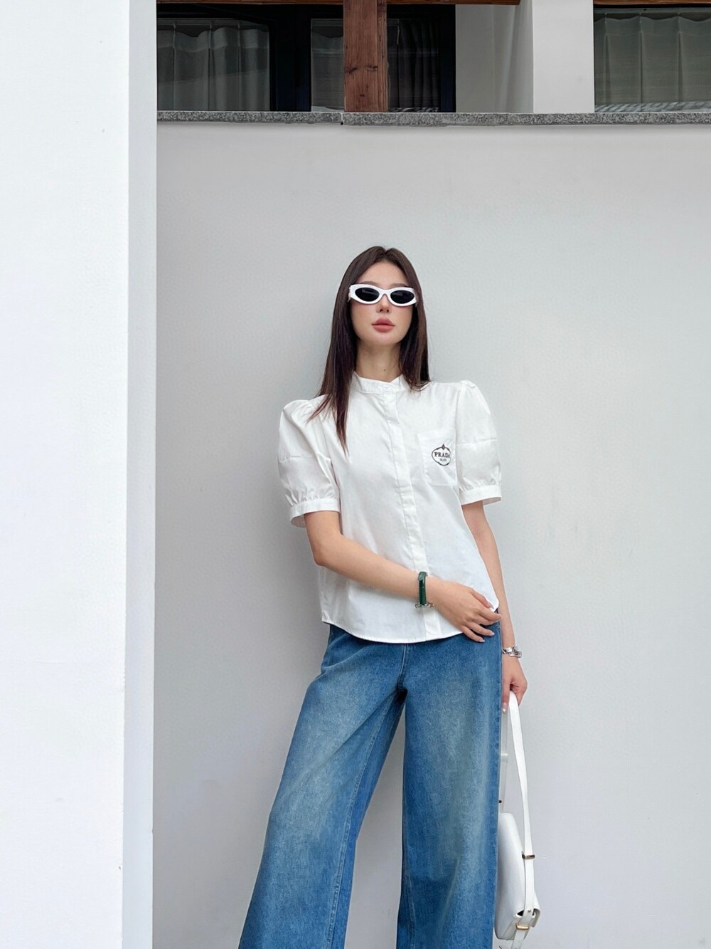 N. PR 엠블럼 반팔 블라우스 - 화이트