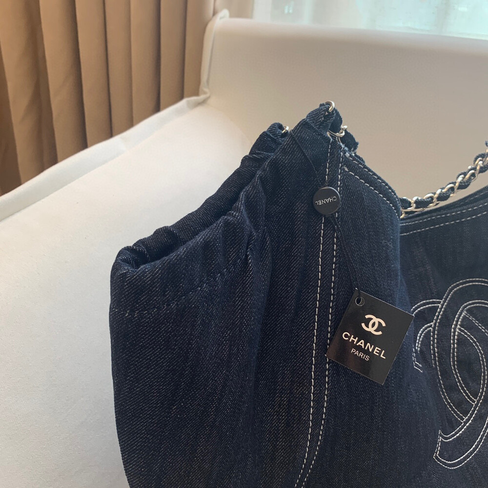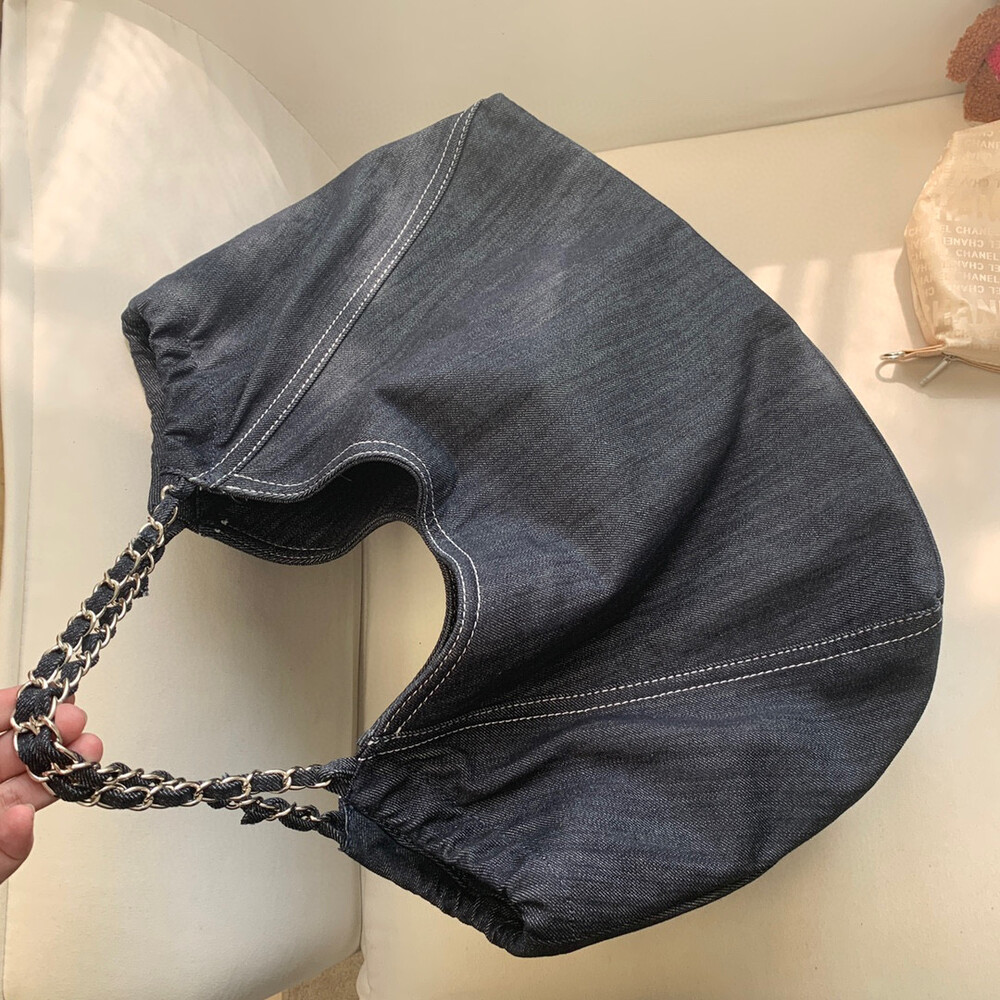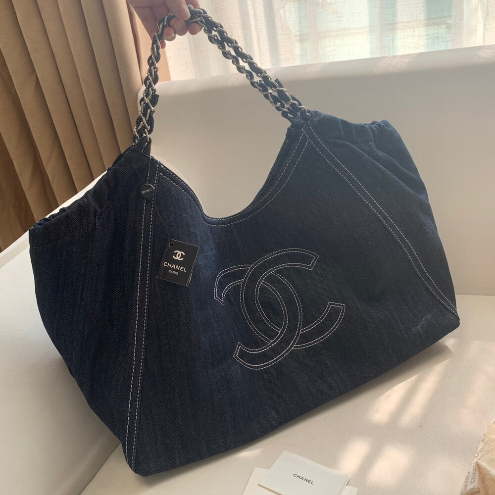 It's finally shipped Lock my bag | Chanel 𝘁𝗼𝘁𝗲 It's big enough to pretend to go out and turn around. No matter how you use it, it won't deform/distinguish from the market. Many of them will blister if you add paper We are super soft, skin-friendly The inside uses the same quality denim fabric Super good stuff, wait for you to carry it!Not recommended for use in conjunction with white clothesSize bottom length