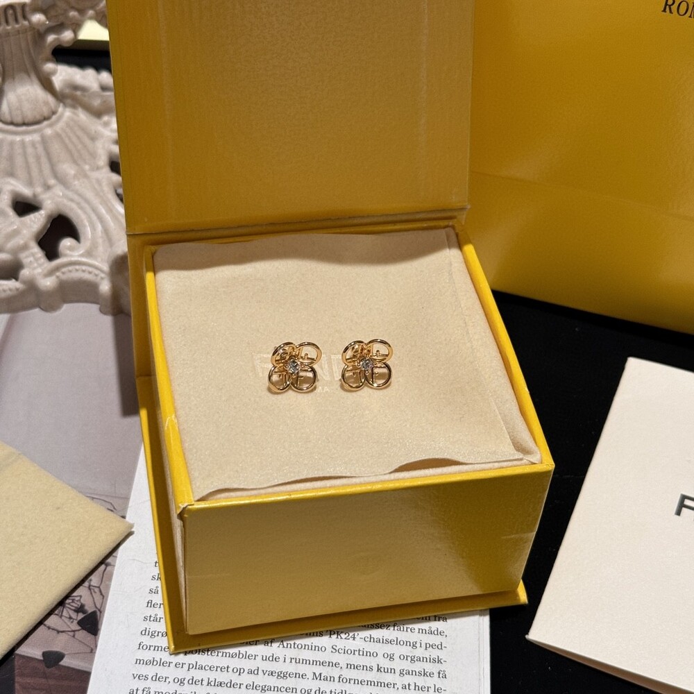 hese elegant stud earrings reinterpret Fendi’s iconic FF logo into a refined floral silhouette.