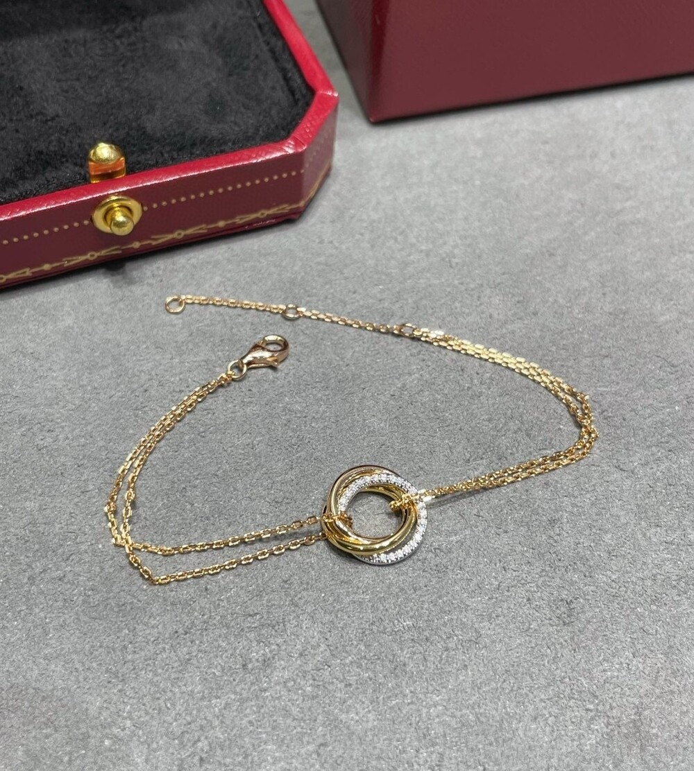 Cartier three-ring necklace, another classic, surrounded by mosaic perfect interpretation of symmetry aesthetics elegant and generous. High comfort and easy to hook up with items Real gold feel bar