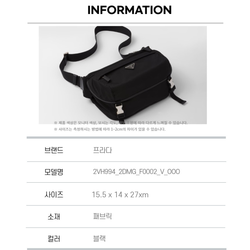 상품명 프라다 남성 리나일론 사피아노 숄더 크로스백[BLACK]2VH994 2DMG F0002